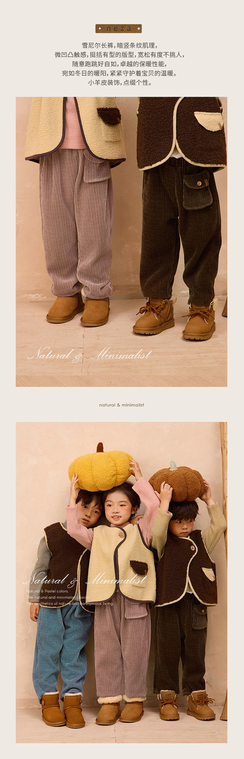 네자 미니 어린이 캐주얼 바지 가을과 겨울 새로운 남자 아기 두꺼운 스포츠 바지 한국 여자 따뜻한 바지