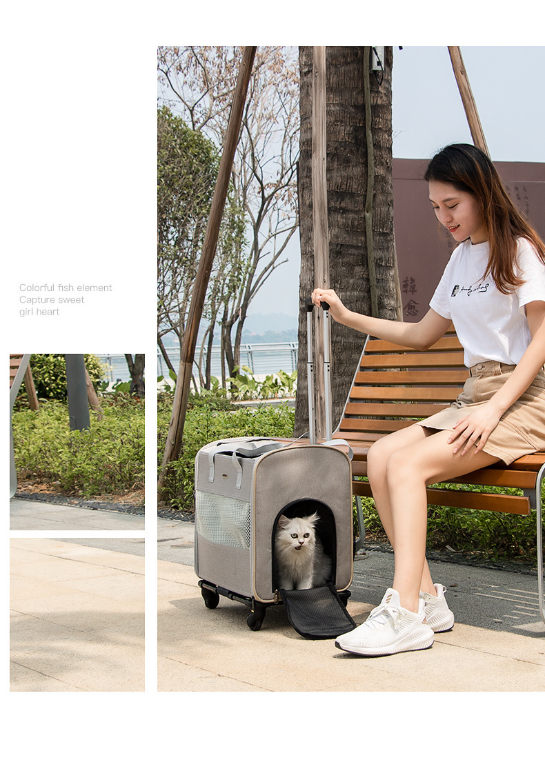 DODOPET 애완동물 외출용 트롤리 가방, 고양이 여행용 가방, 휴대용 접이식 차량용 강아지 케이지, 강아지 가방