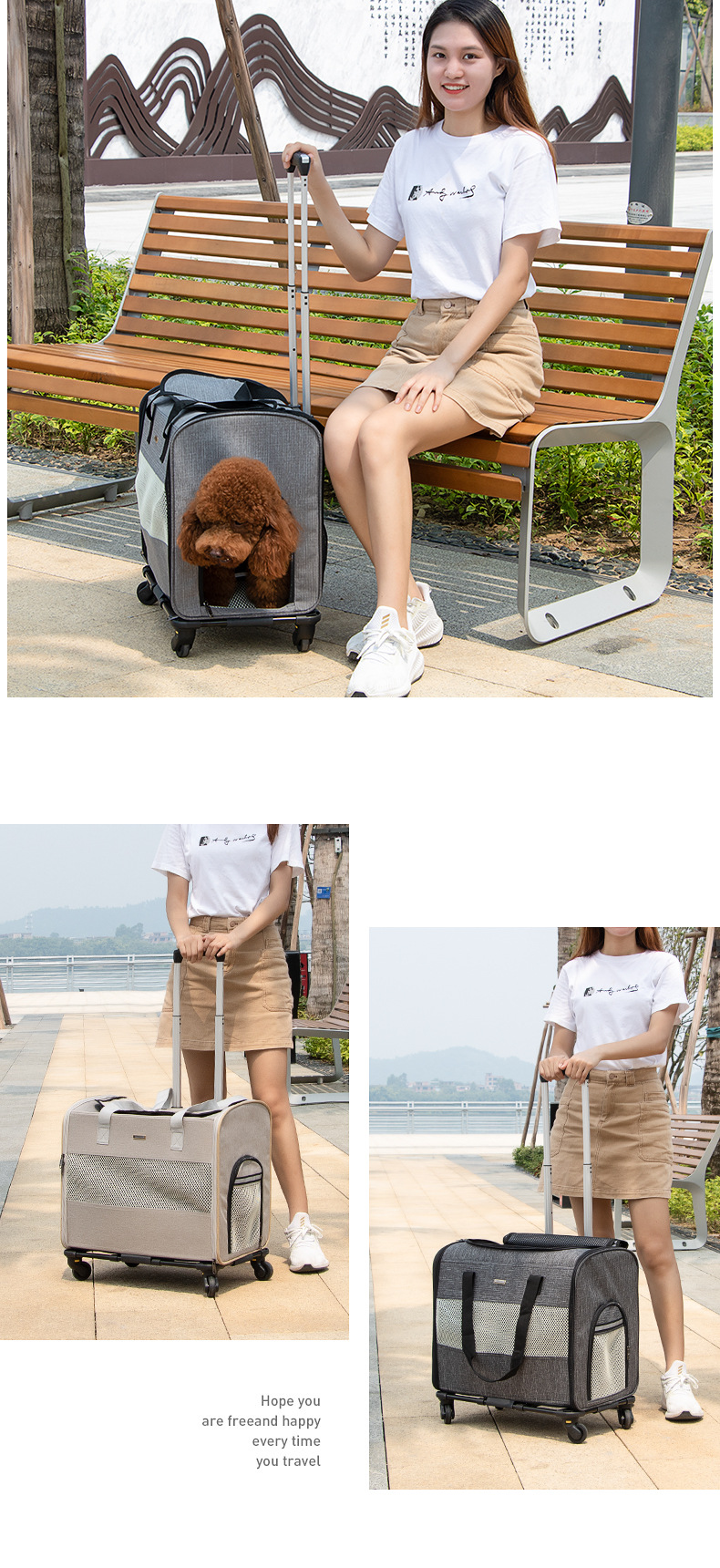 DODOPET 애완동물 외출용 트롤리 가방, 고양이 여행용 가방, 휴대용 접이식 차량용 강아지 케이지, 강아지 가방스토어 가기