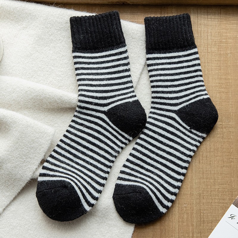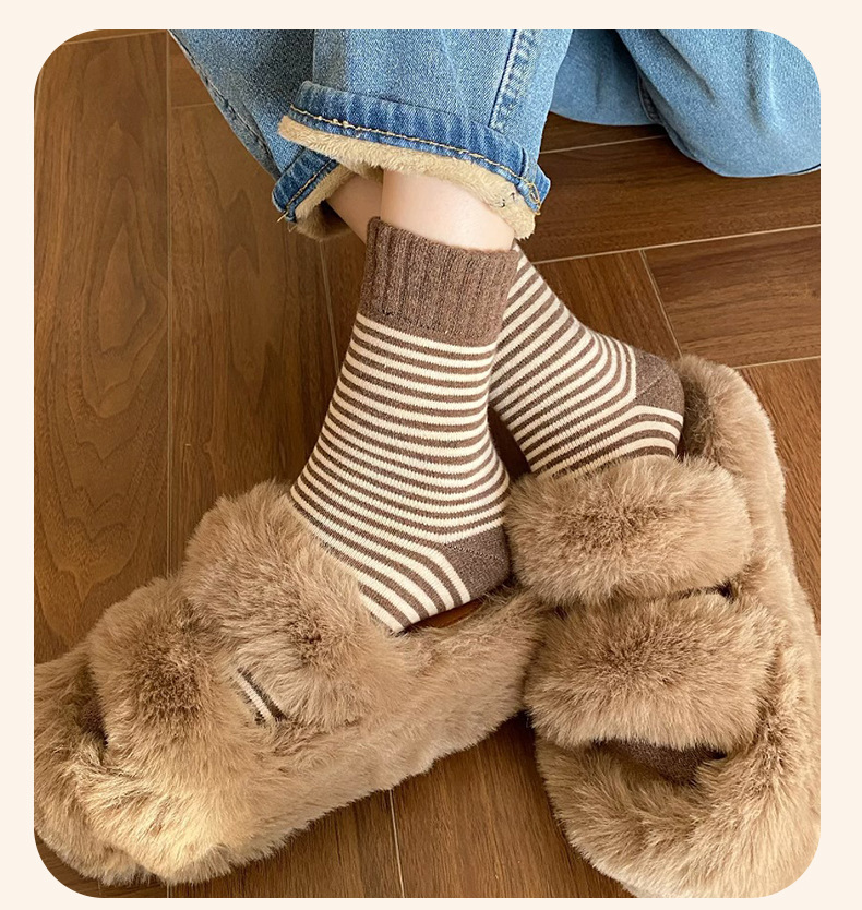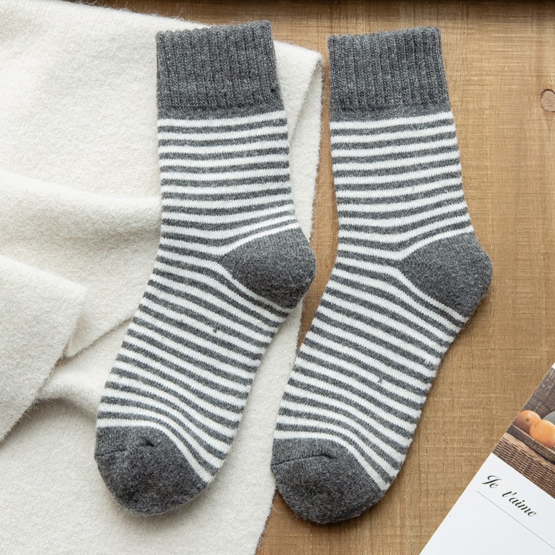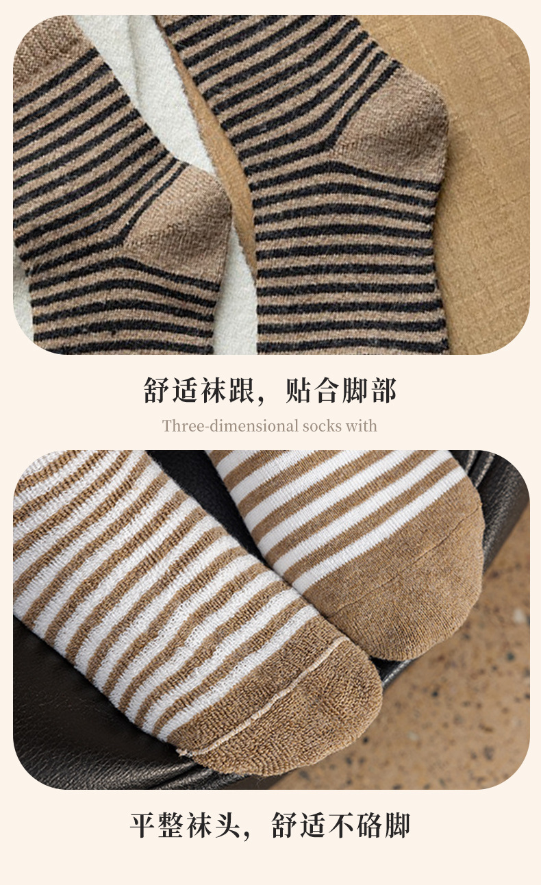 가을과 겨울 양말 다크 브라운 줄무늬 테리 양말을 두껍게 따뜻한 홈 바닥 양말 Maillard 피트 튜브 양말