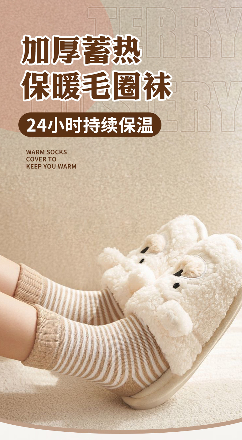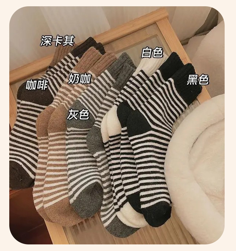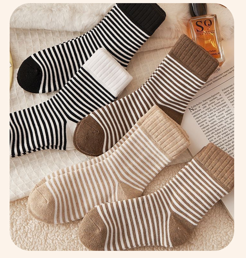 가을과 겨울 양말 다크 브라운 줄무늬 테리 양말을 두껍게 따뜻한 홈 바닥 양말 Maillard 피트 튜브 양말스토어 가기
