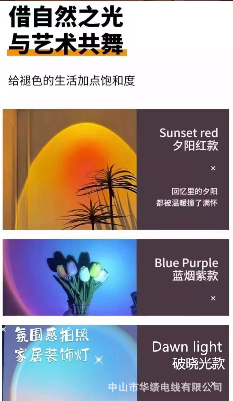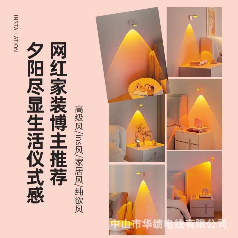 무선 페이스트 충전식 벽 램프 일몰 램프 이동식 야간 조명 라이브 배경 침실 분위기 램프스토어 가기