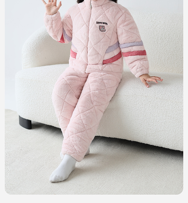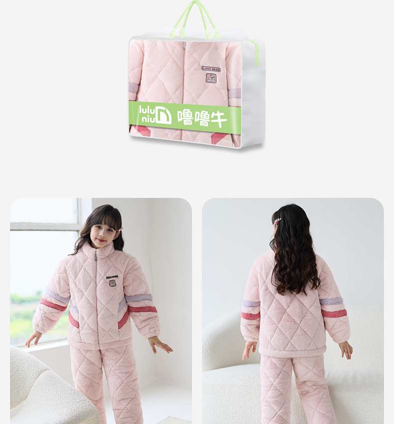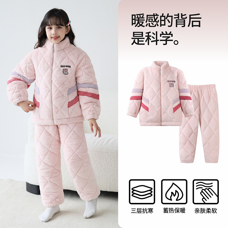 룰루 소 2024 겨울 어린이 파자마 여성 플란넬 면 3 층 두꺼운 중대형 어린이 소녀 홈 옷스토어 가기