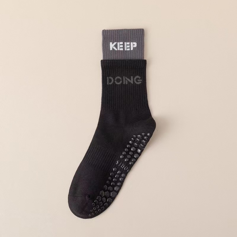 요가 양말 러닝 피트니스 스포츠 레터 실리콘 미끄럼 방지 무봉제 여성용 샤크 팬츠용 중간 길이 필라테스 양말스토어 가기