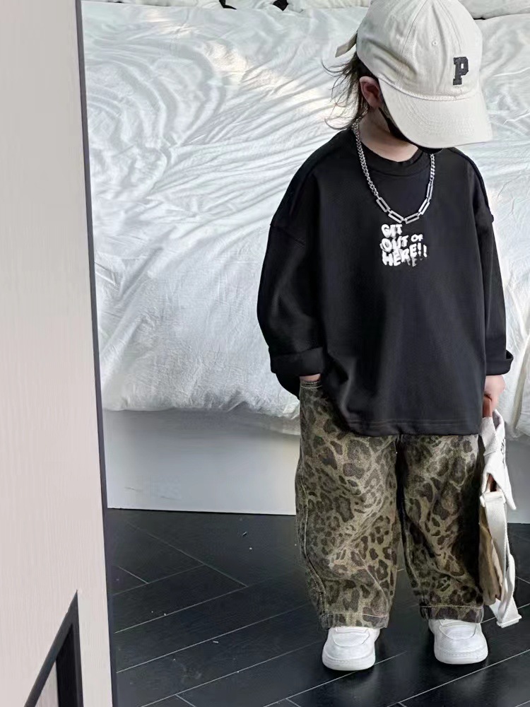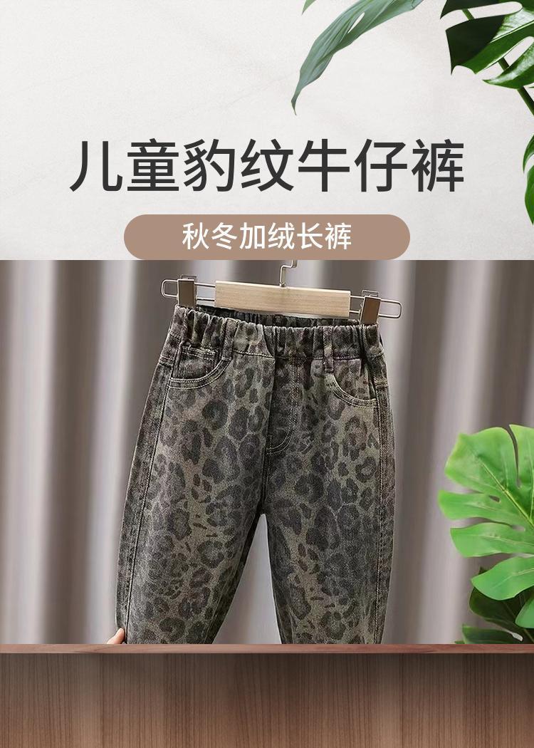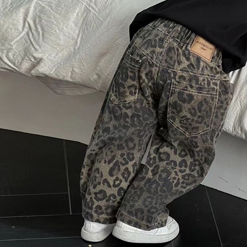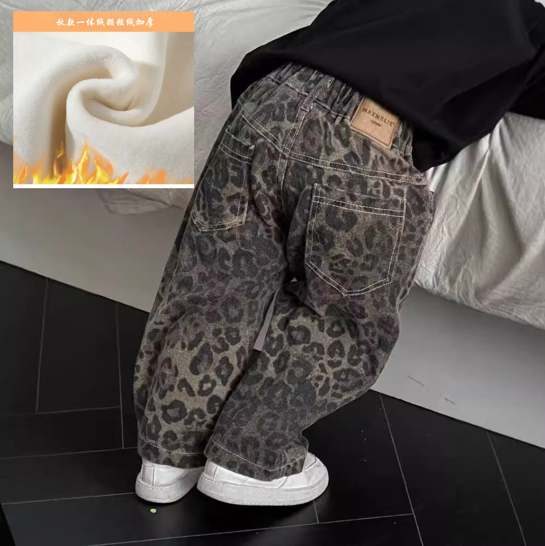 어린이 바지 기모 따뜻한 2024 새로운 겨울 레오파드 무늬 바지 알파카 소년 소녀 가을과 겨울 청바지스토어 가기