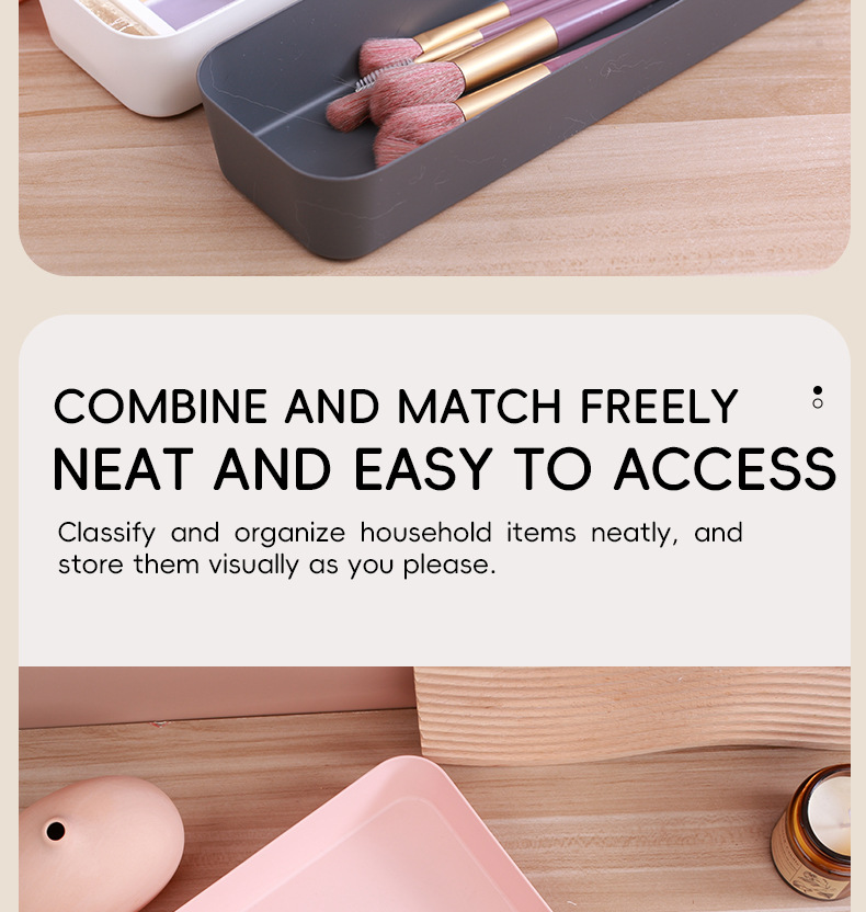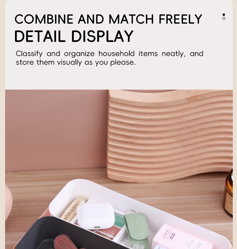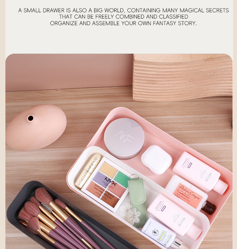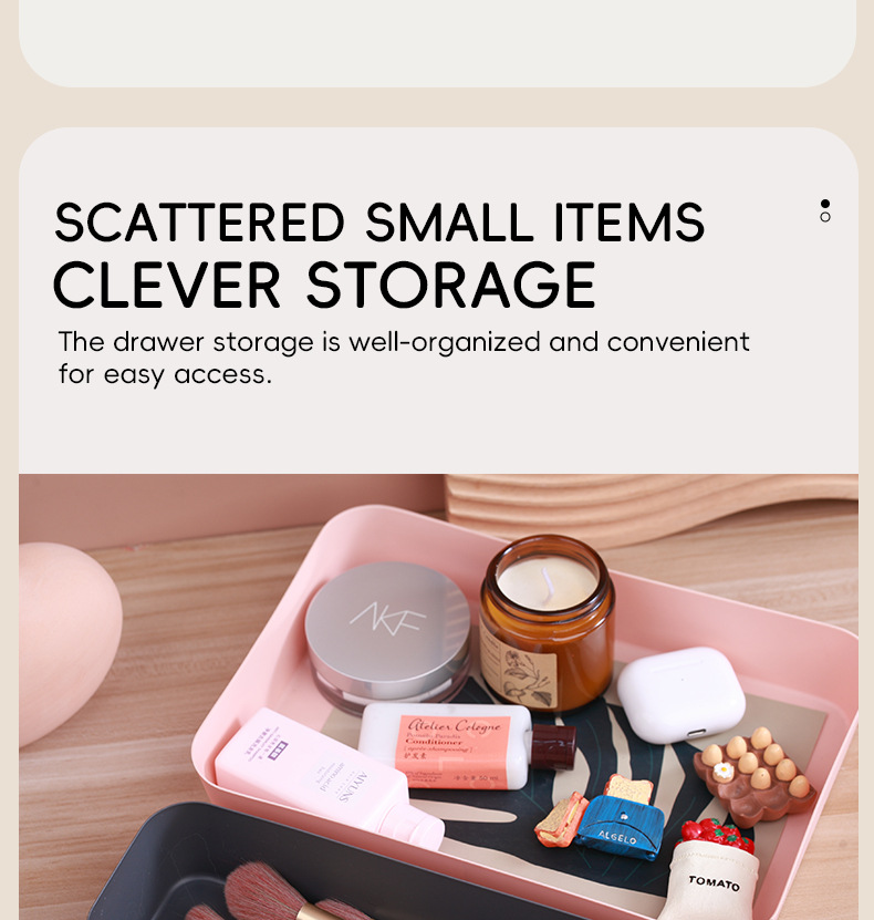 데스크탑 서랍형 수납함은 조합하여 당겨서 정리할 수 있으며, 주방 식기류와 문구류를 보관할 수 있습니다.