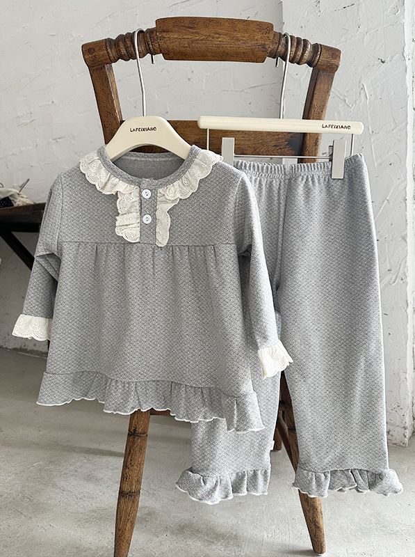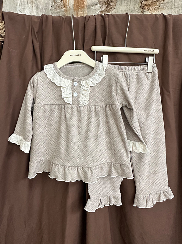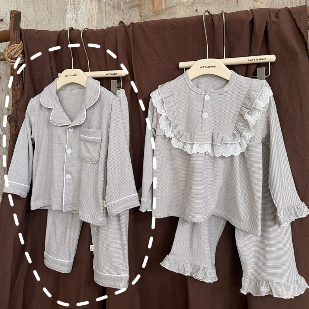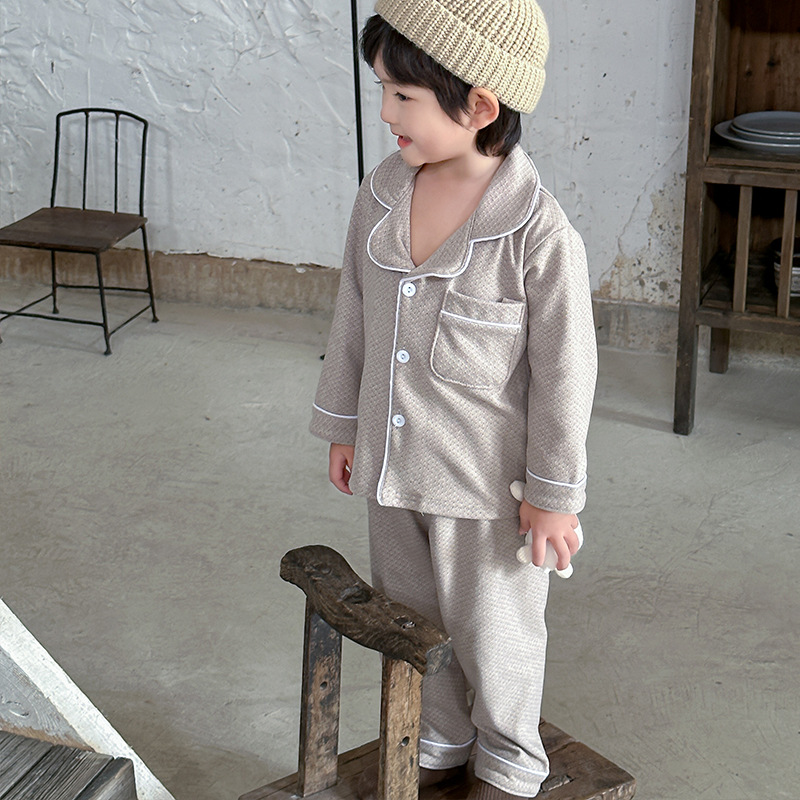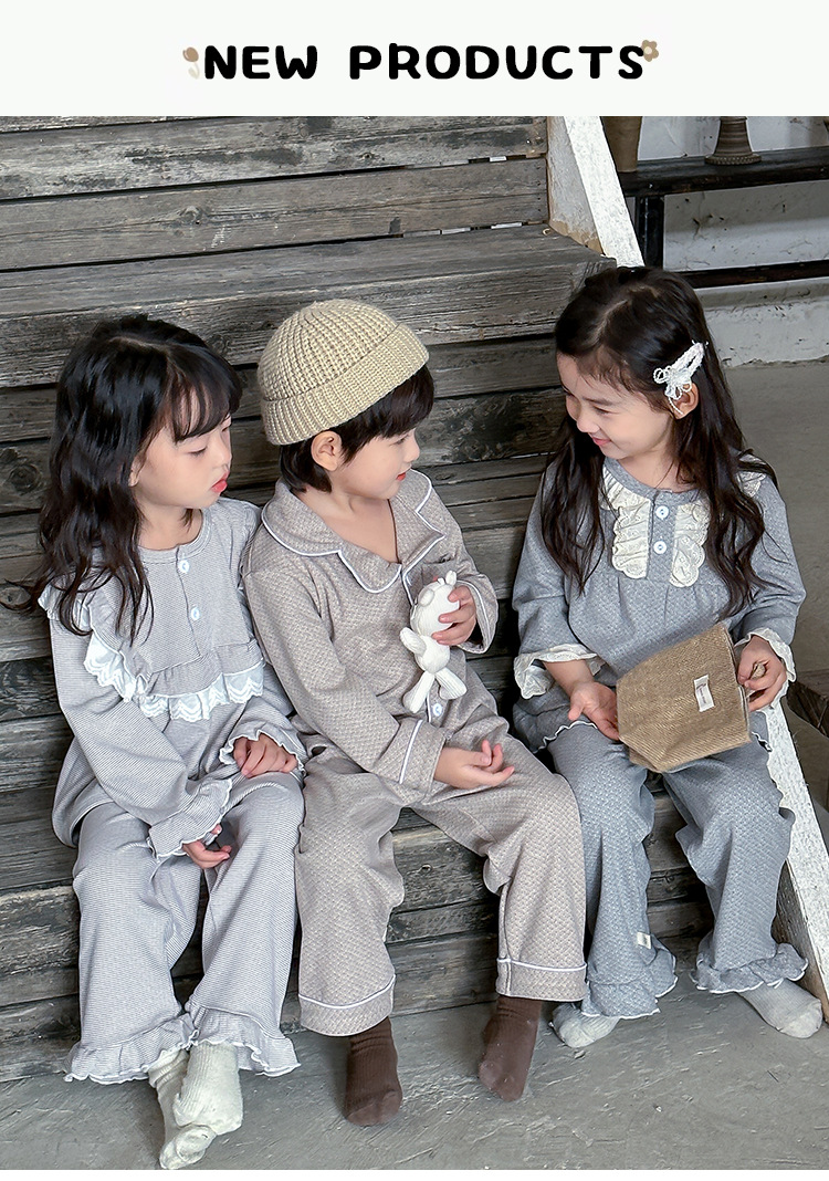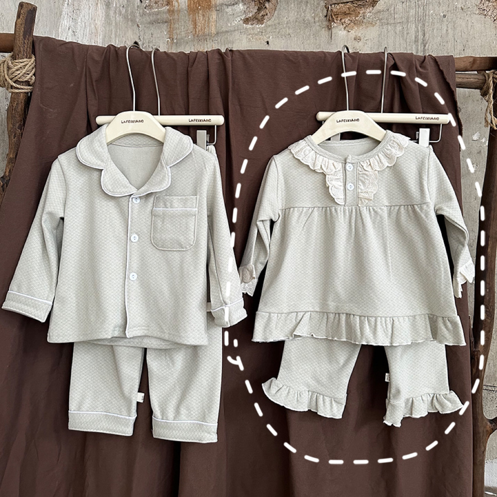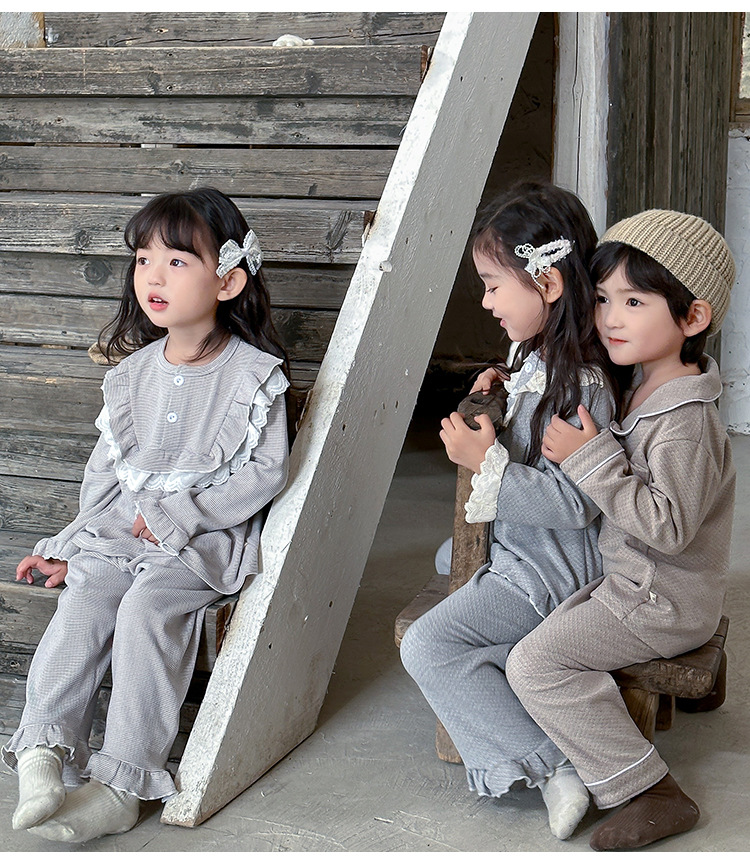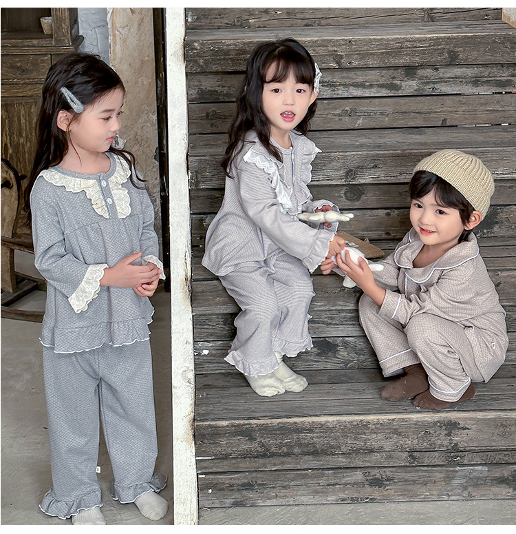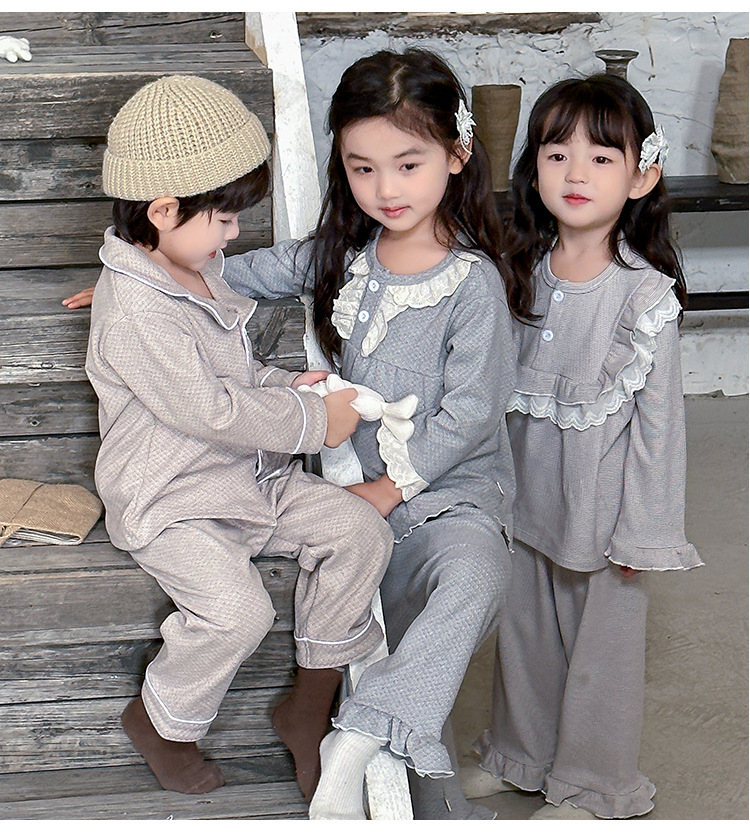 가을과 겨울 세트 어린이 집 옷 따뜻한 벨벳 형제 자매 소년 소녀 잠옷 세트 레이스 카디건
