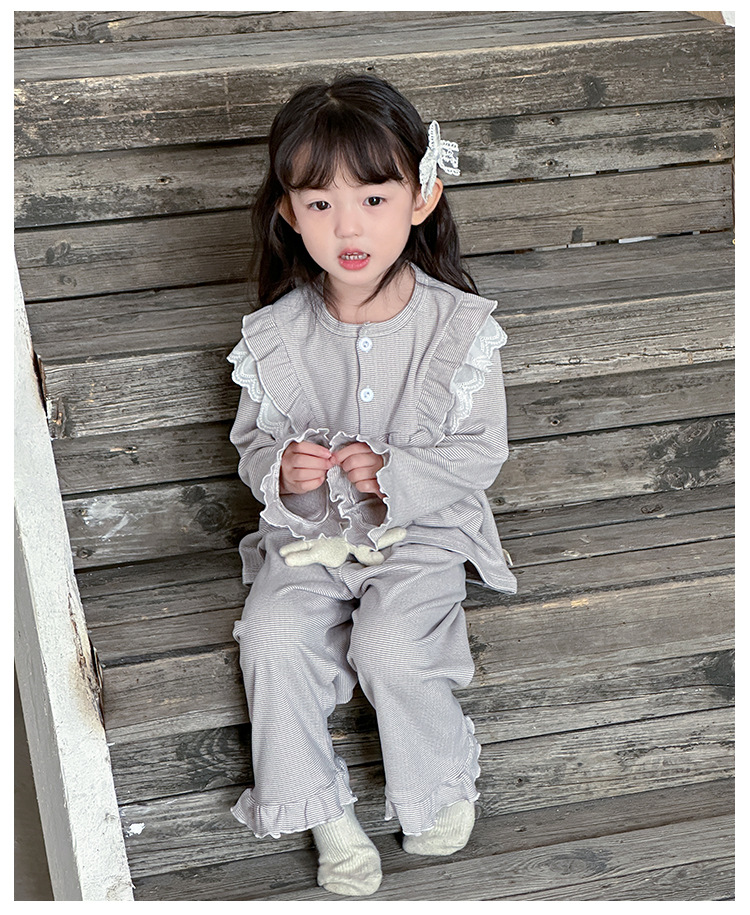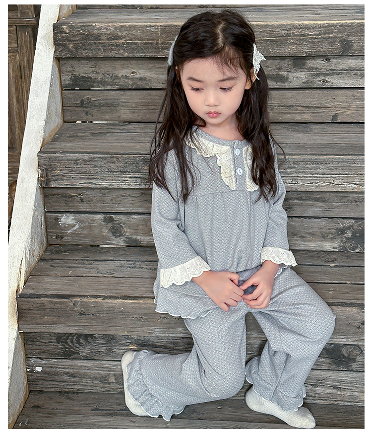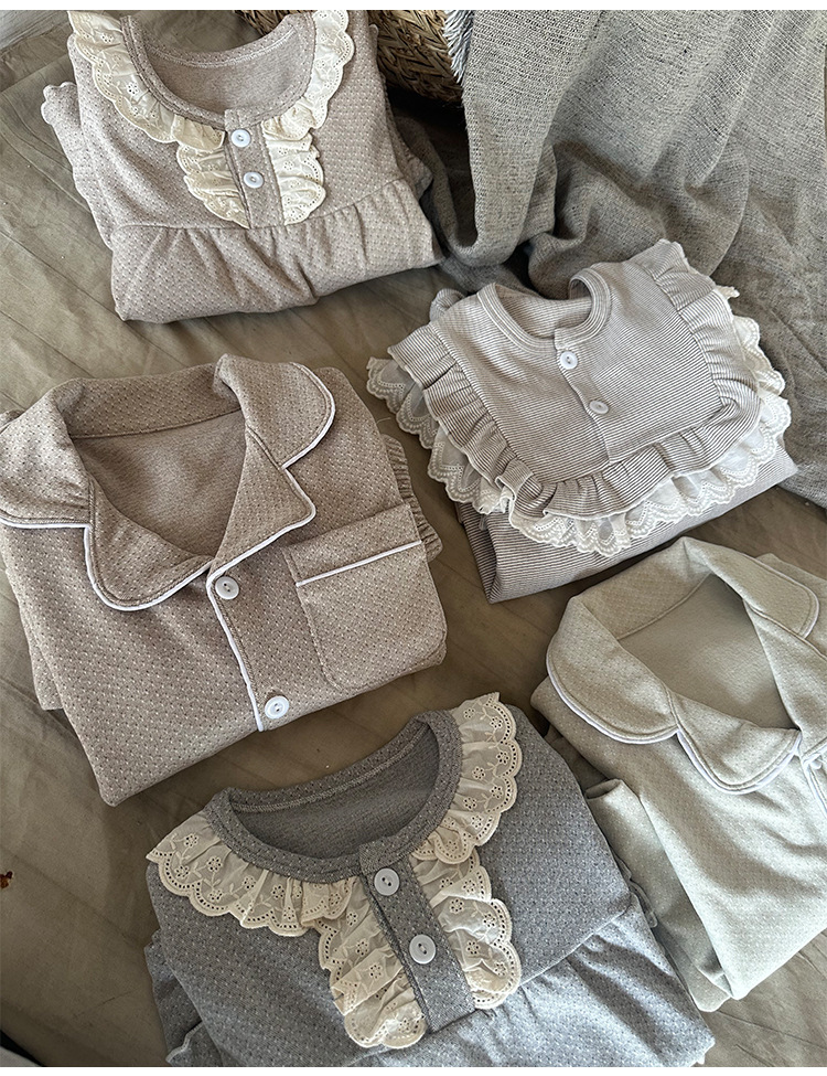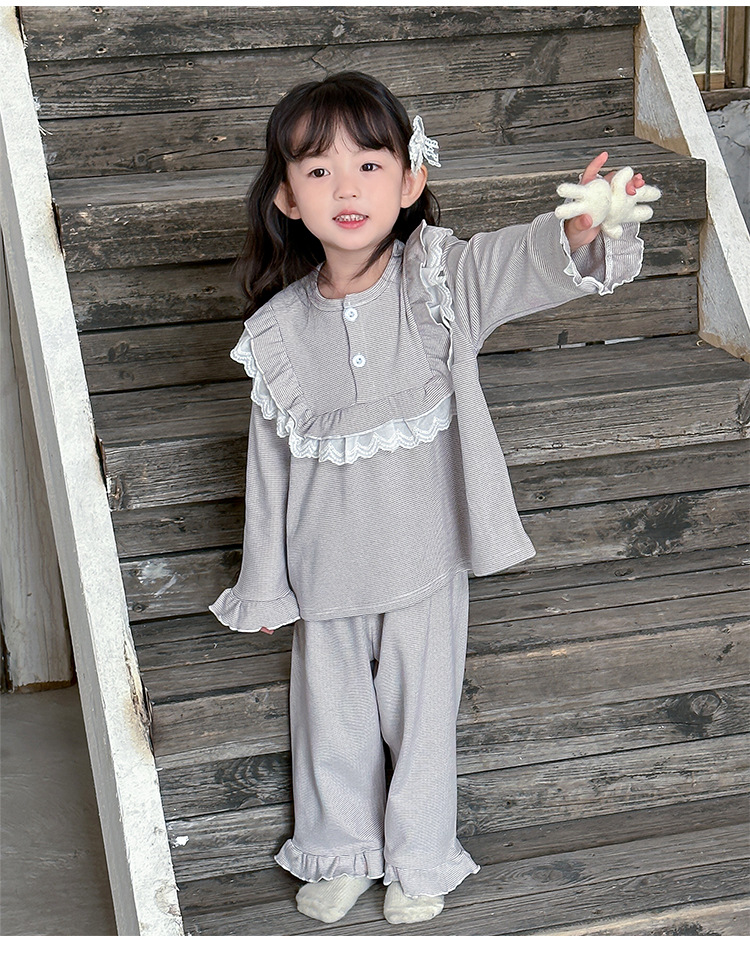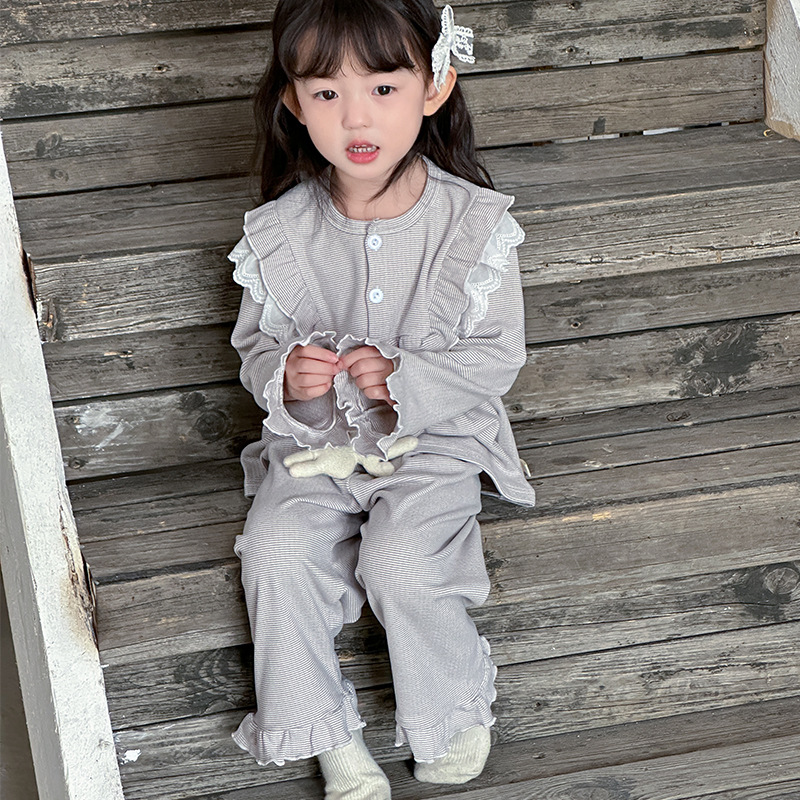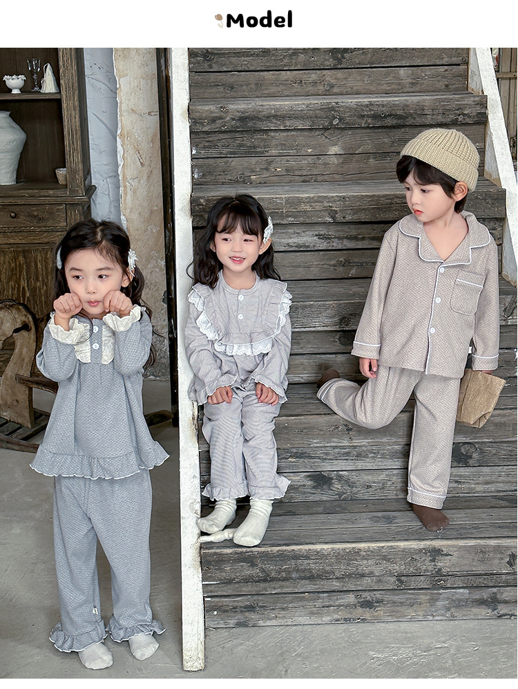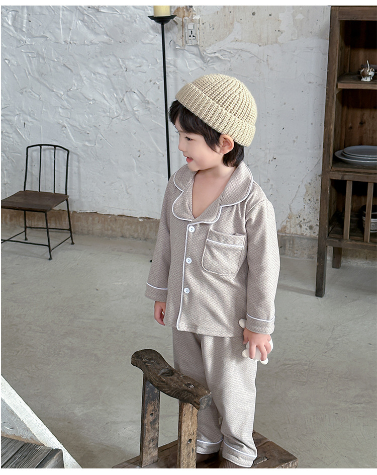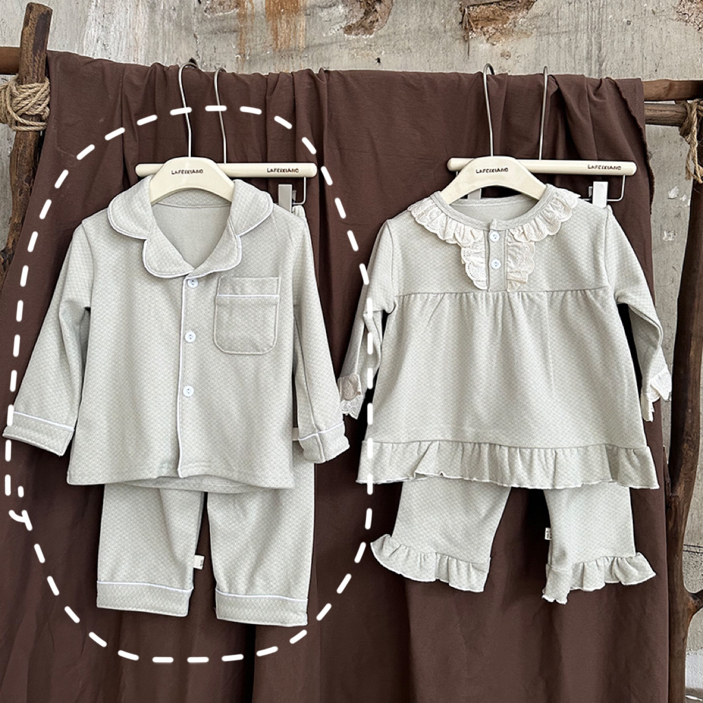 가을과 겨울 세트 어린이 집 옷 따뜻한 벨벳 형제 자매 소년 소녀 잠옷 세트 레이스 카디건