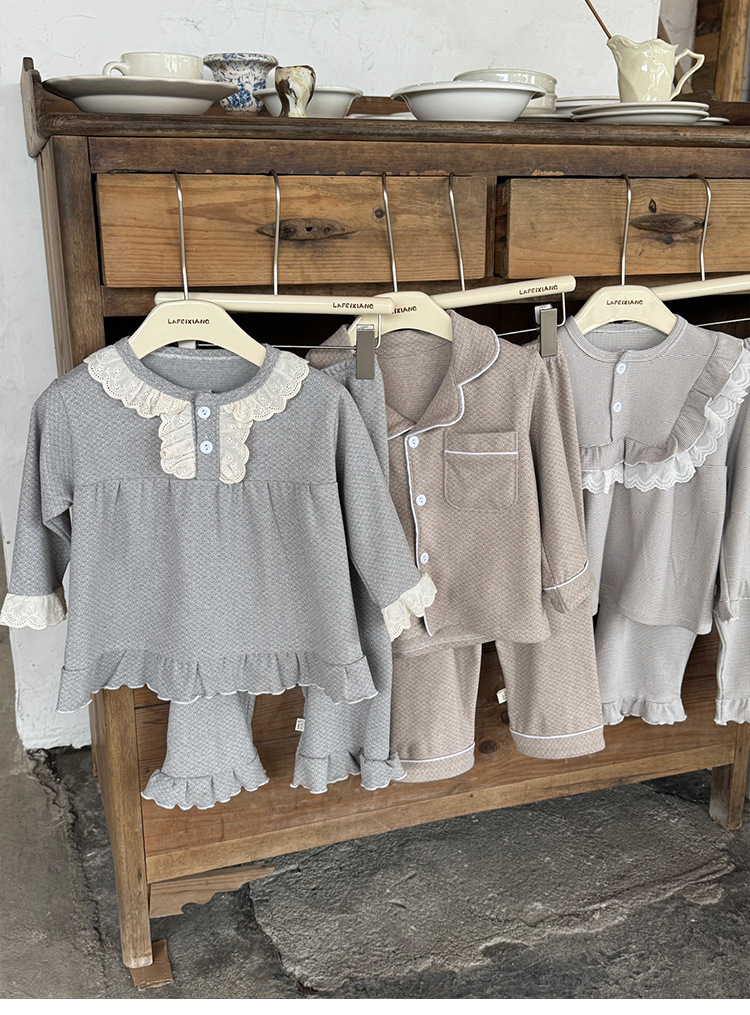 가을과 겨울 세트 어린이 집 옷 따뜻한 벨벳 형제 자매 소년 소녀 잠옷 세트 레이스 카디건스토어 가기
