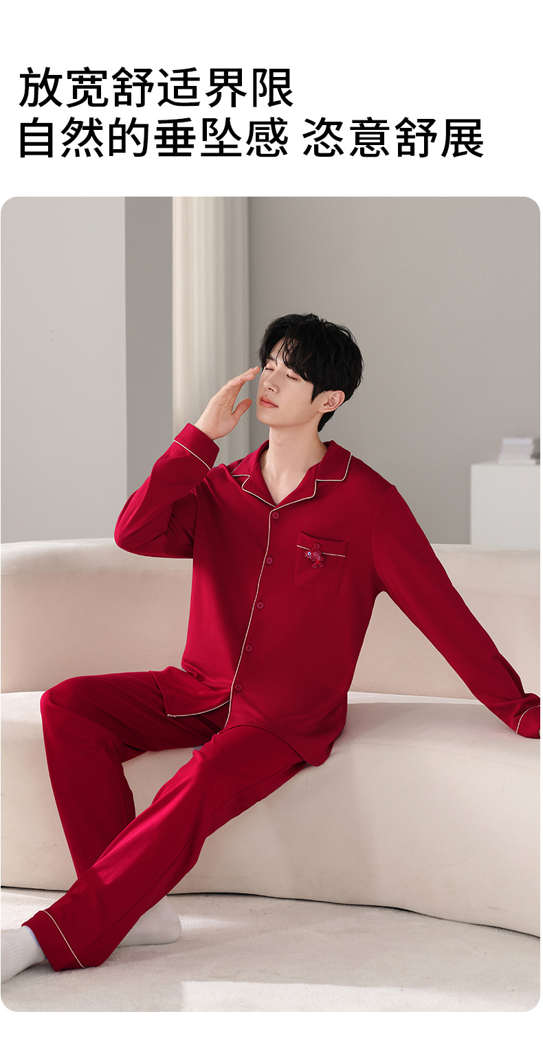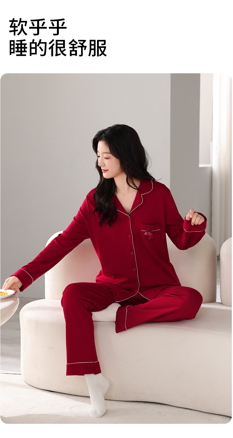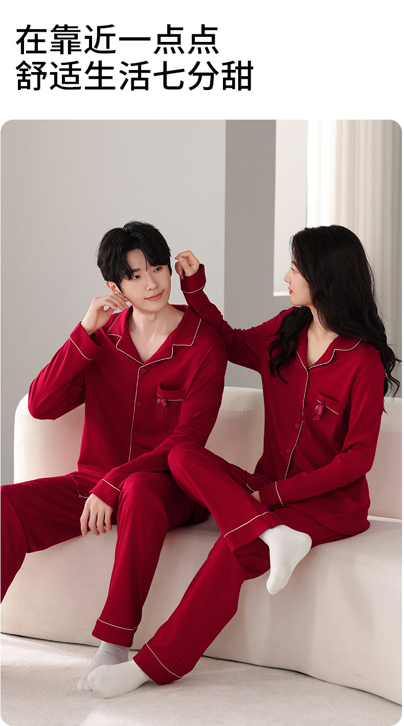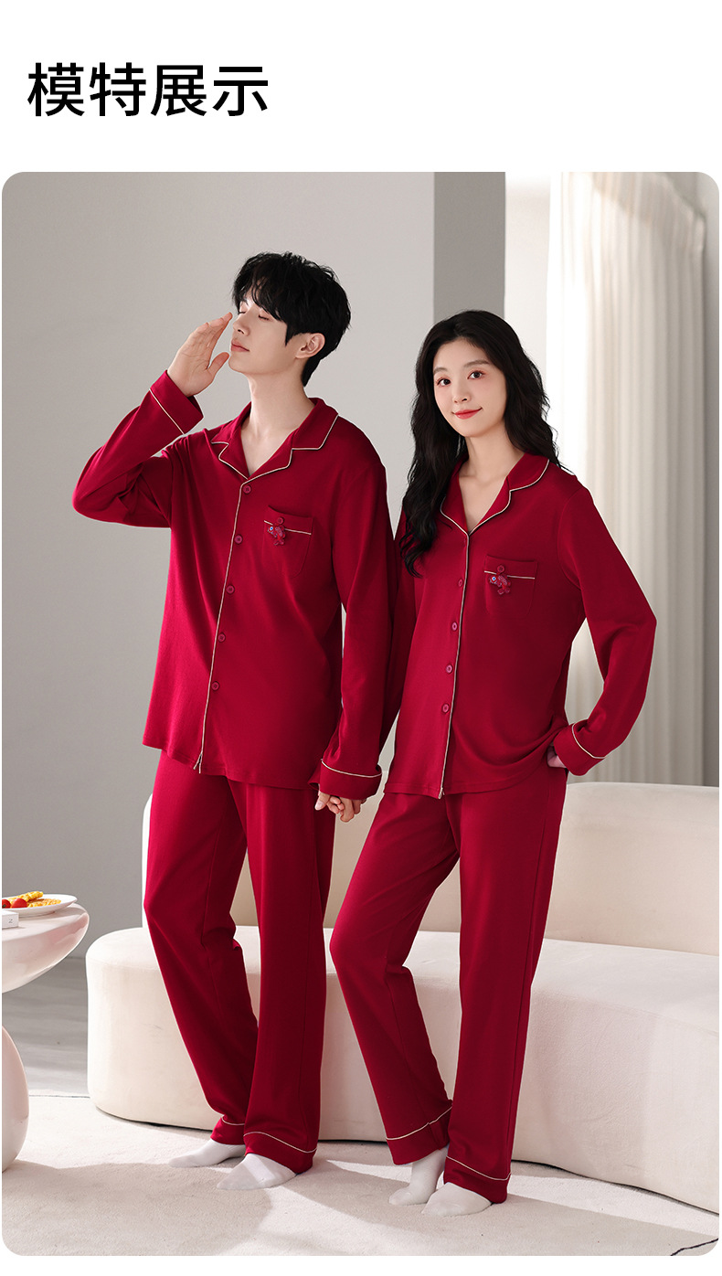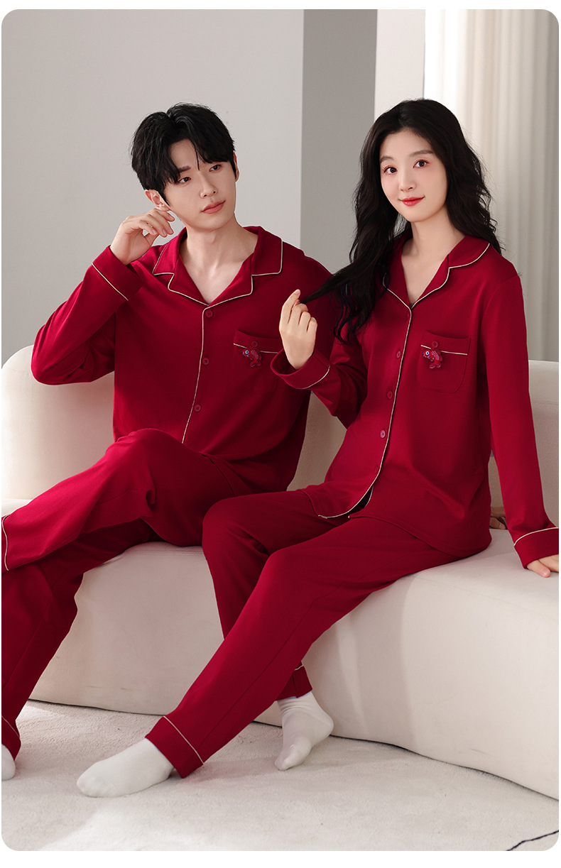 뱀의 고양이 남자 해 빨간 잠옷 클래스 커플 남자와 여자 순면 가족 년 결혼식 Dowry 고급 세트 홈 옷