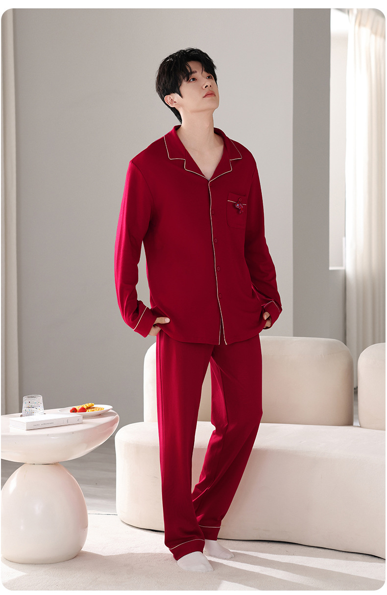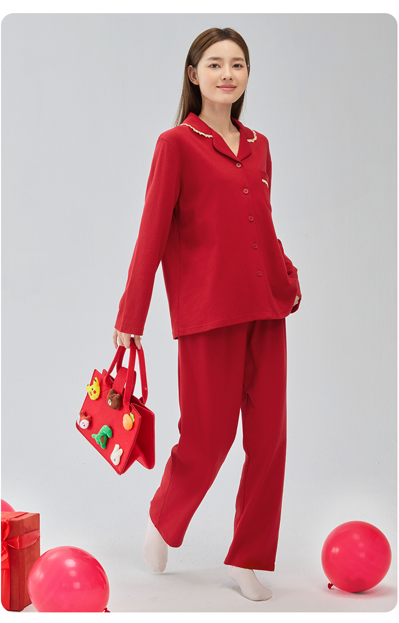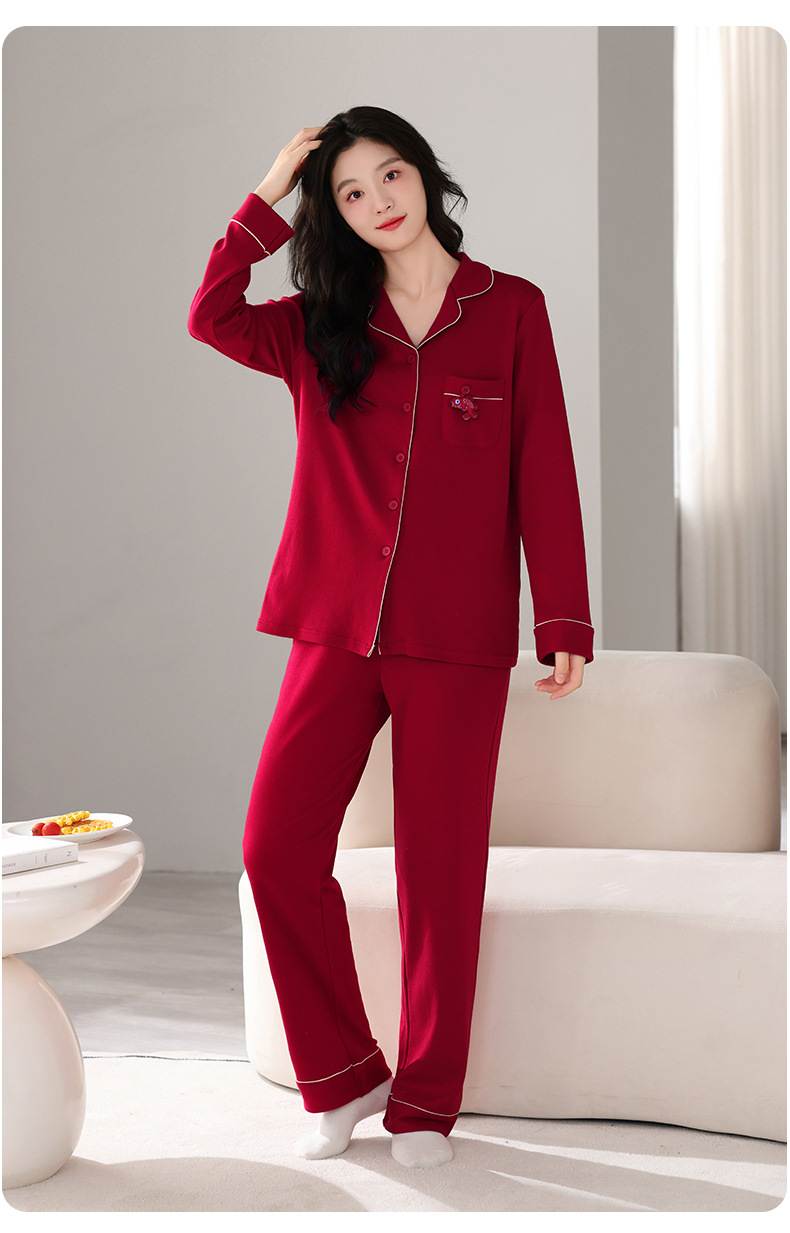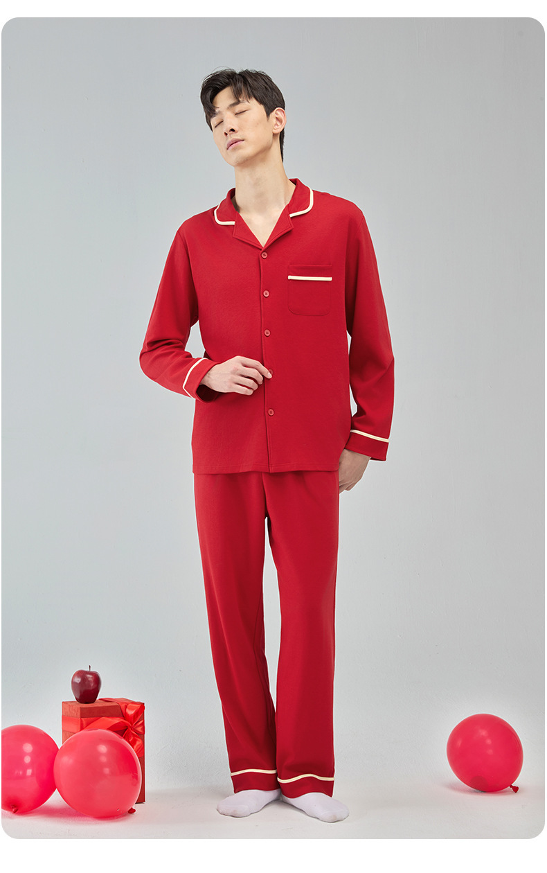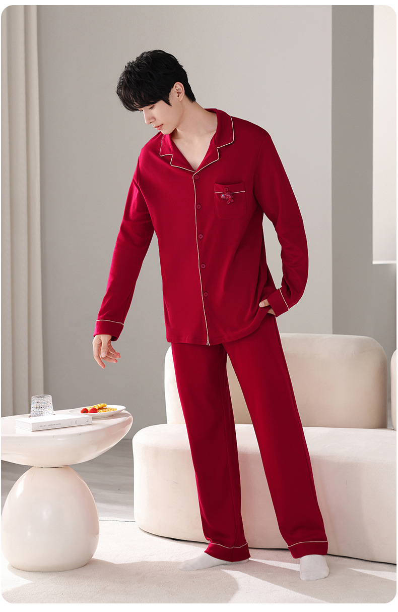 뱀의 고양이 남자 해 빨간 잠옷 클래스 커플 남자와 여자 순면 가족 년 결혼식 Dowry 고급 세트 홈 옷