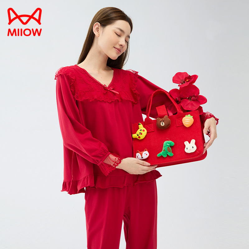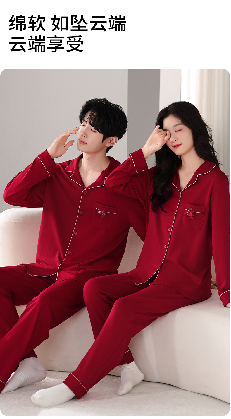 뱀의 고양이 남자 해 빨간 잠옷 클래스 커플 남자와 여자 순면 가족 년 결혼식 Dowry 고급 세트 홈 옷스토어 가기