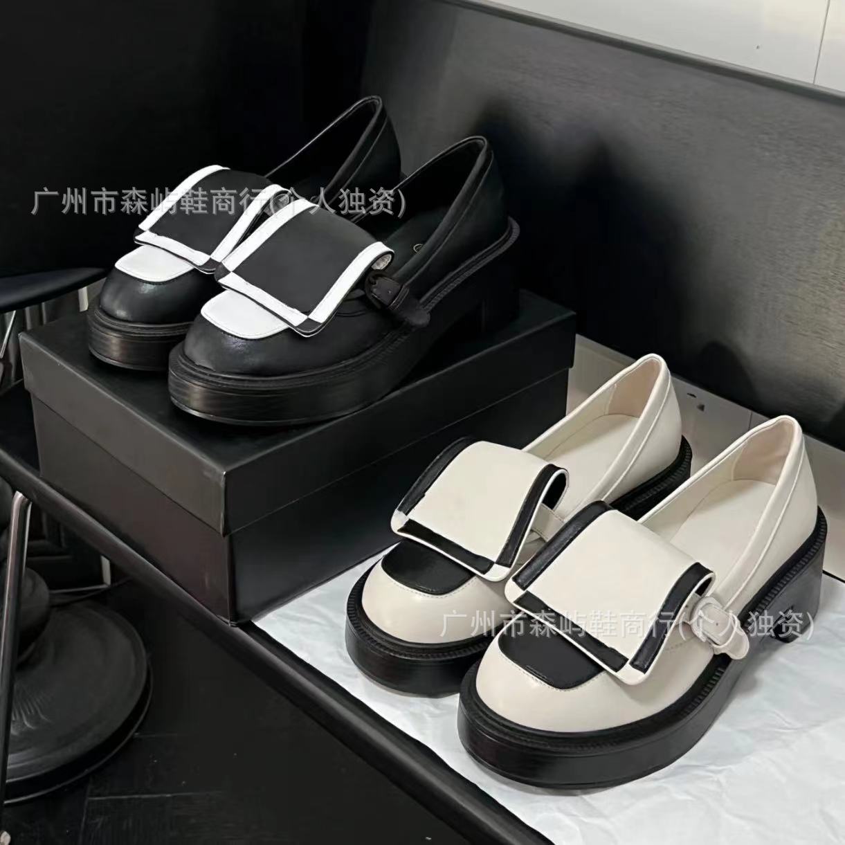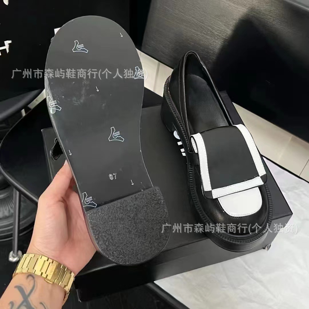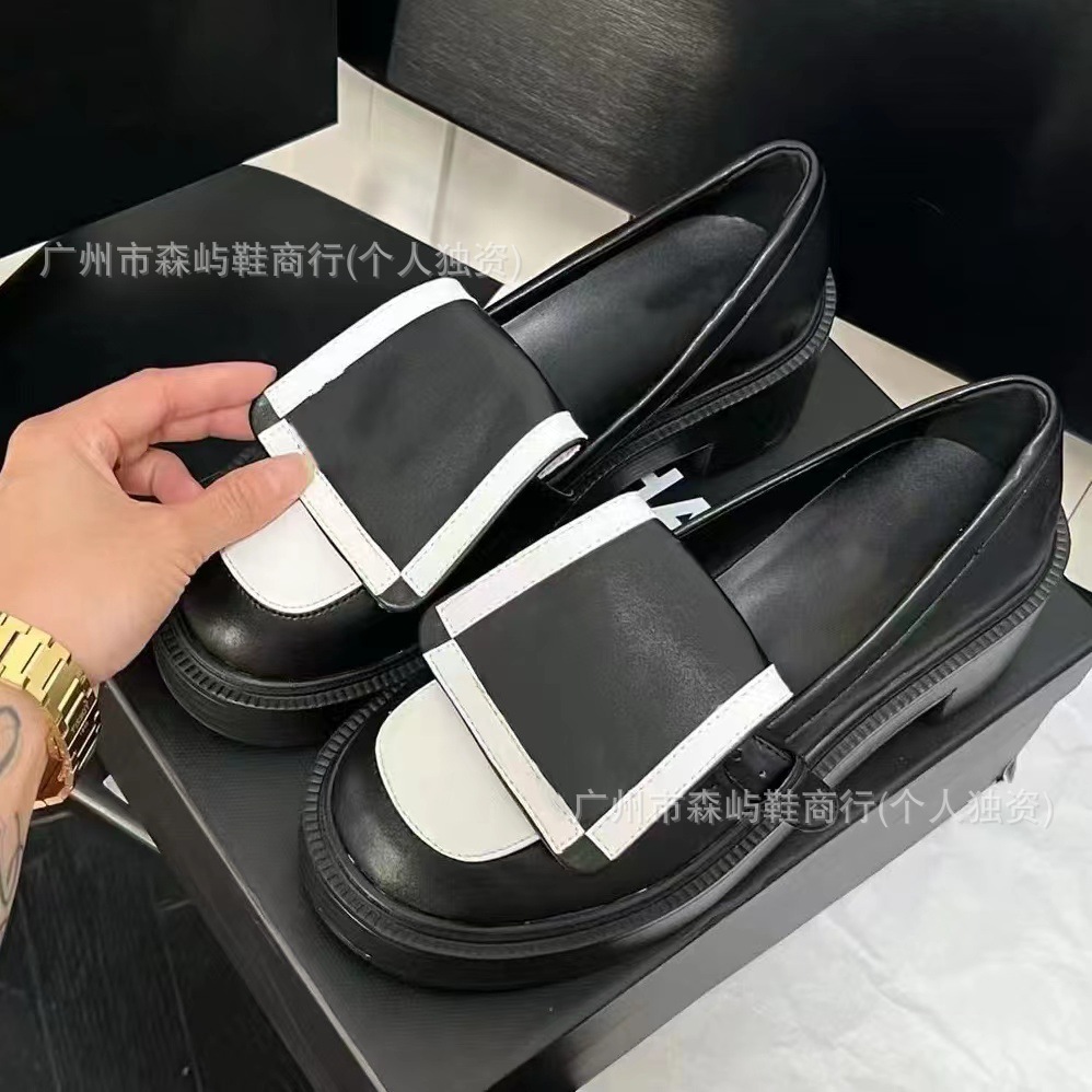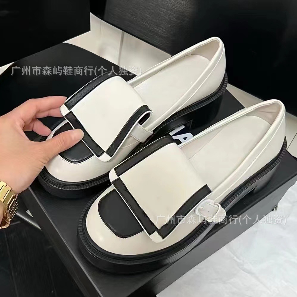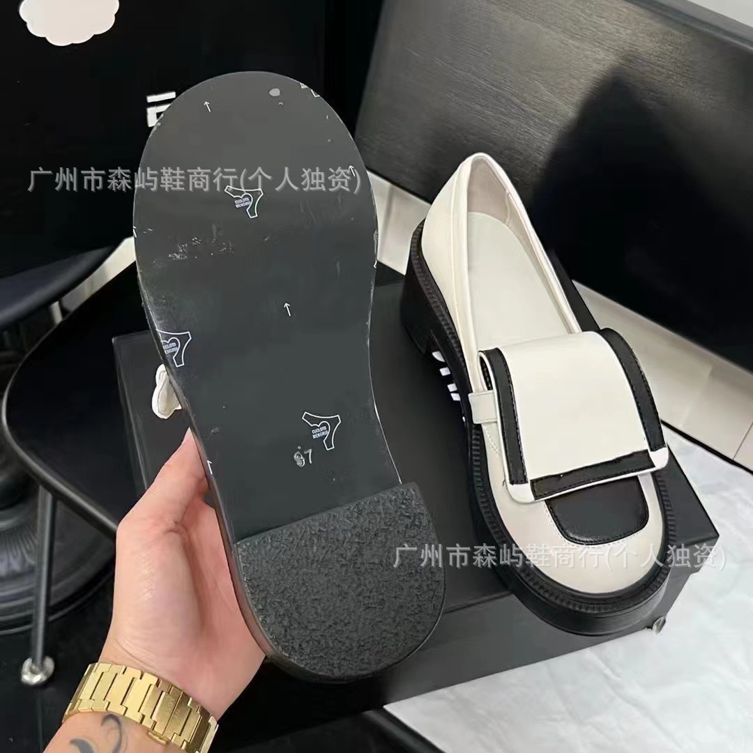 Xiaoxiangfeng 여성용 두꺼운 밑창 슬립 온 로퍼 2024 가을 새로운 플랫폼 라운드 발가락 두꺼운 굽 작은 가죽 신발