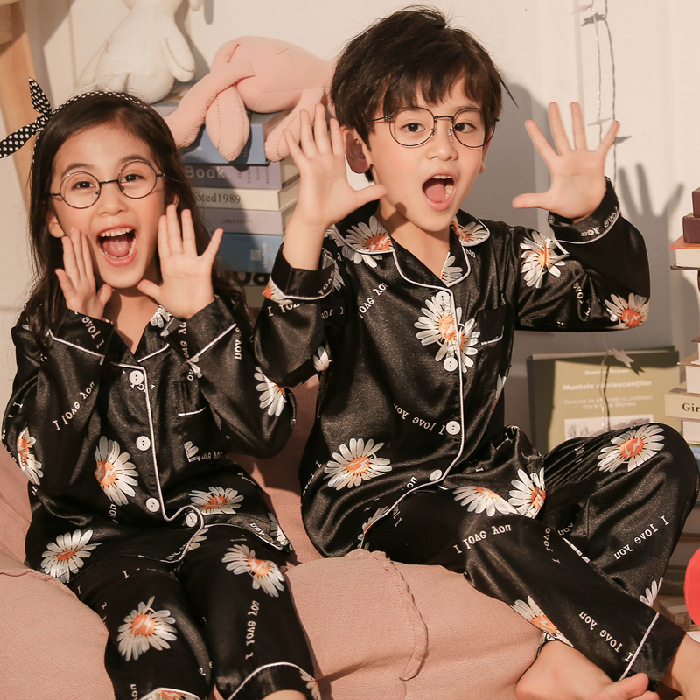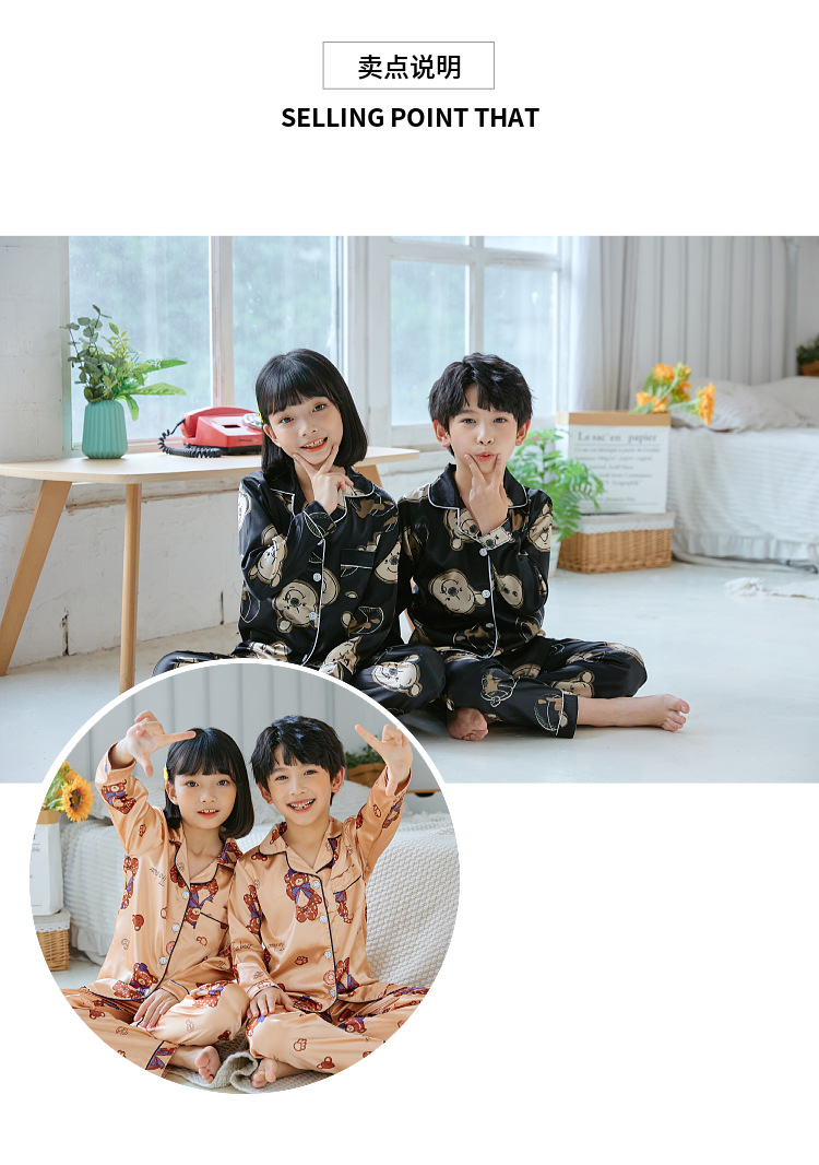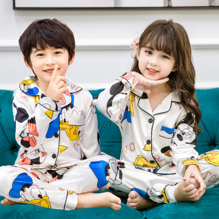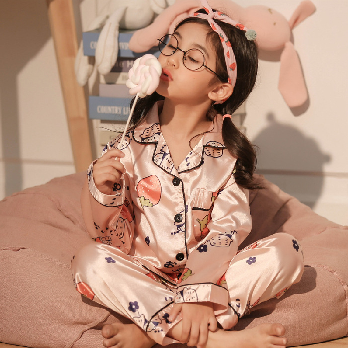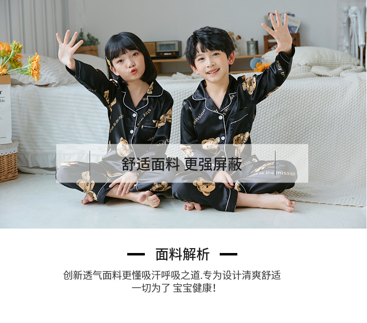 대외 무역 어린이 잠옷 여성 봄 가을 소년 모조 실크 아이스 실크 긴 소매 소녀 얇은 어린이 의류 홈 의류 세트스토어 가기