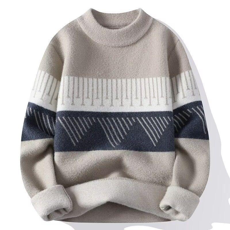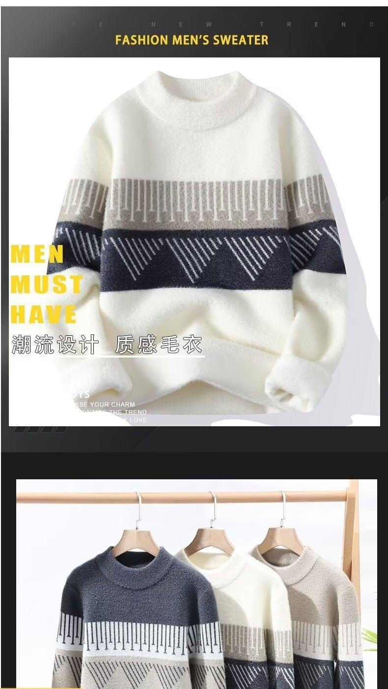 밍크 벨벳 스웨터 남자 하프 하이 넥 두꺼운 유행 브랜드 가을과 겨울 밍크 벨벳 니트 베이스 셔츠 따뜻한 옷