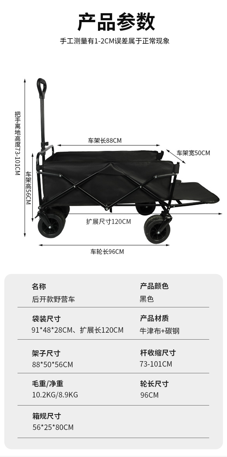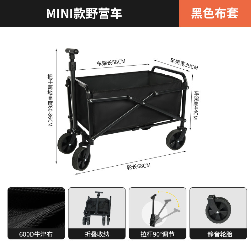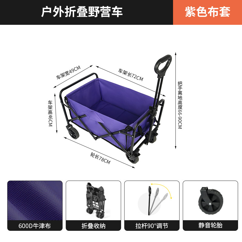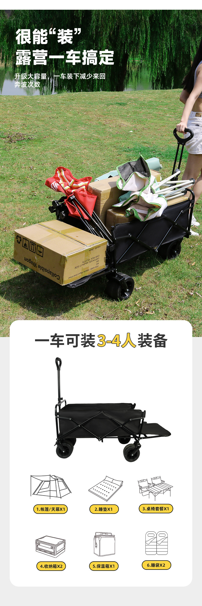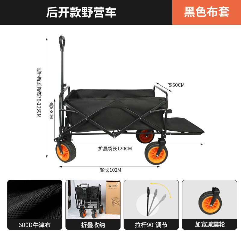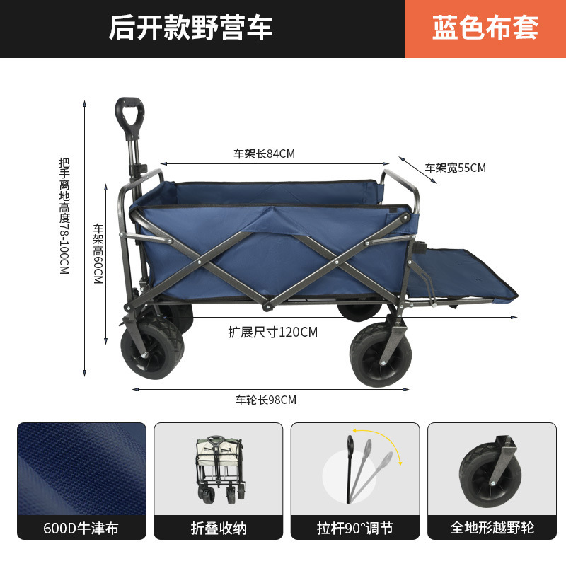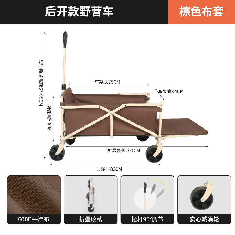 캠핑카 후면 도어 트롤리, 야외 접이식 캠프 어린이용 침대형 캠핑 트레일러, 피크닉 핸드카트