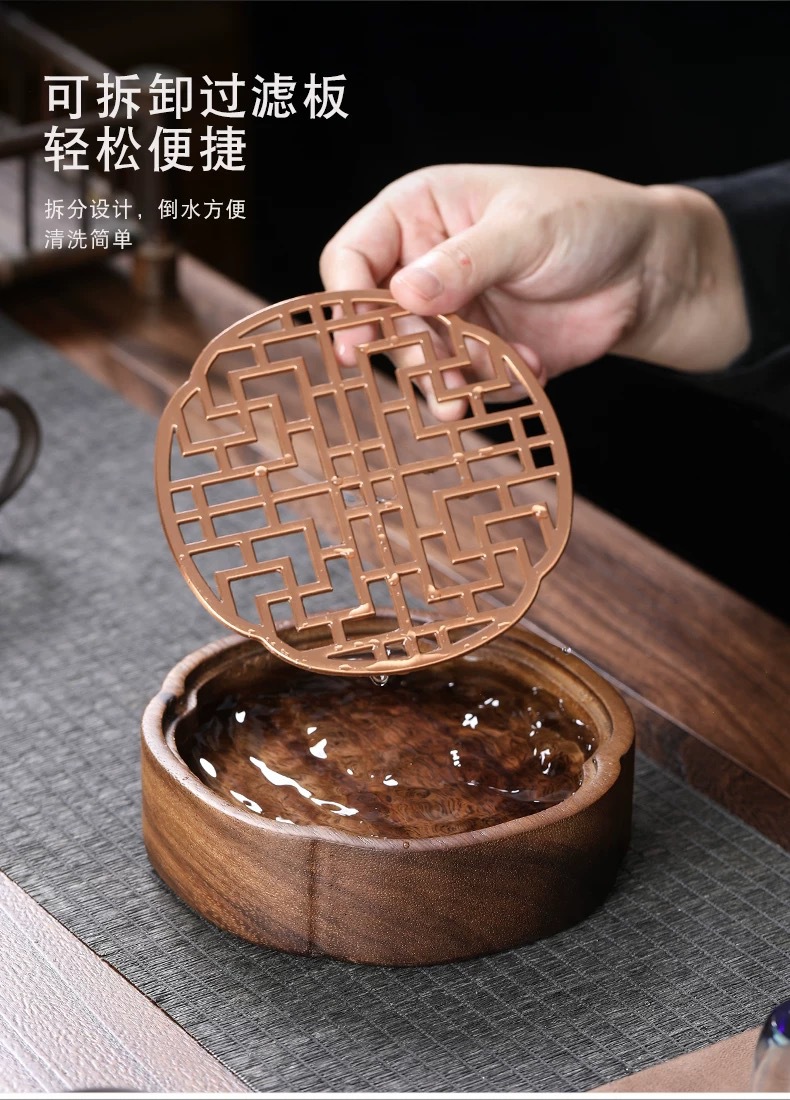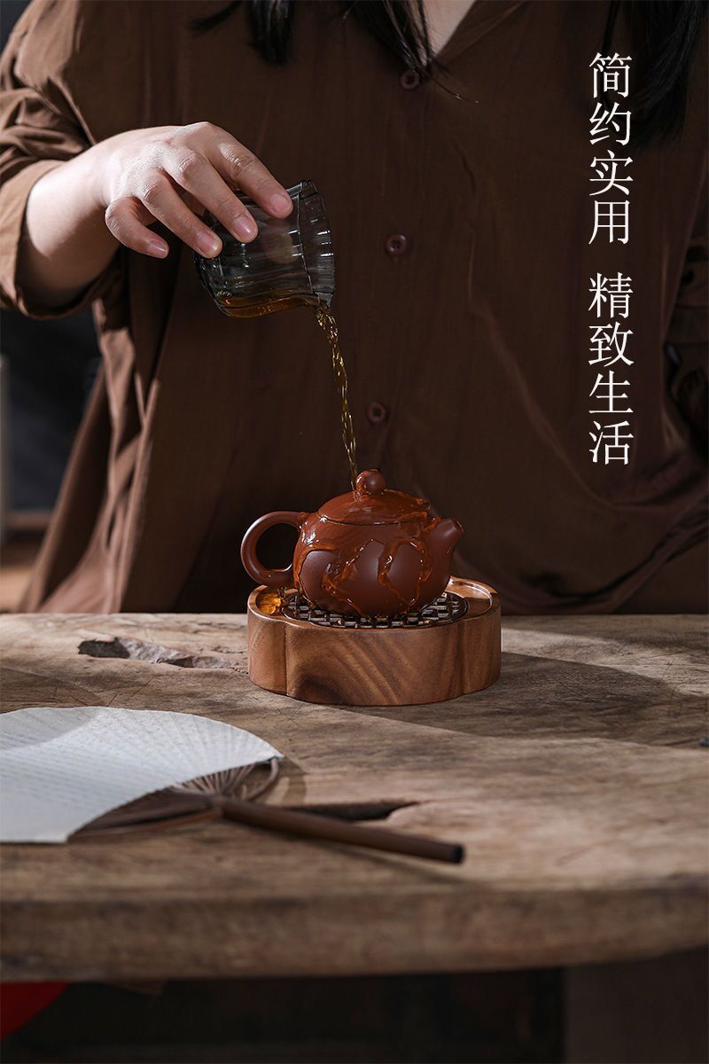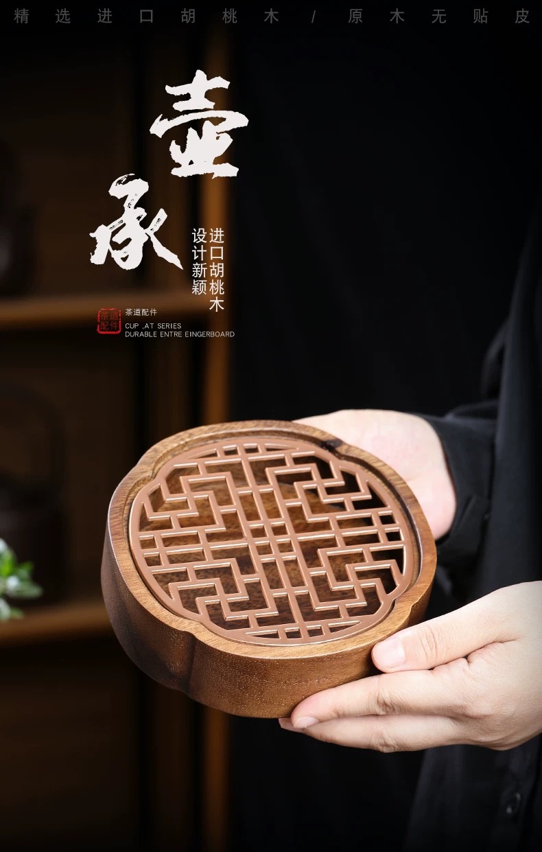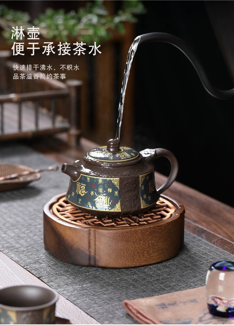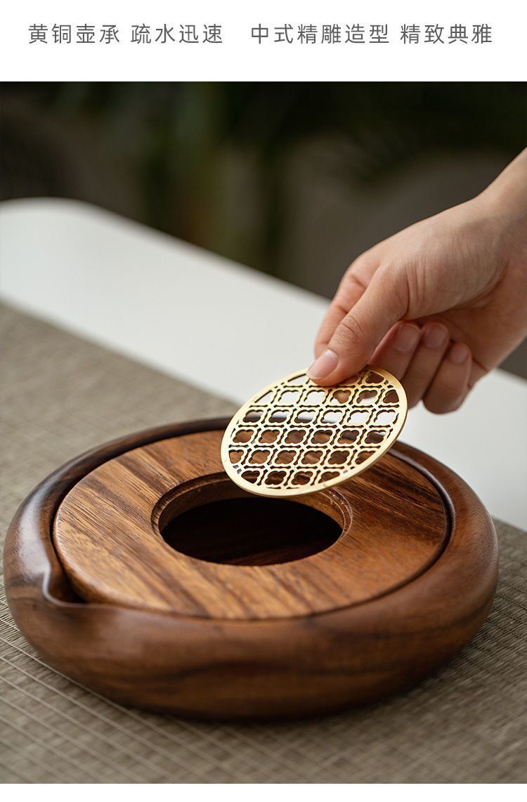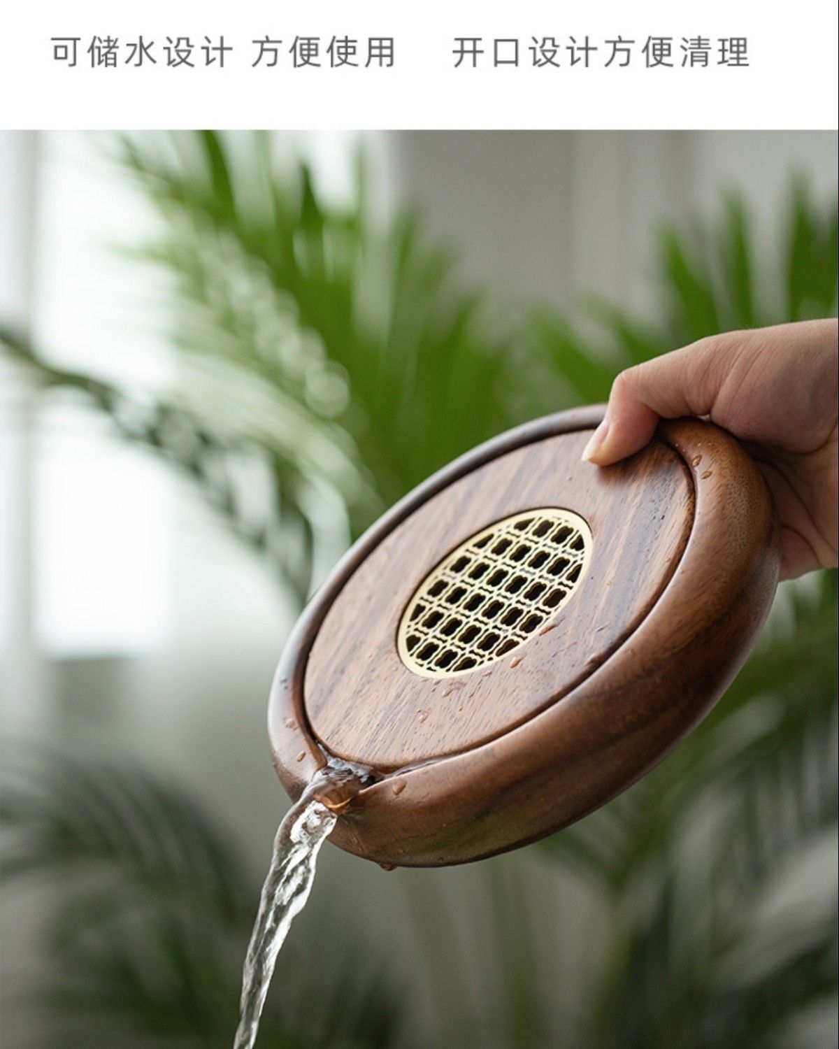 호두 단단한 나무 냄비 젖은 차 테이블 라운드 물 저장 차 트레이 보라색 모래 냄비 차 쿠션 차 냄비 쿵푸 트레이스토어 가기