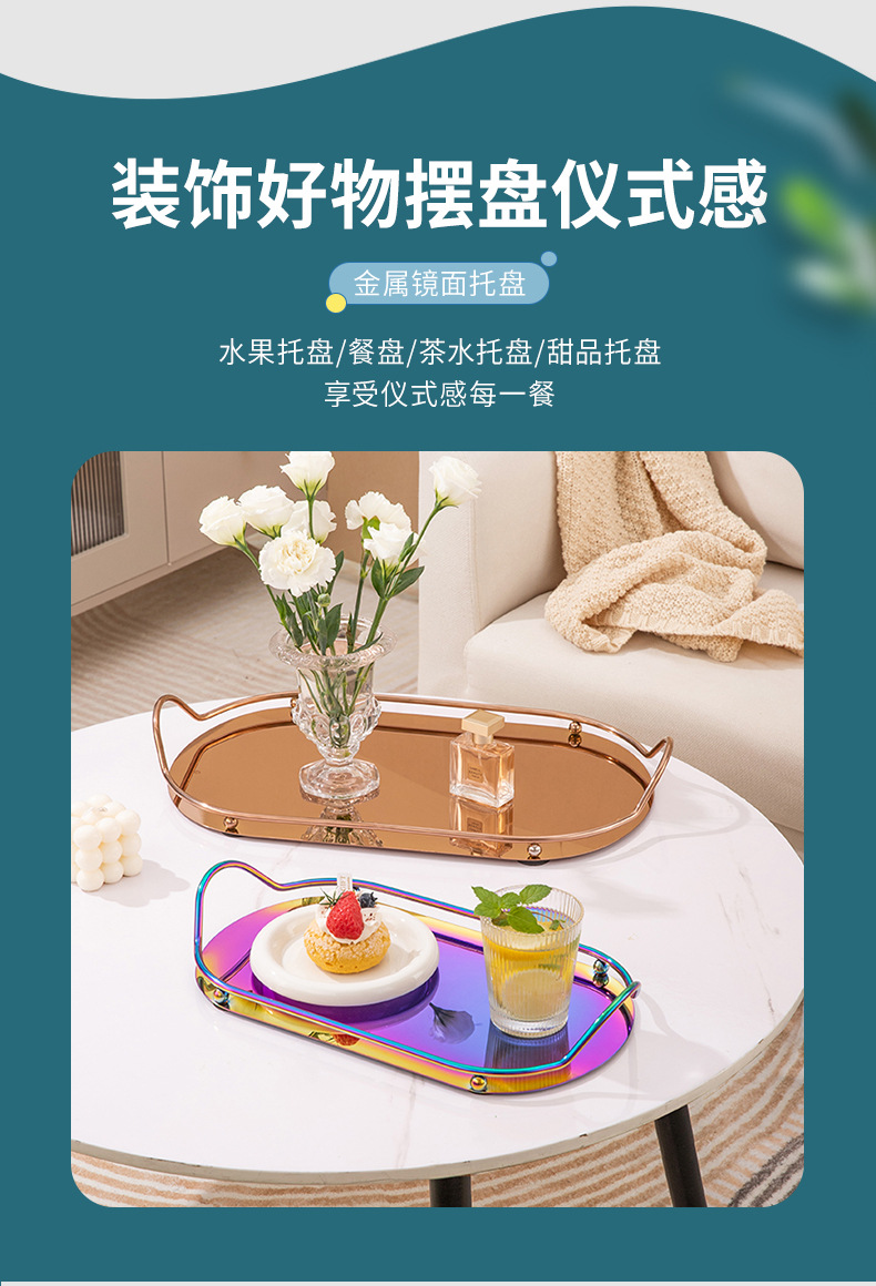 스테인레스 스틸 더블 귀 구슬 트레이 진미 티 트레이 다목적 저장 트레이 멀티 컬러 옵션 플랫 바닥 트레이