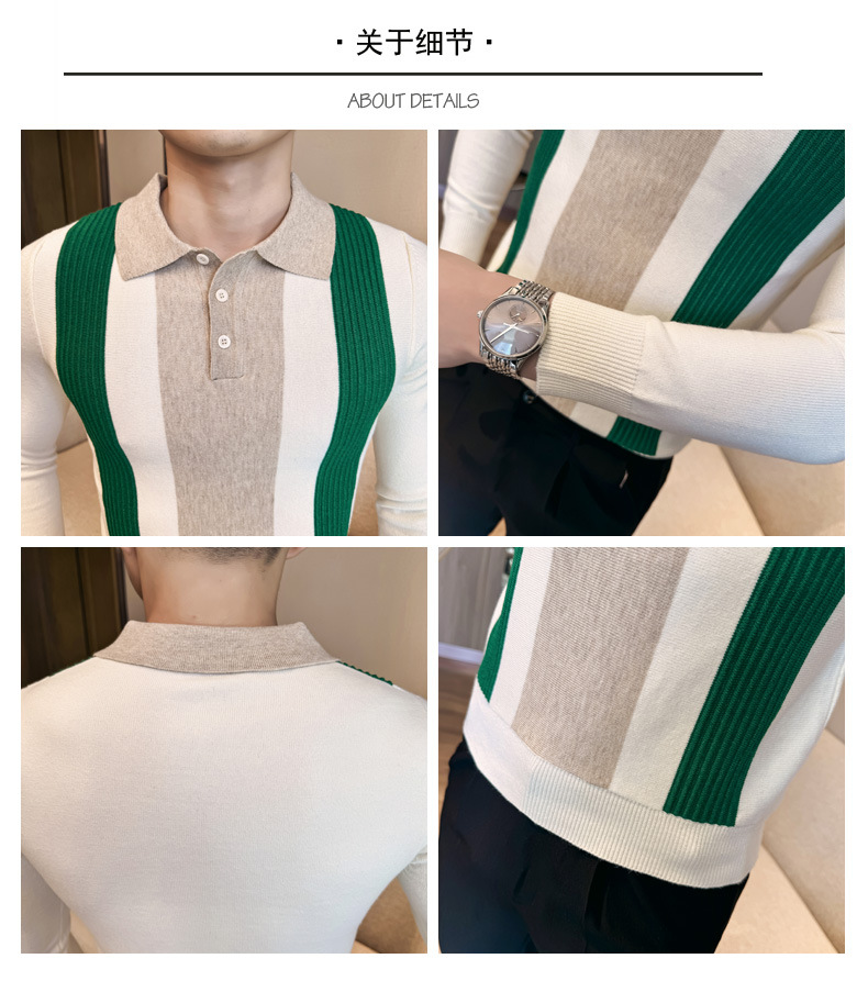 2024 가을과 겨울 새로운 남성 상점 주인 바람 스웨터 비즈니스 옷깃 폴로 셔츠 캐주얼 긴 소매 대비 컬러 스웨터 조수