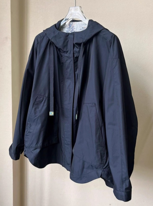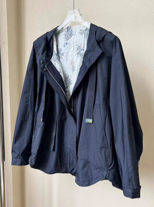 초가을 의상, 독특하고 매우 멋진 작은 향기로운 네이비 블루 후드 재킷 여성 2024 새로운 봄, 가을스토어 가기