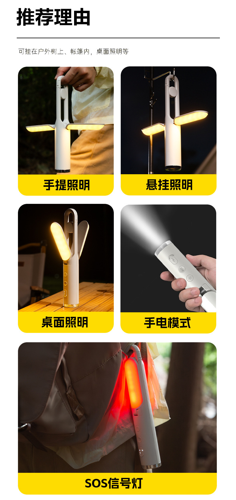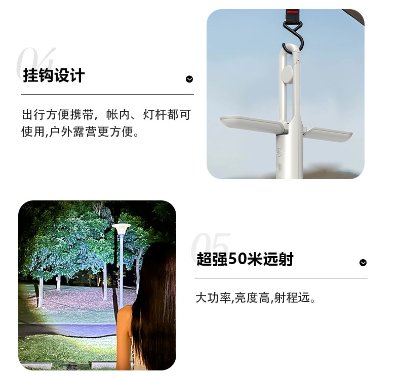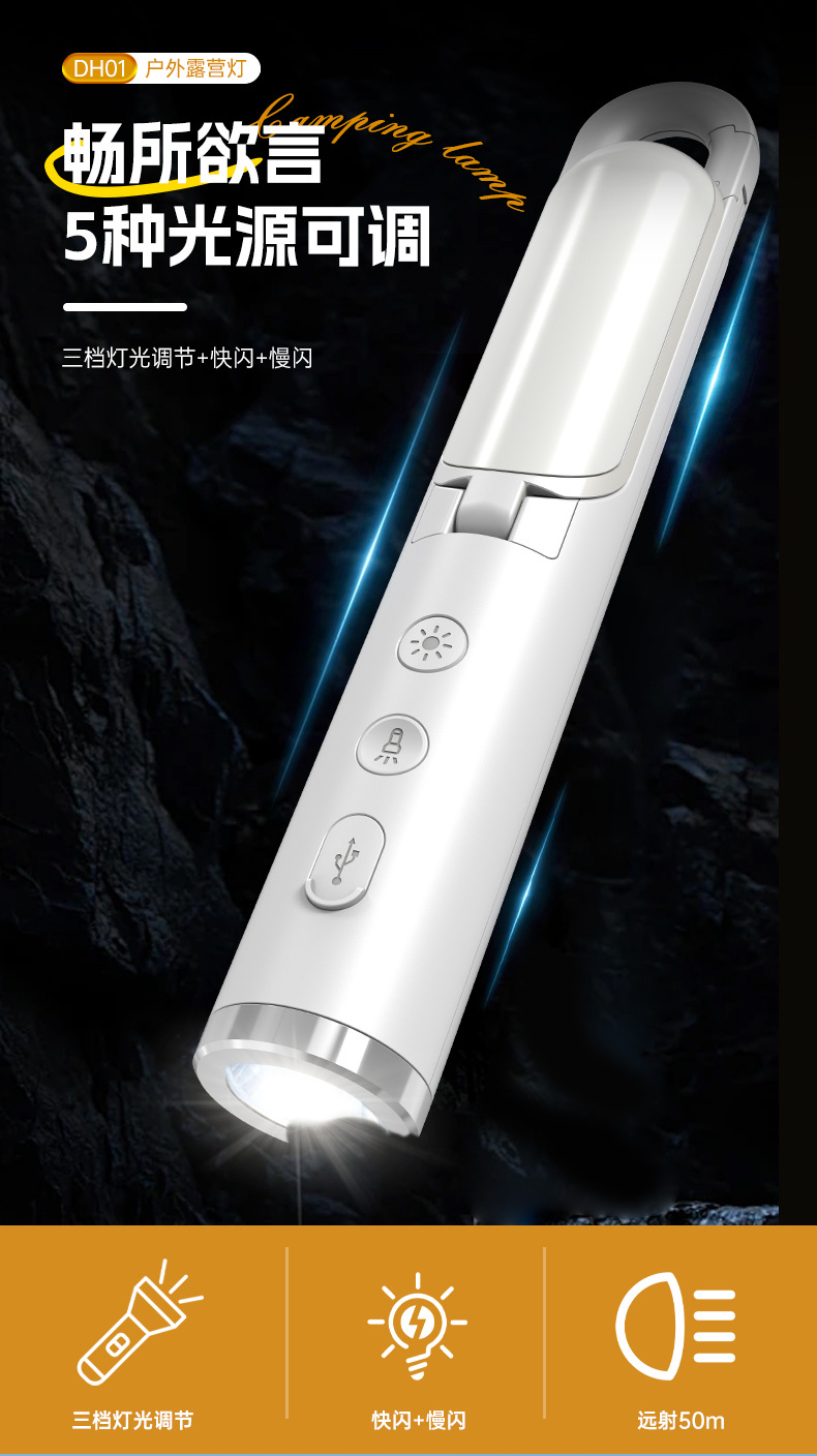 다기능 야외 휴대용 충전식 손전등, 접이식 캠핑용 걸이등, 텐트 LED 라이트, 캠핑용스토어 가기