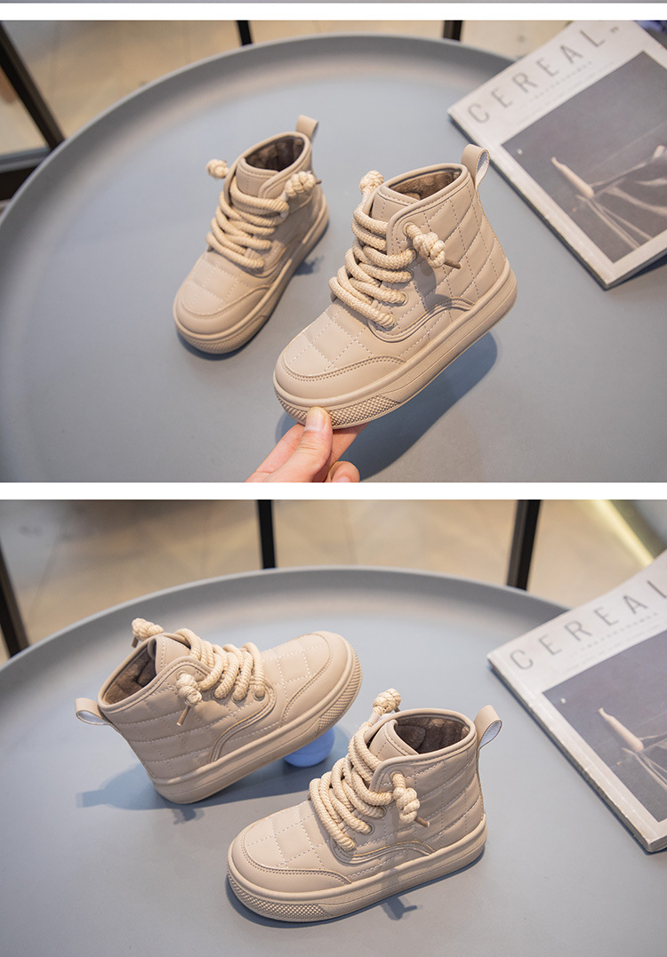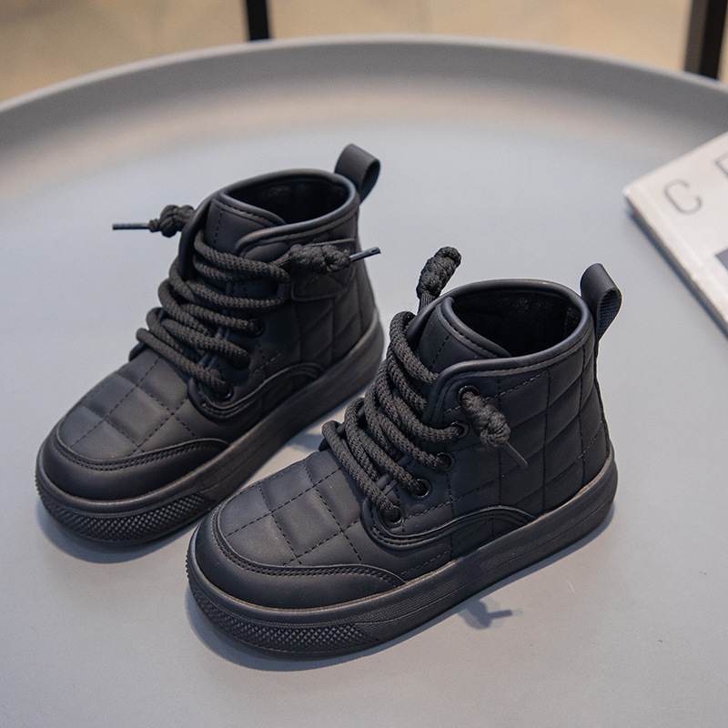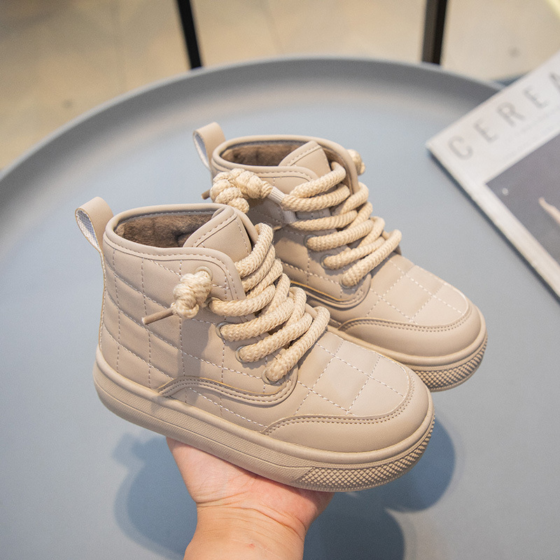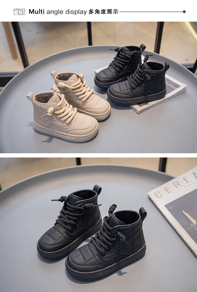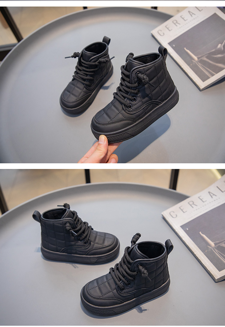 어린이 부츠 가을, 겨울 새로운 패션 캐주얼 두꺼운 밑창 소년 격자 무늬 싱글 부츠 아기 소녀 따뜻한 면화 부츠