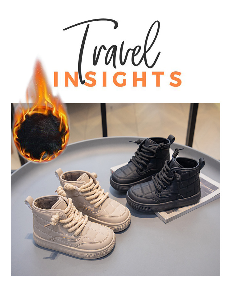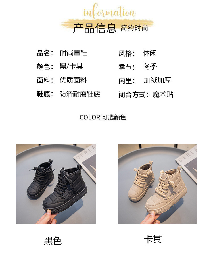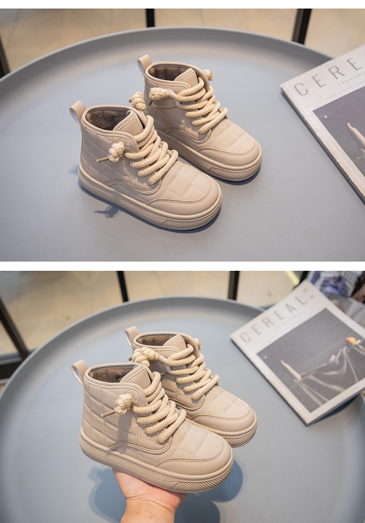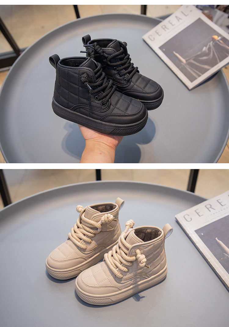 어린이 부츠 가을, 겨울 새로운 패션 캐주얼 두꺼운 밑창 소년 격자 무늬 싱글 부츠 아기 소녀 따뜻한 면화 부츠