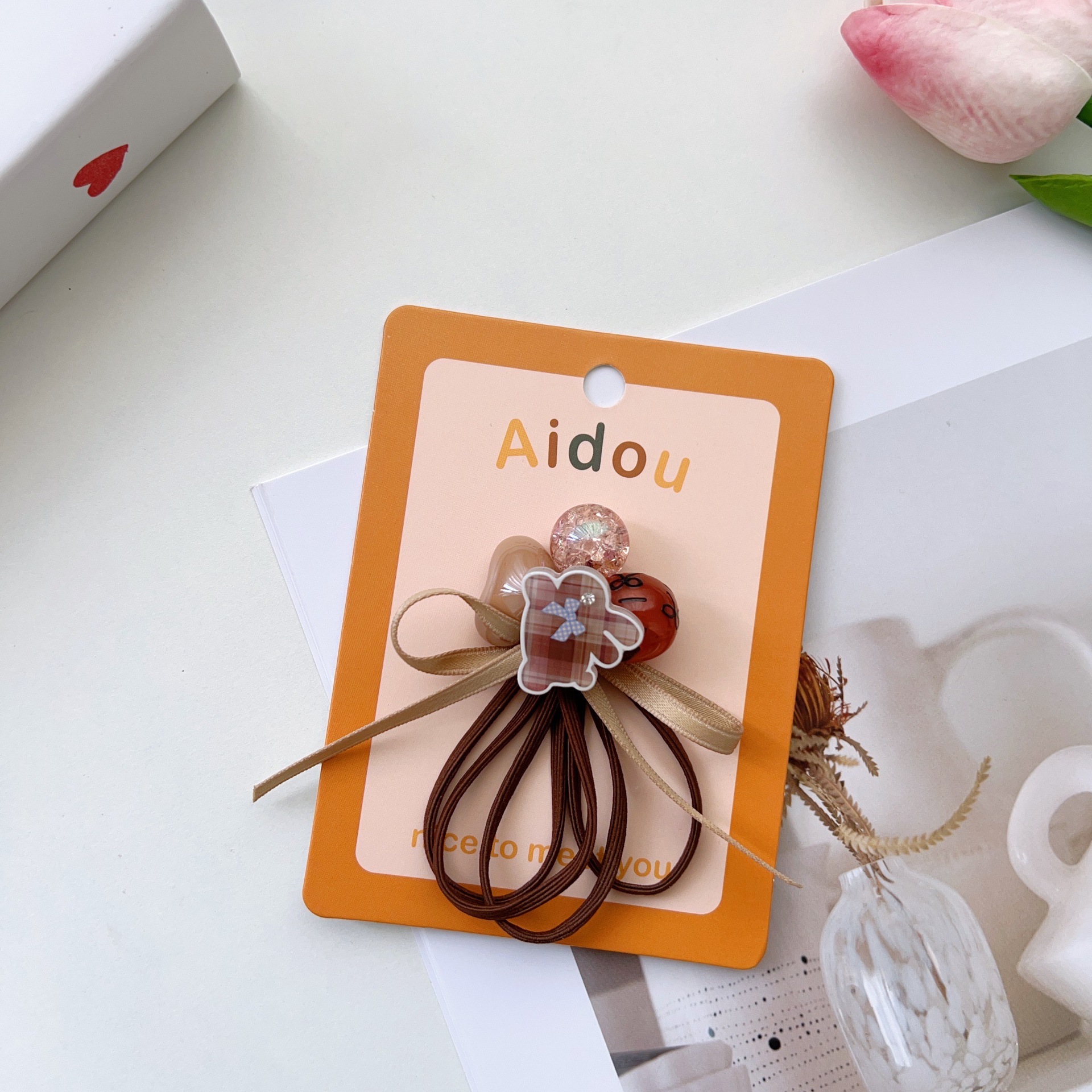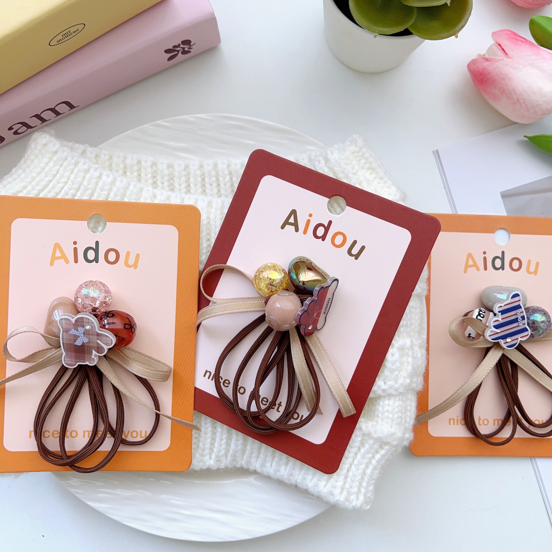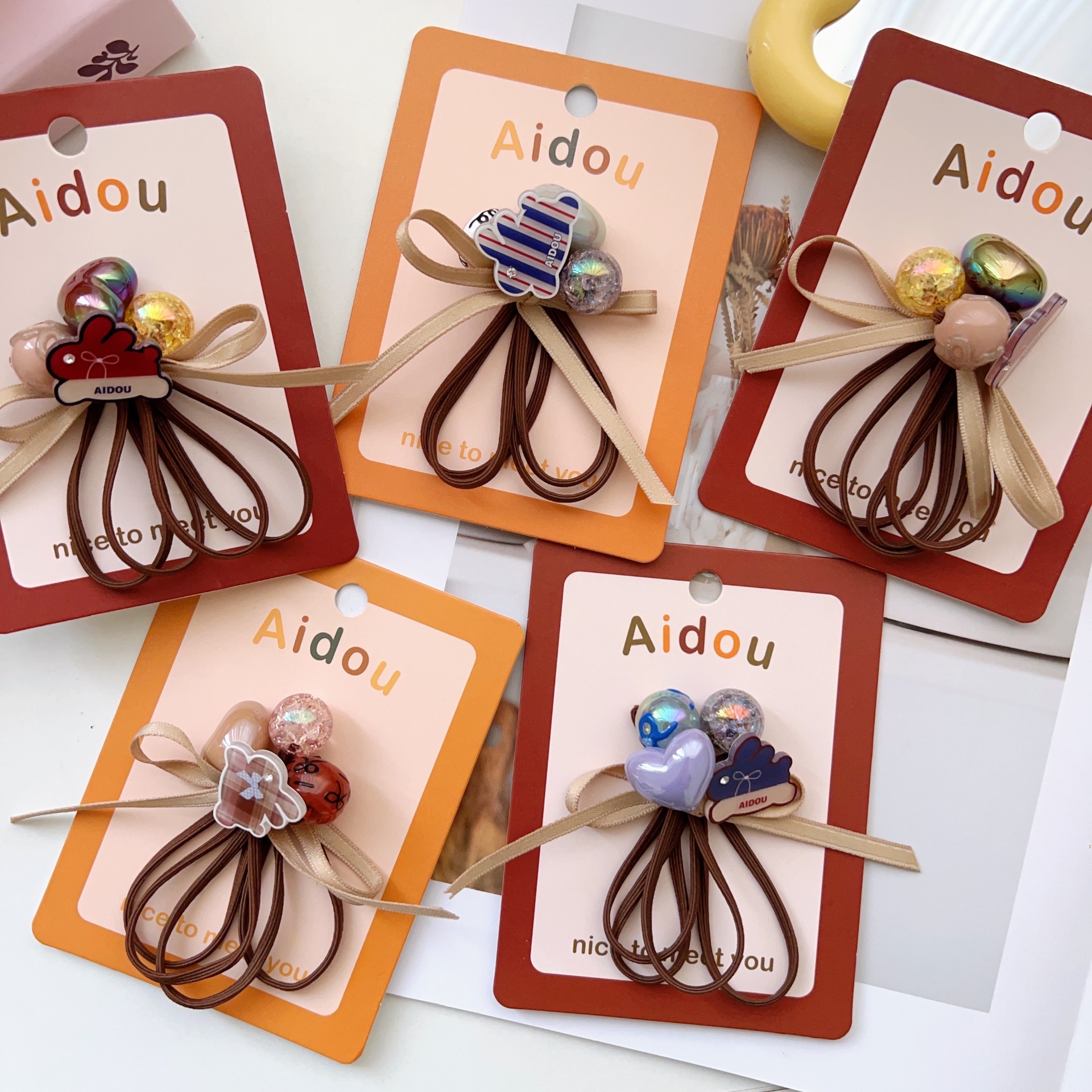 다크 브라운 만화 토끼 어린이 헤어 밴드 꽃 번들 여자 헤어 로프 헤어 고무 밴드 헤어 액세서리 세트