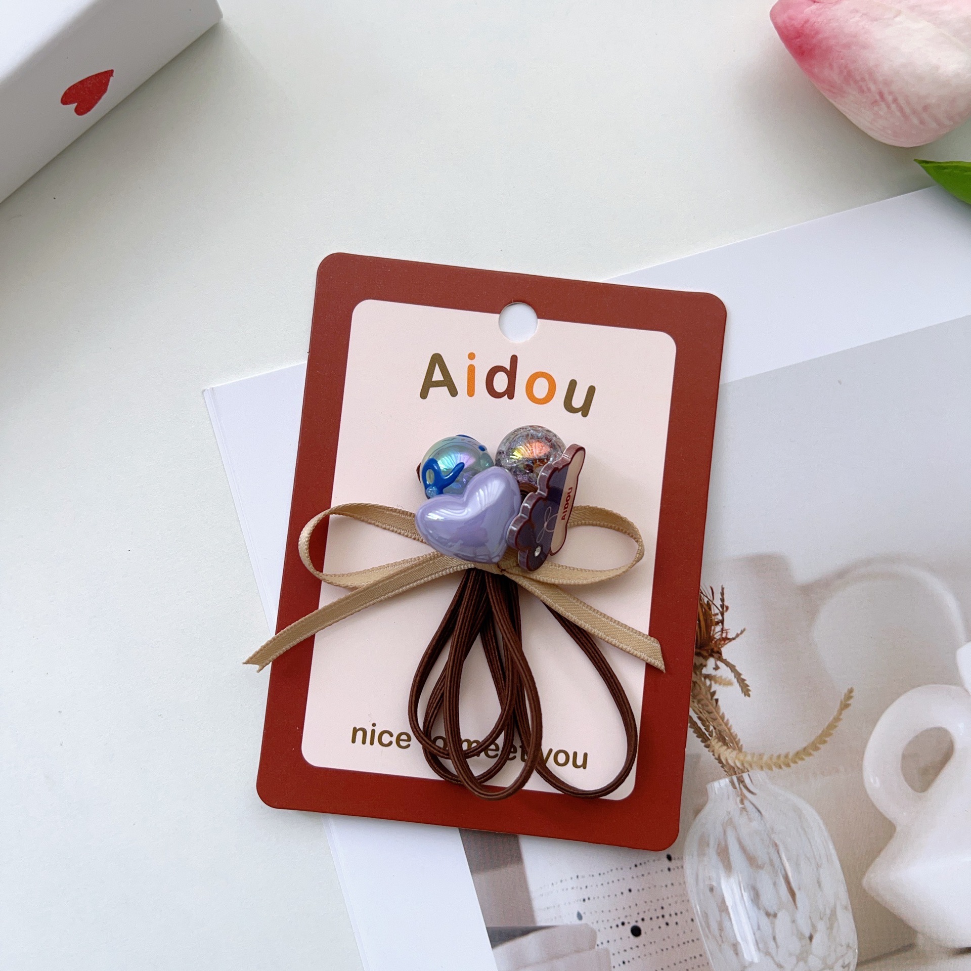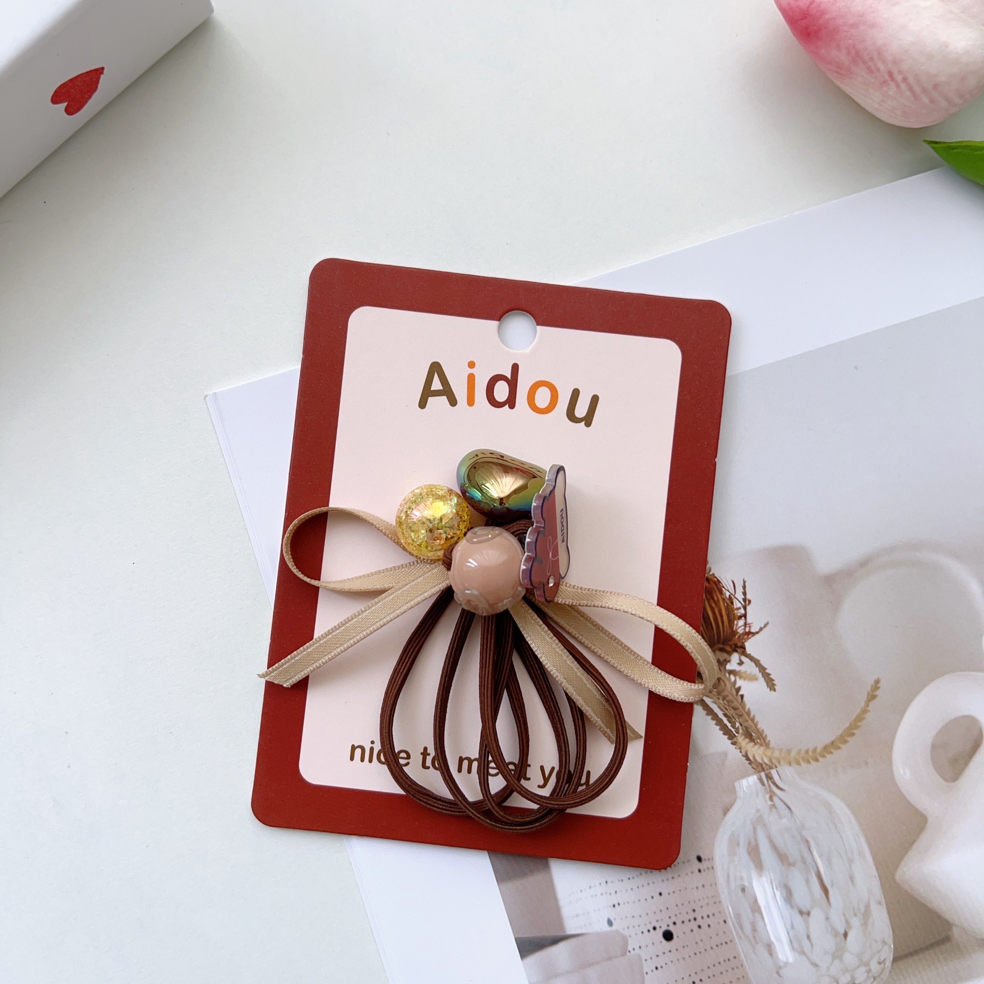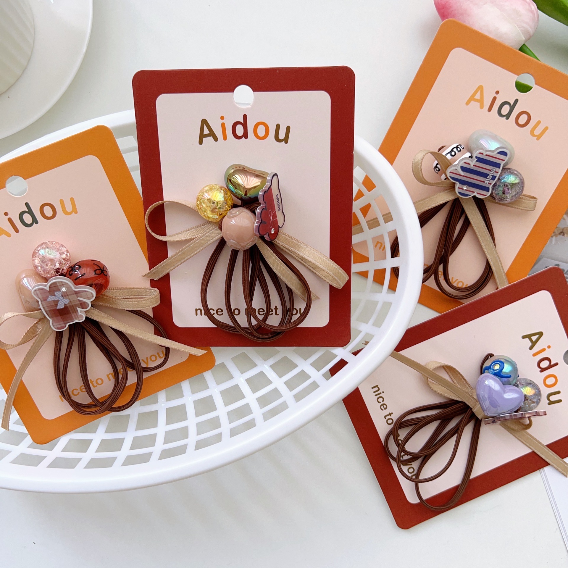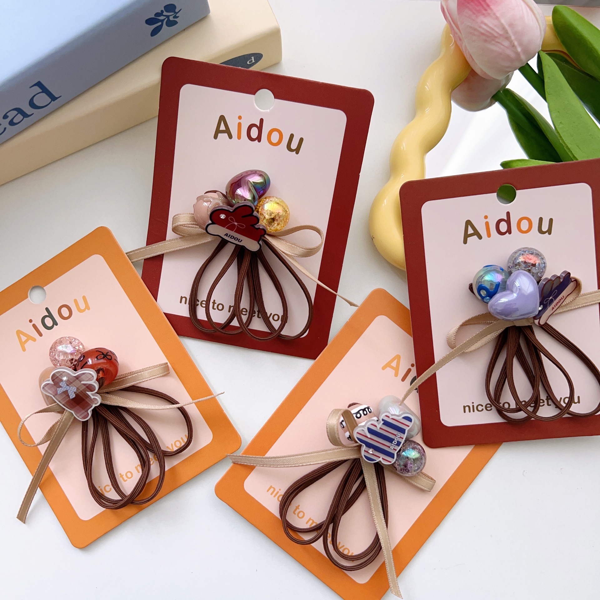 다크 브라운 만화 토끼 어린이 헤어 밴드 꽃 번들 여자 헤어 로프 헤어 고무 밴드 헤어 액세서리 세트