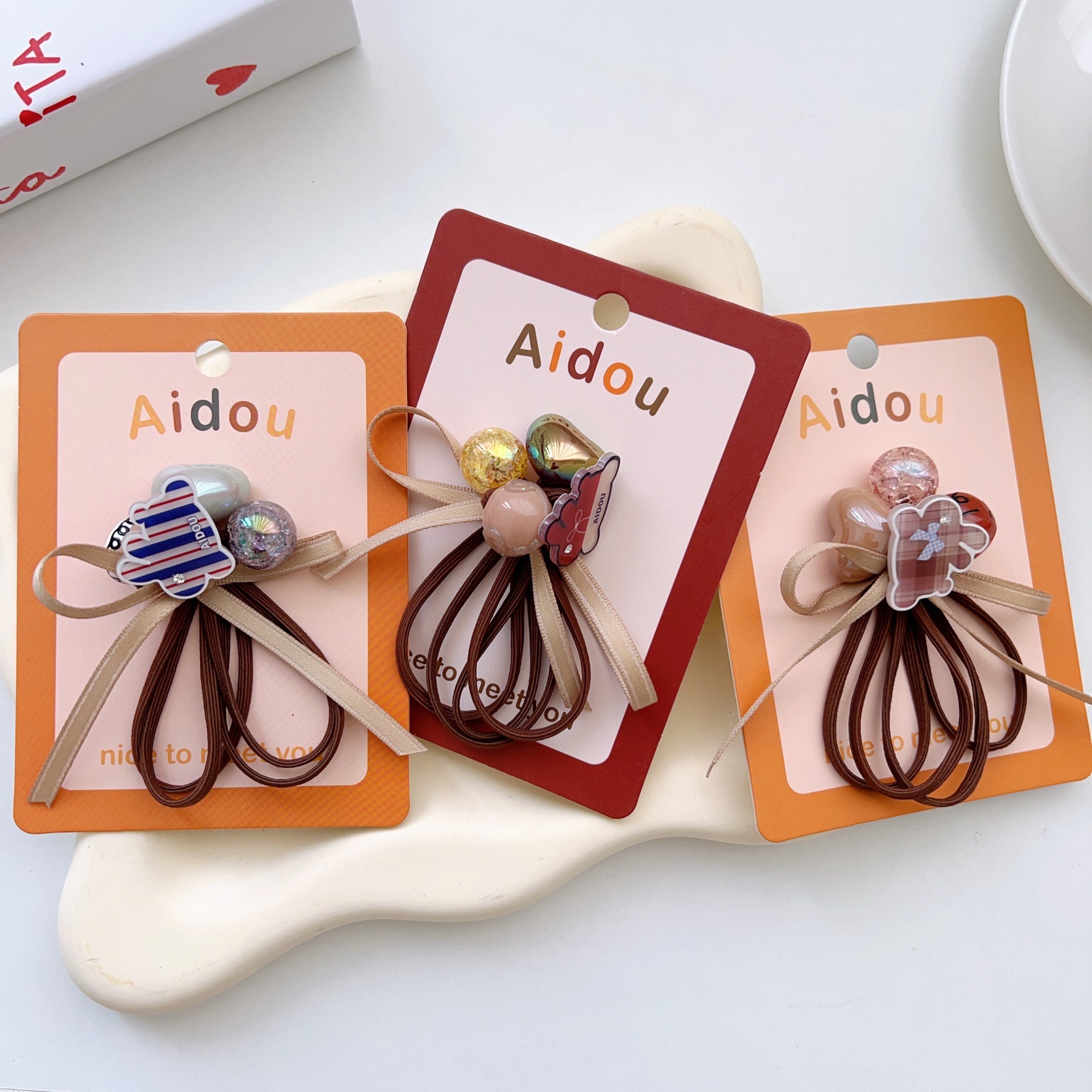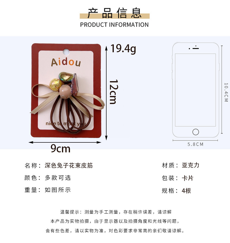 다크 브라운 만화 토끼 어린이 헤어 밴드 꽃 번들 여자 헤어 로프 헤어 고무 밴드 헤어 액세서리 세트스토어 가기