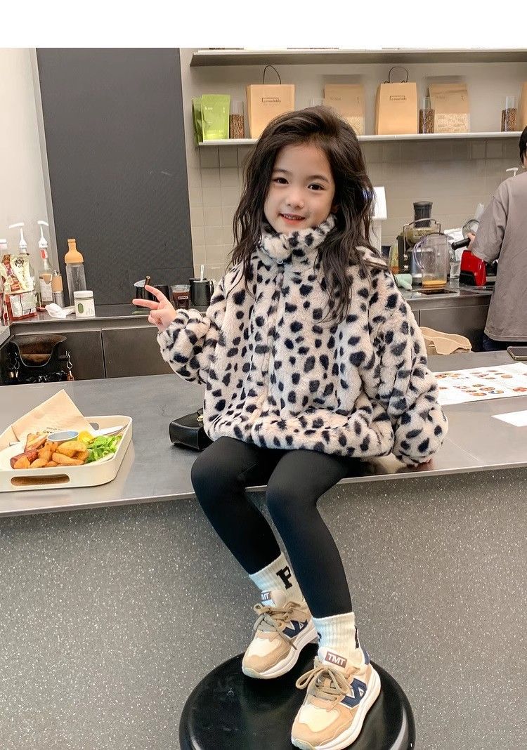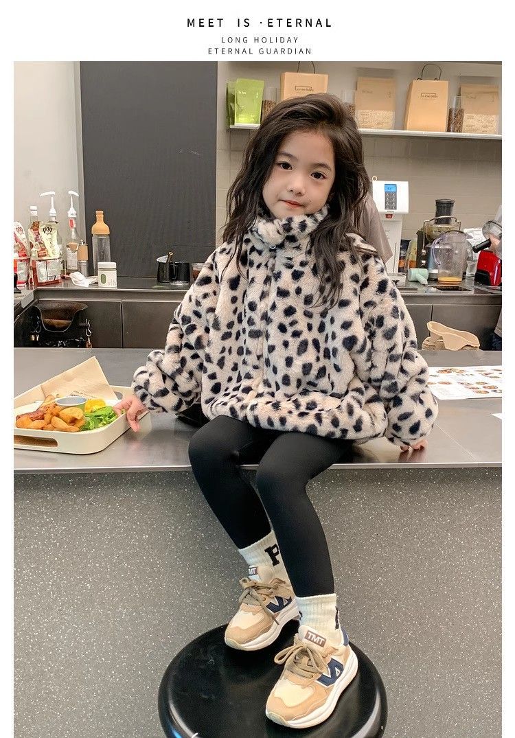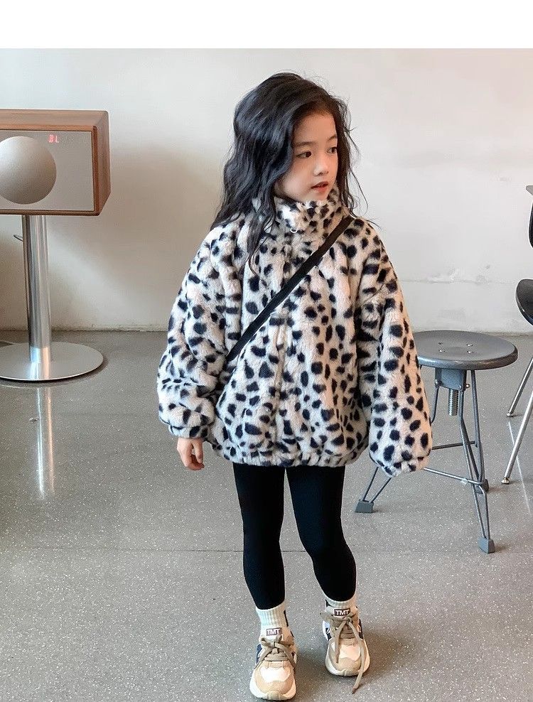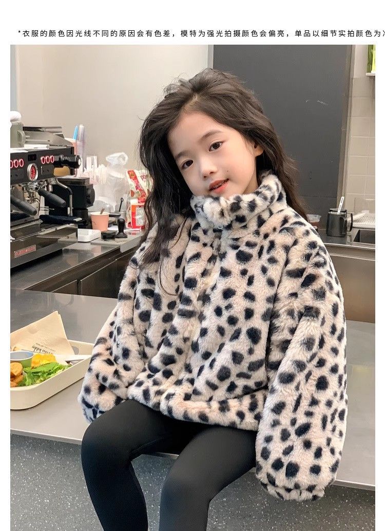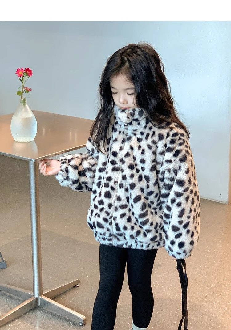 2025 아동용 한국 스타일 레오파드 패턴 자카드 모조 토끼털 가죽 코트 가을 겨울용 레오파드 프린트 남아 여아용스토어 가기