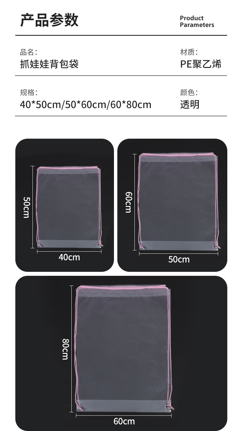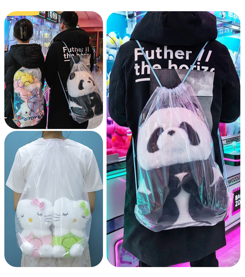 선물 포장 가방 PE 비닐 봉투 인형 잡아 인형 저장 서랍 번들 포켓 클램프 인형 기계 투명 배낭 가방스토어 가기