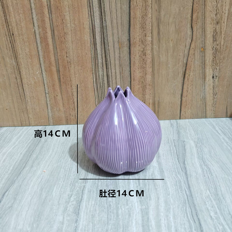 도매 세라믹 꽃병 마늘 꽃병 홈 장식품 보라색 흰색 데스크탑 장식품 꽃 공예 꽃 병스토어 가기