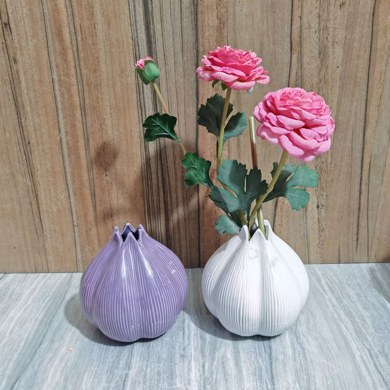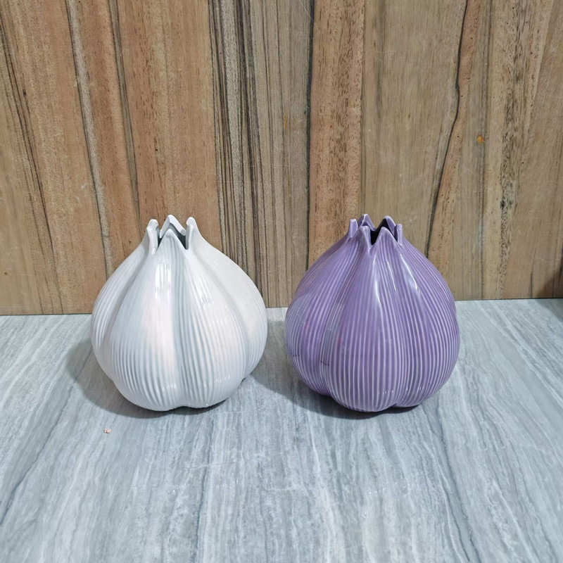 도매 세라믹 꽃병 마늘 꽃병 홈 장식품 보라색 흰색 데스크탑 장식품 꽃 공예 꽃 병