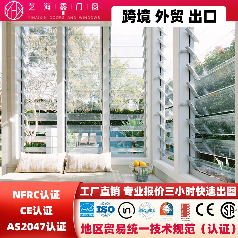 대외 무역 수출 알루미늄 셔터 흰색 셔터 유리 셔터 문 방풍 방수 수동 개방 환기