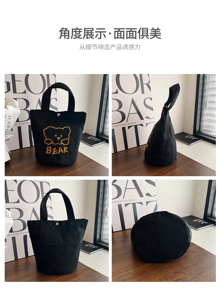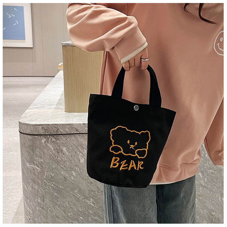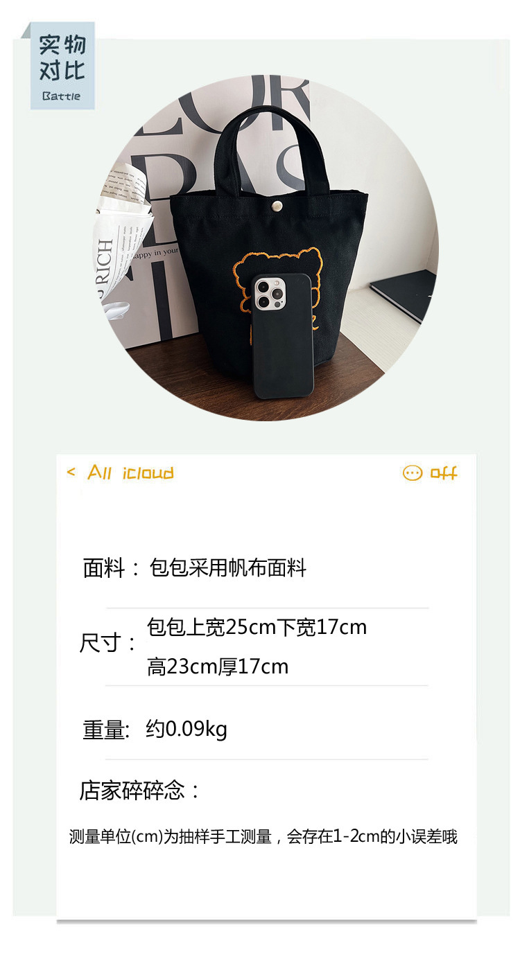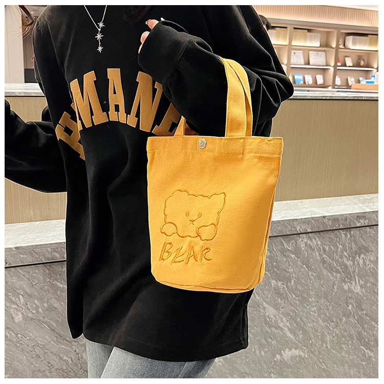 고급 질감 인기있는 자수 캔버스 가방 여성의 새로운 2023 봄 사이버 연예인 핸드백 여성용 Ins 버킷 백스토어 가기