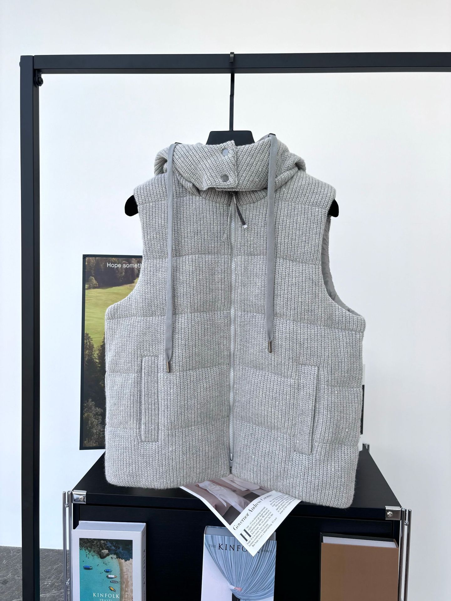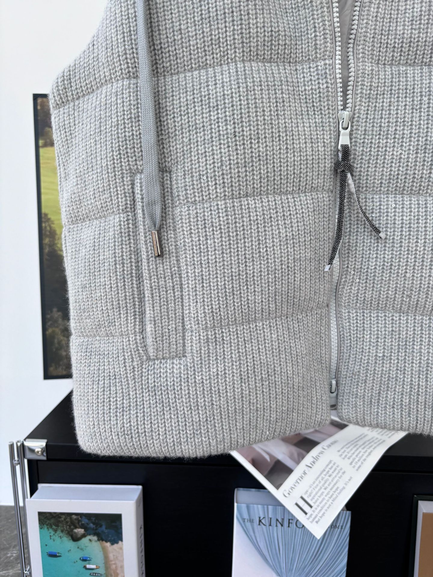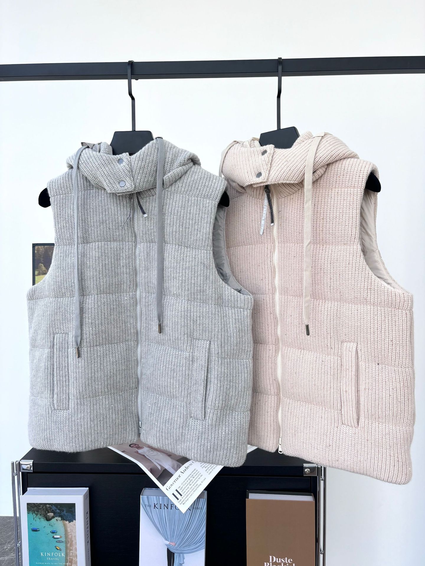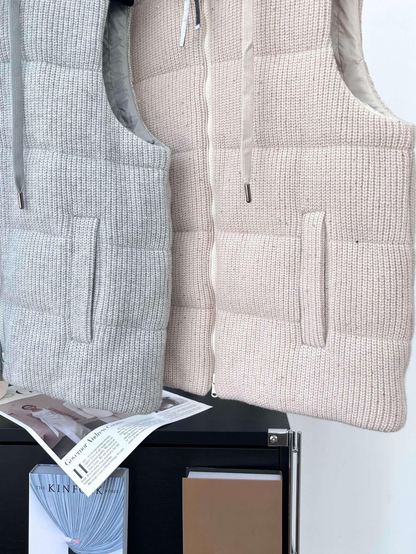 24 가을과 겨울 여성의 새로운 BC 수직 칼라 후드형 지퍼 두꺼운 캐시미어 니트 조끼 스태킹 조끼