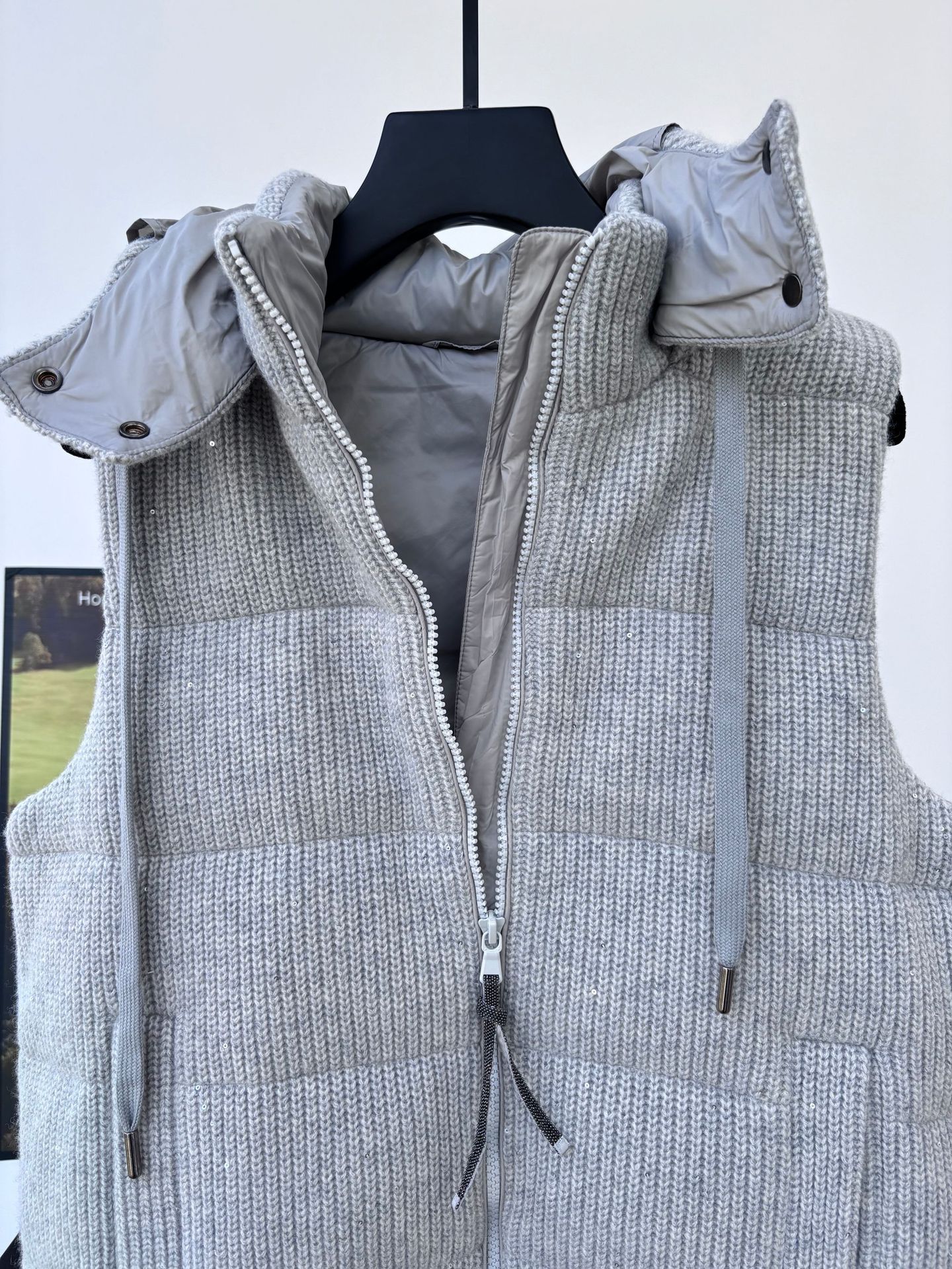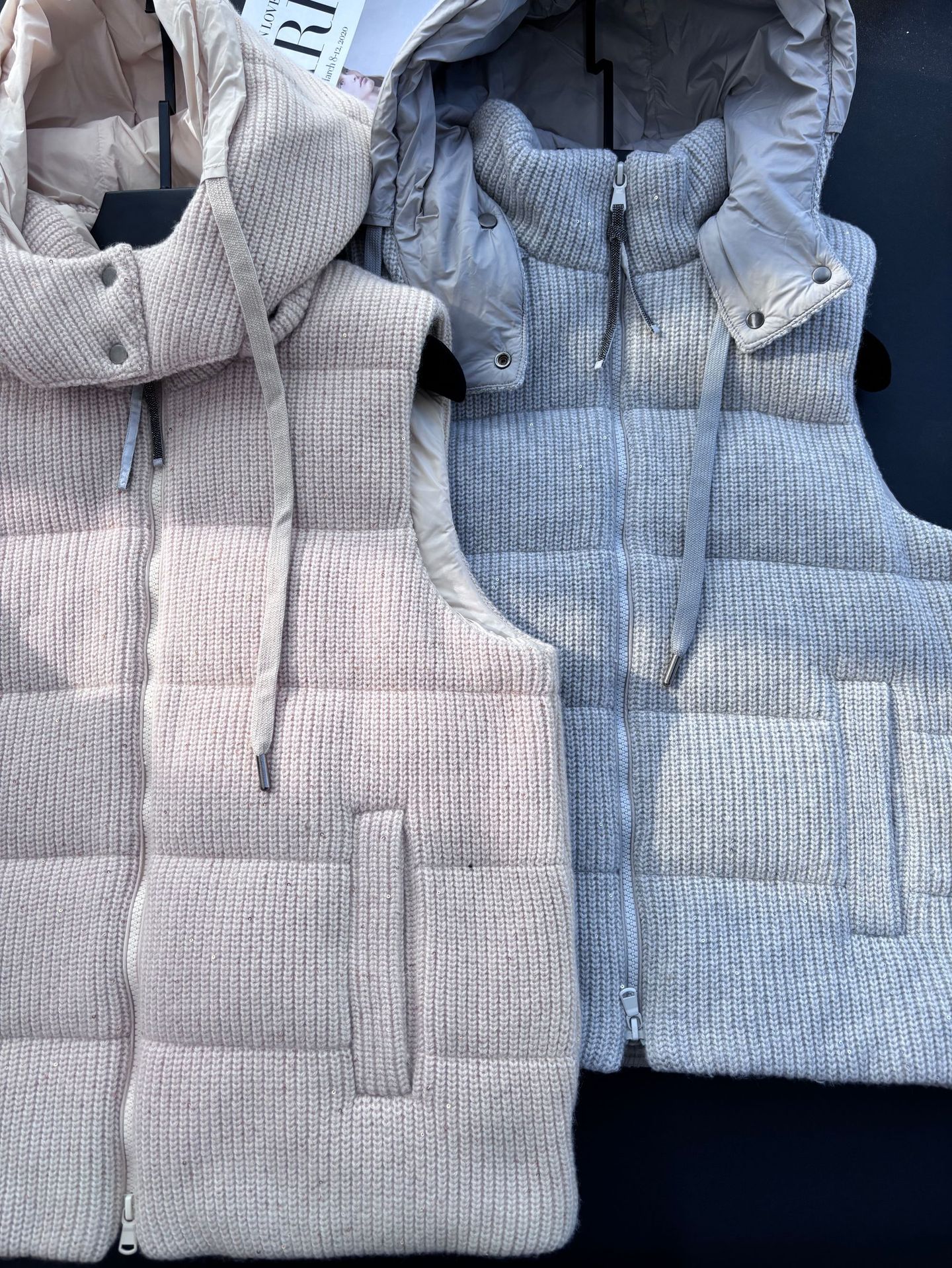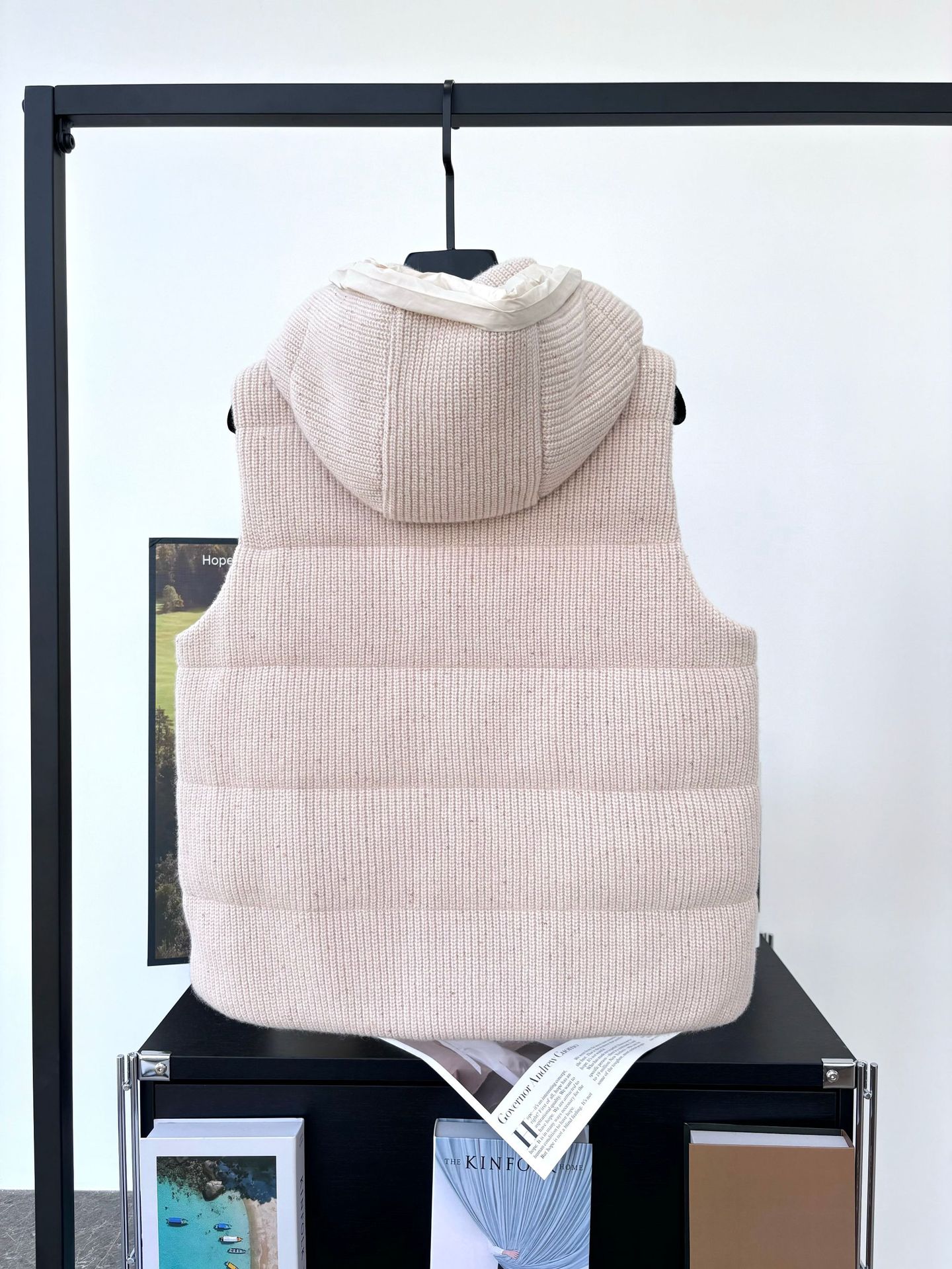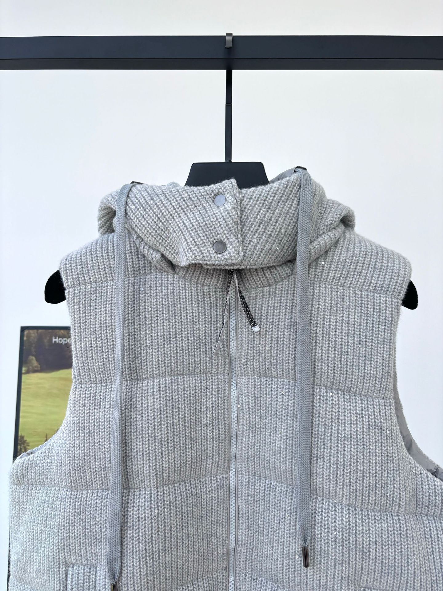 24 가을과 겨울 여성의 새로운 BC 수직 칼라 후드형 지퍼 두꺼운 캐시미어 니트 조끼 스태킹 조끼