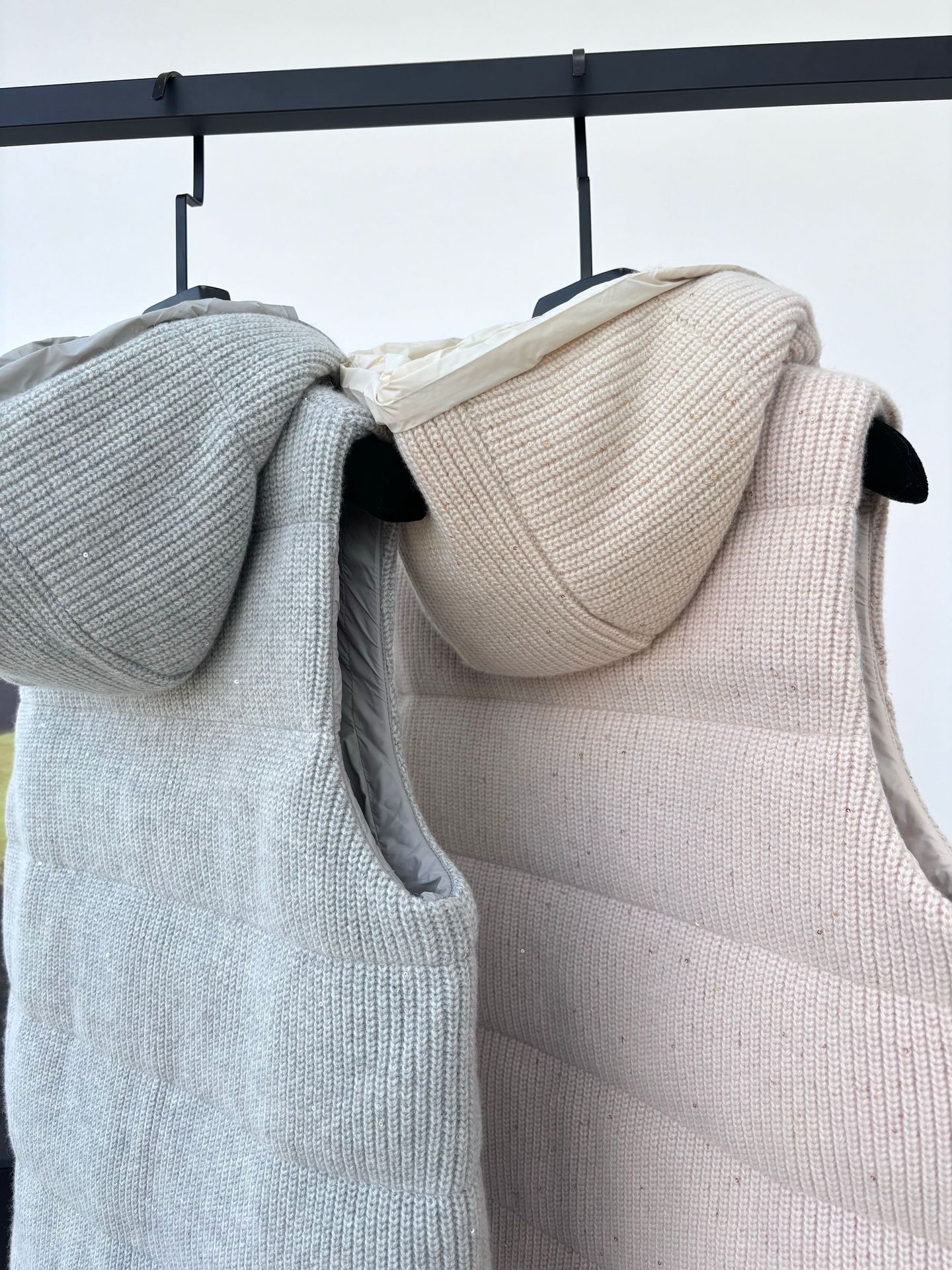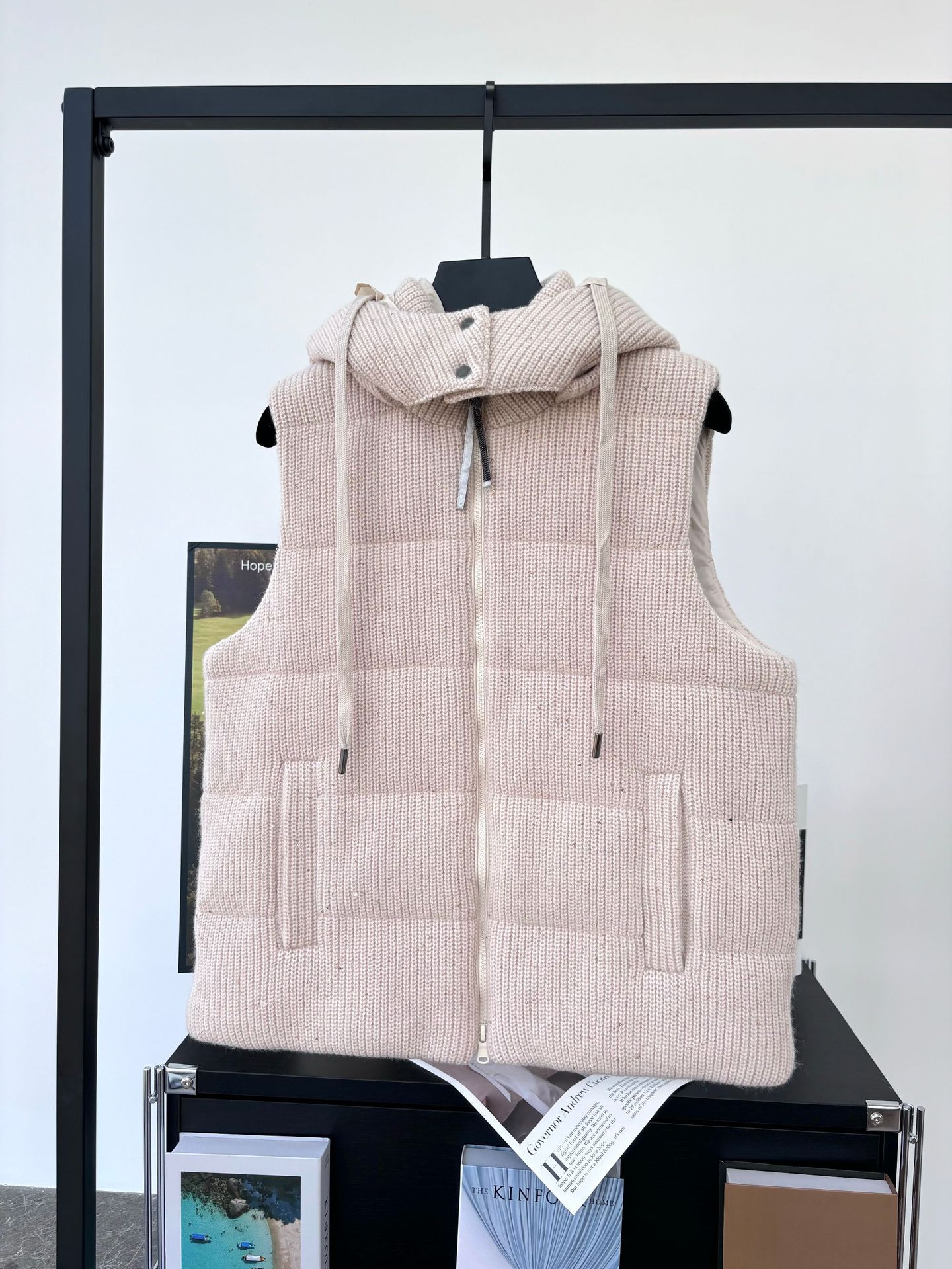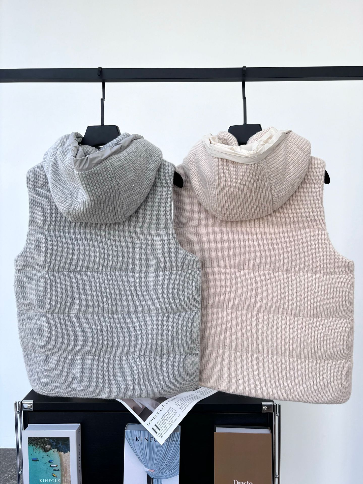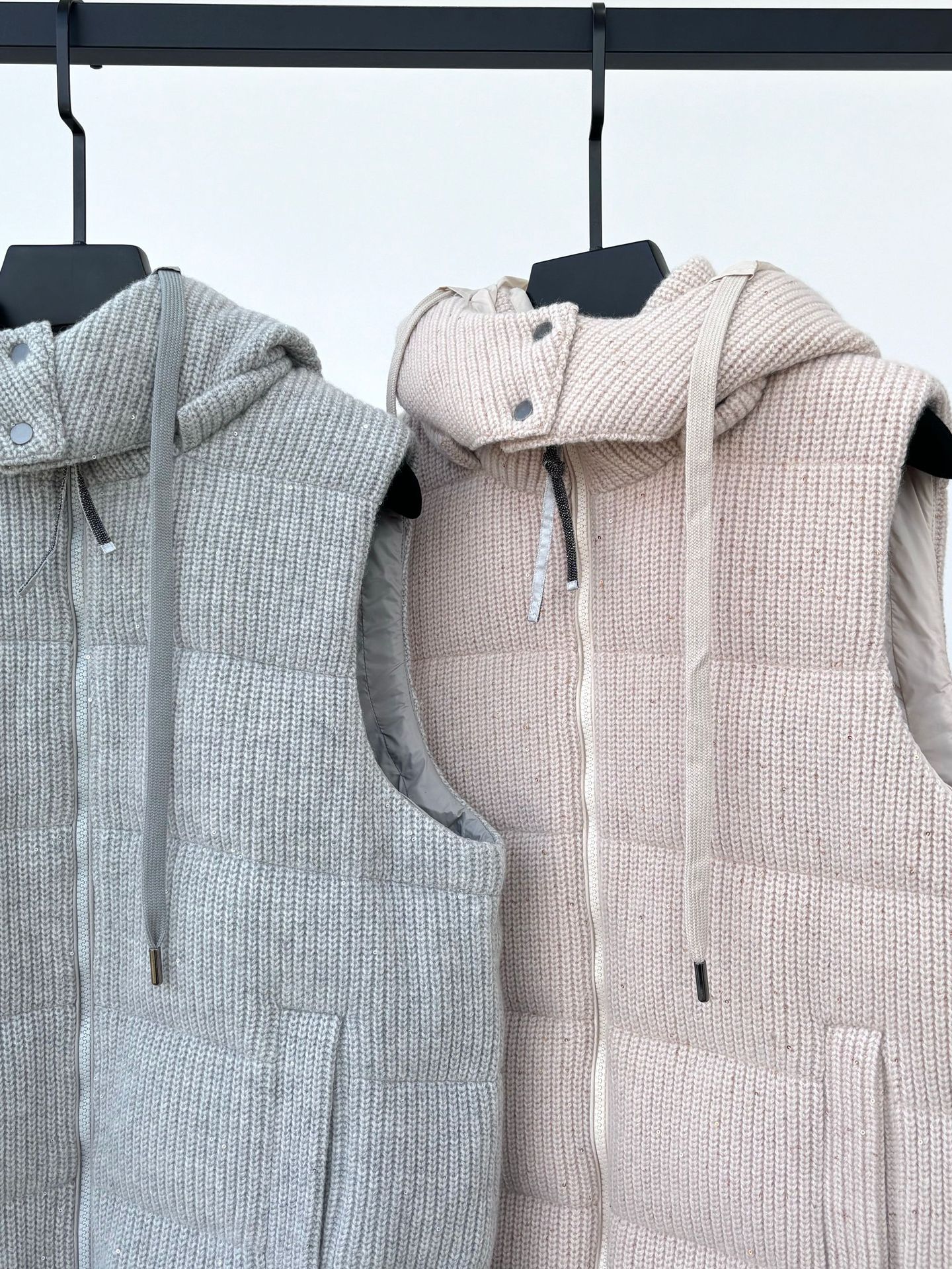 24 가을과 겨울 여성의 새로운 BC 수직 칼라 후드형 지퍼 두꺼운 캐시미어 니트 조끼 스태킹 조끼스토어 가기