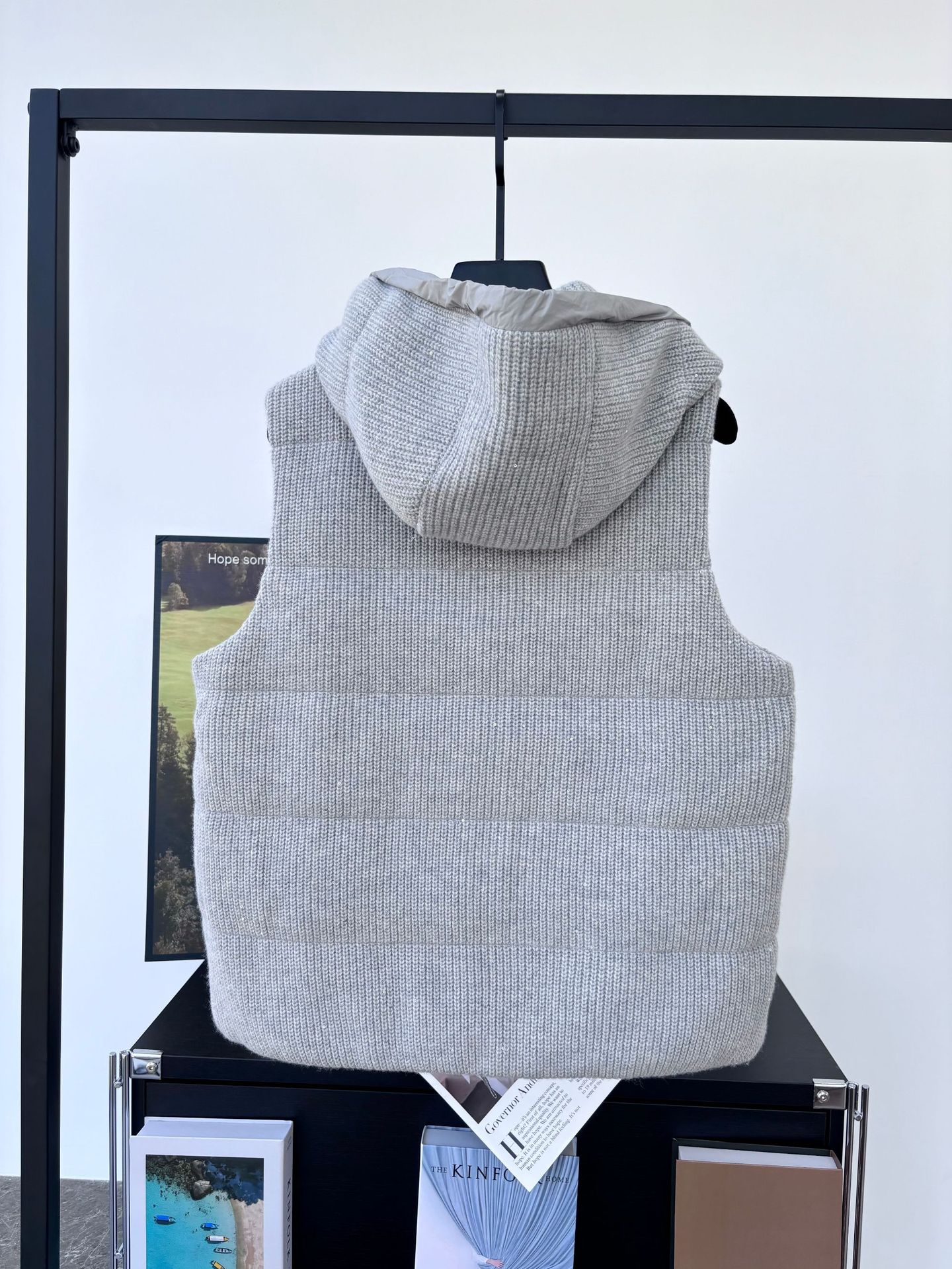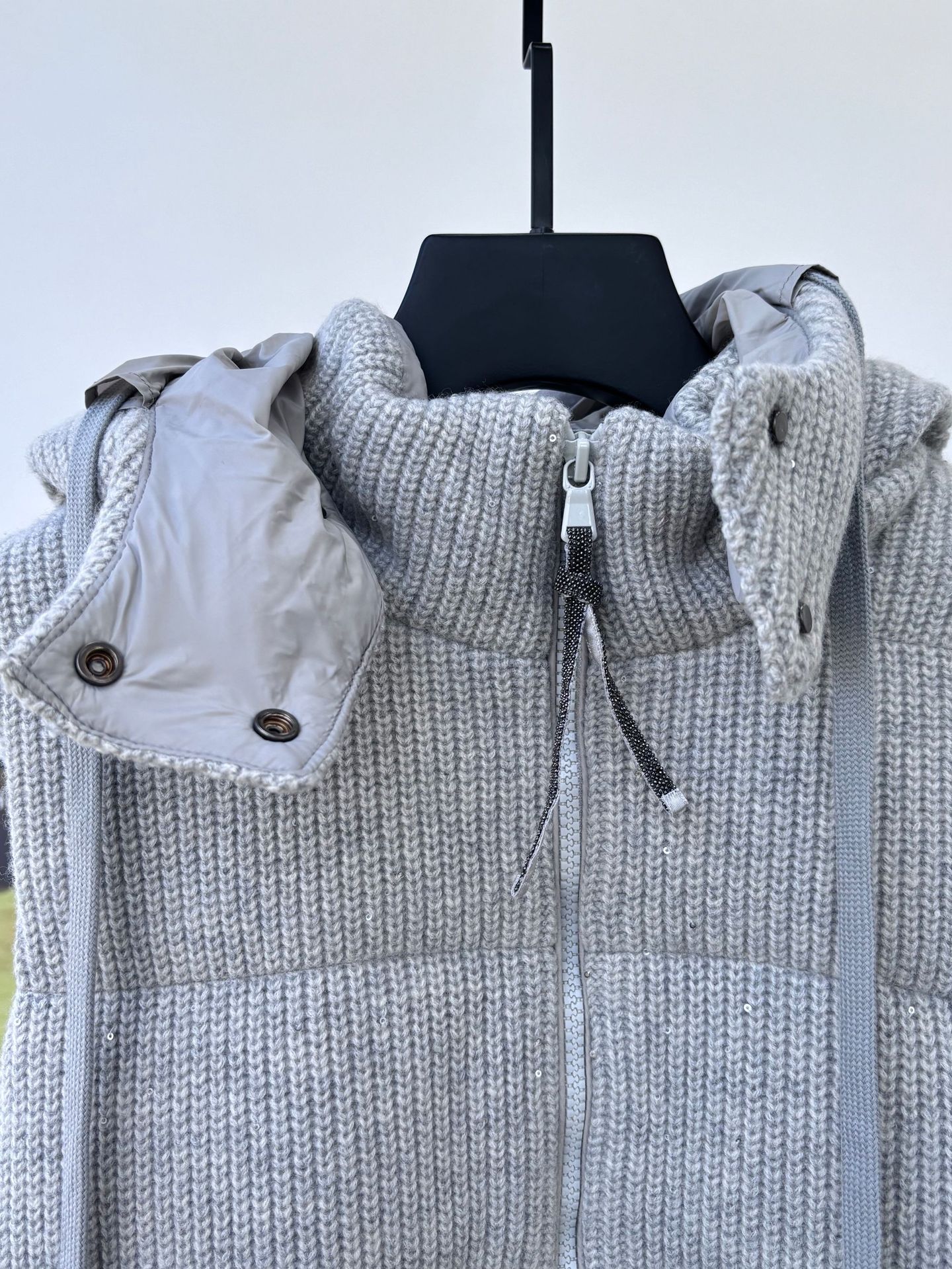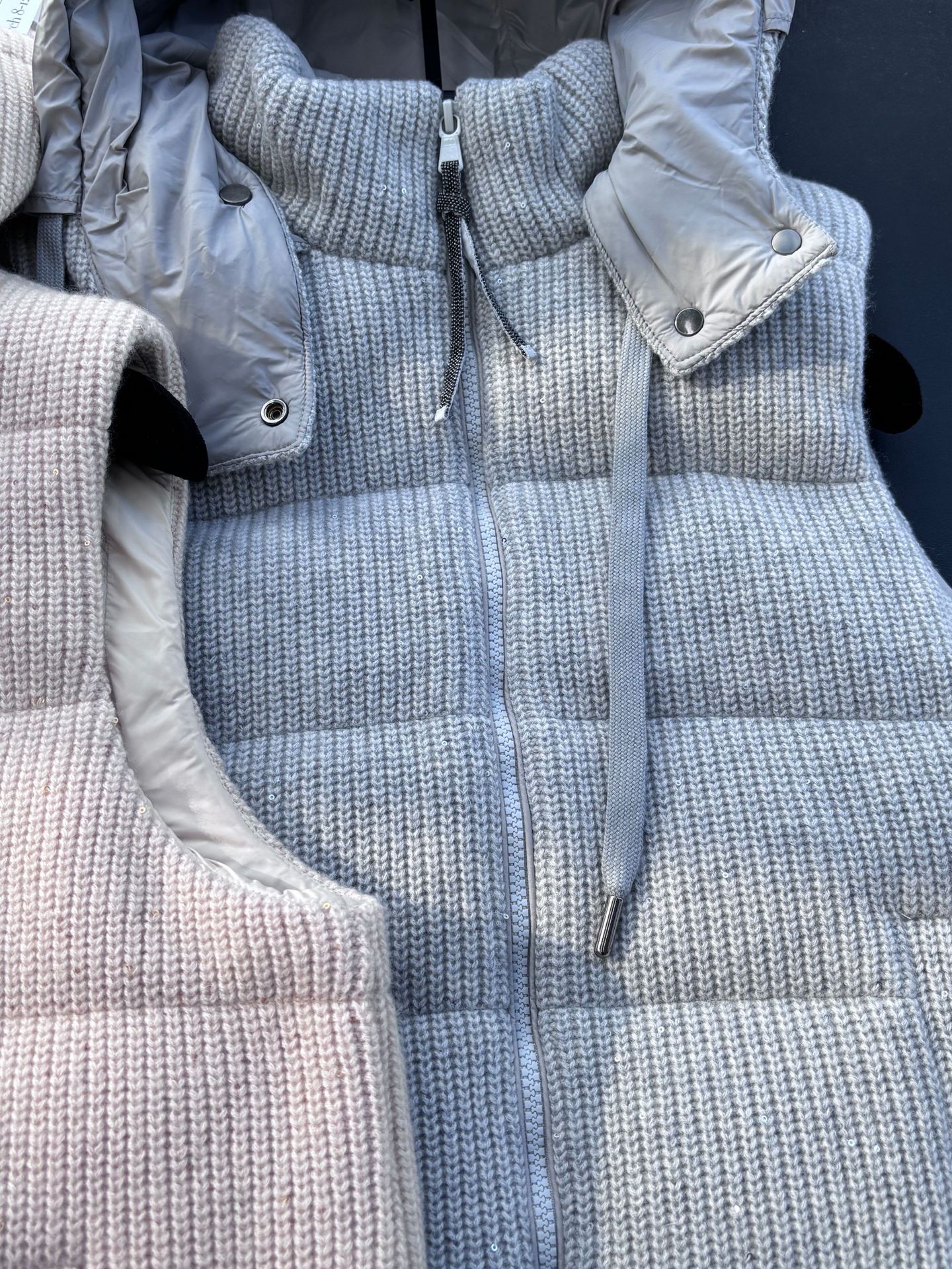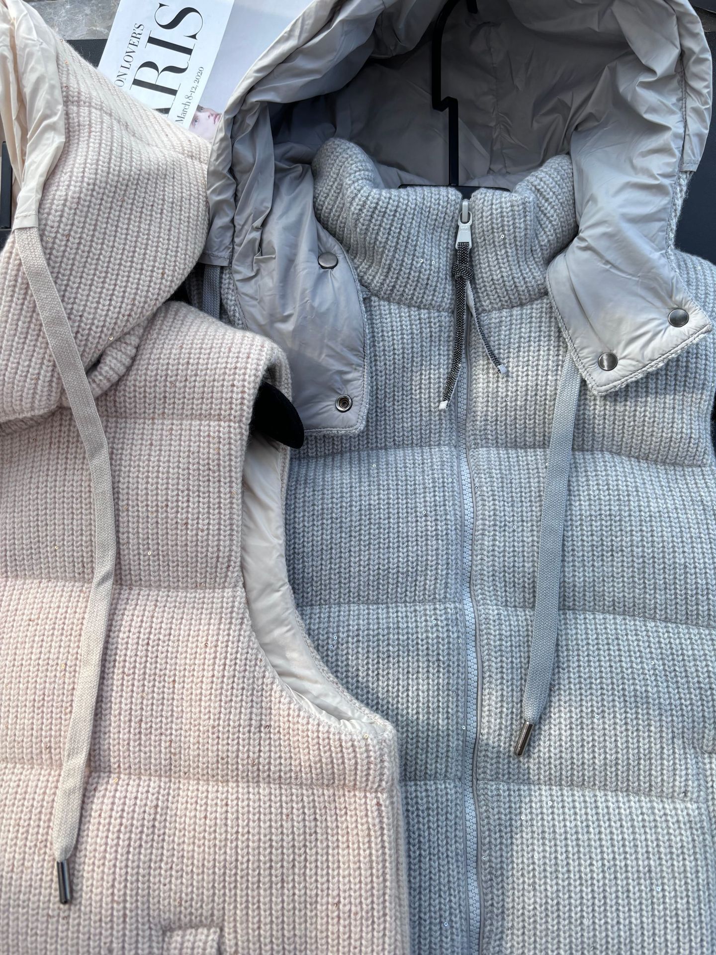 24 가을과 겨울 여성의 새로운 BC 수직 칼라 후드형 지퍼 두꺼운 캐시미어 니트 조끼 스태킹 조끼스토어 가기