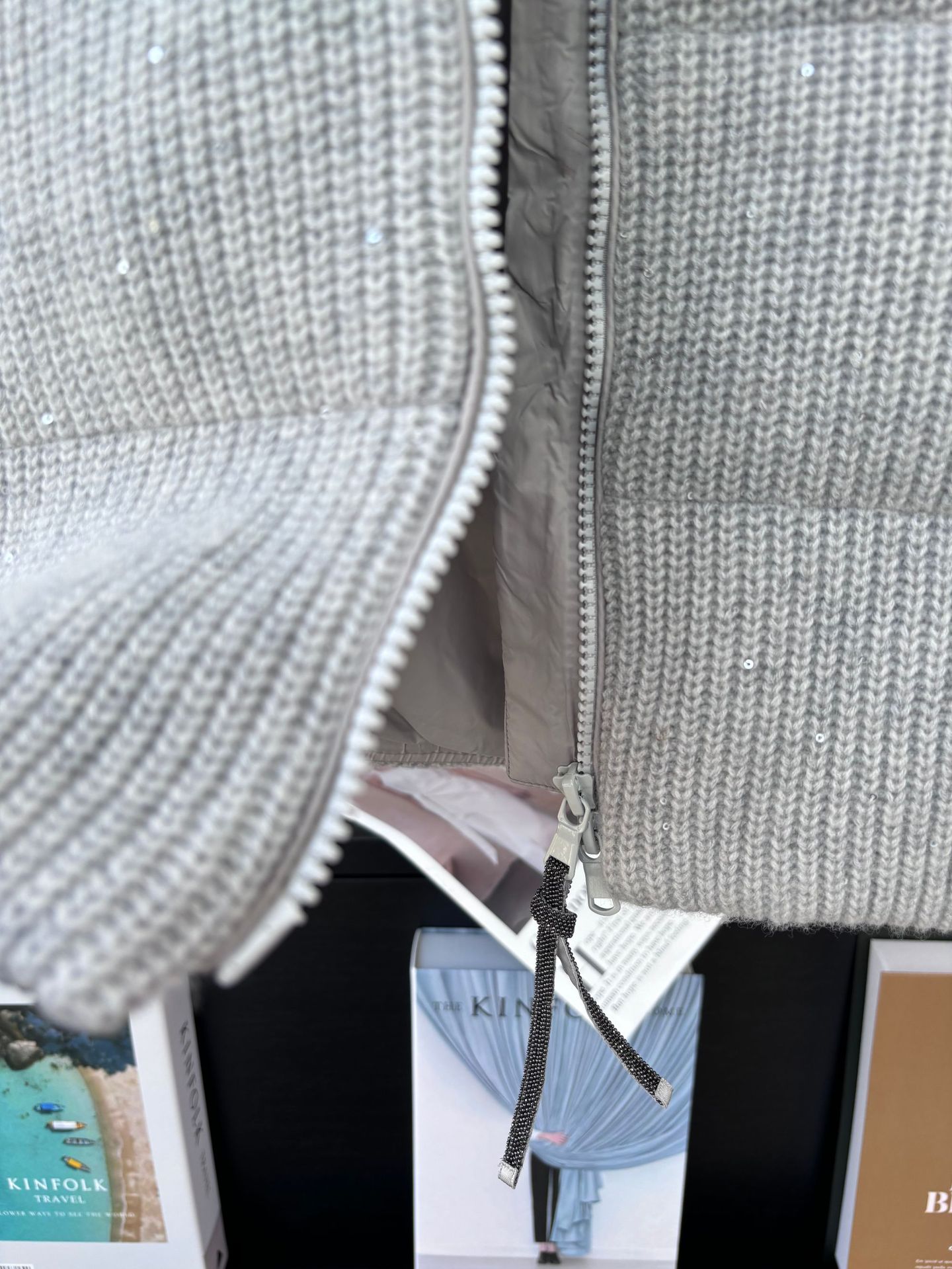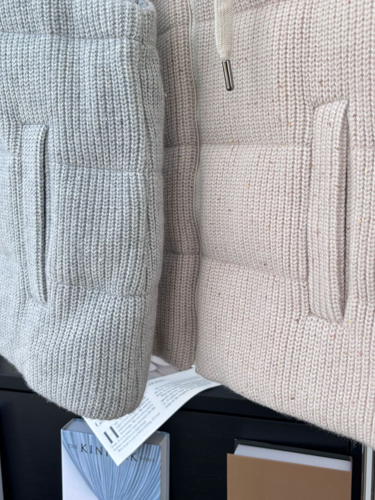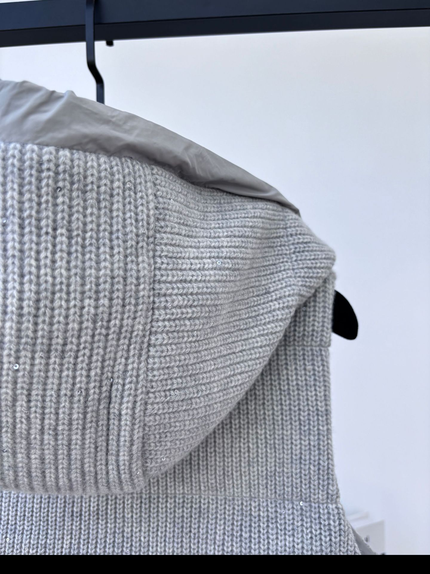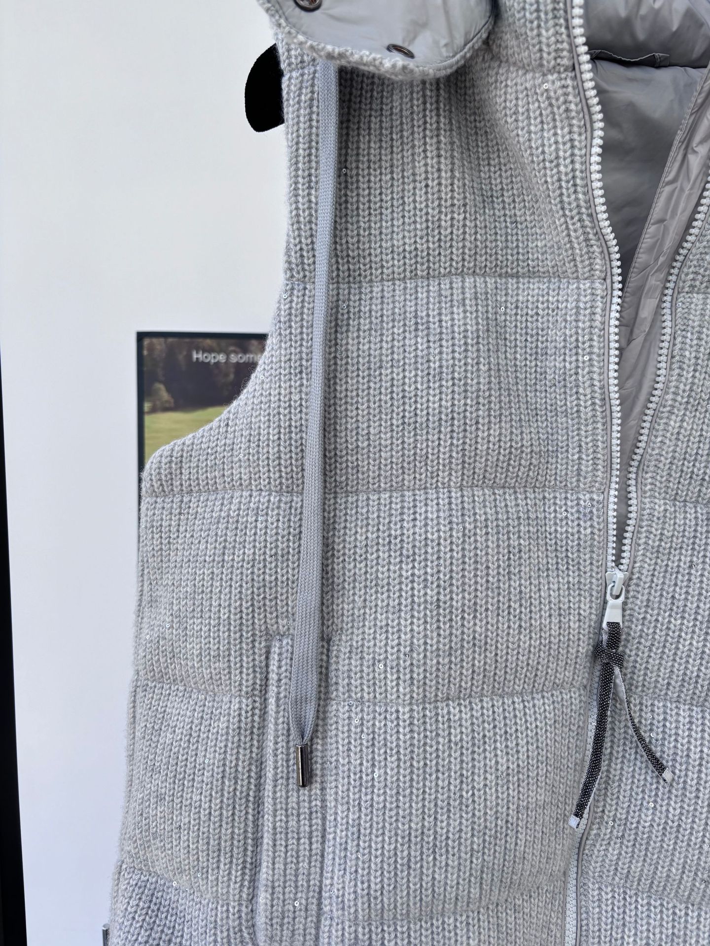 24 가을과 겨울 여성의 새로운 BC 수직 칼라 후드형 지퍼 두꺼운 캐시미어 니트 조끼 스태킹 조끼스토어 가기