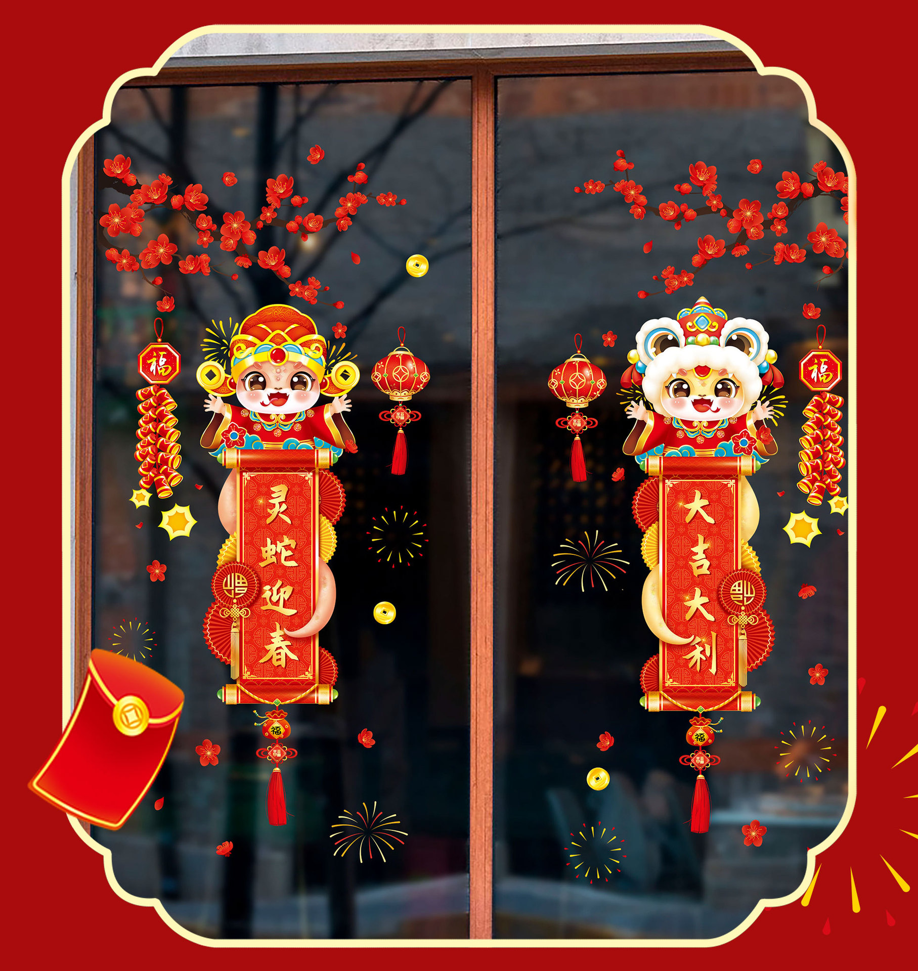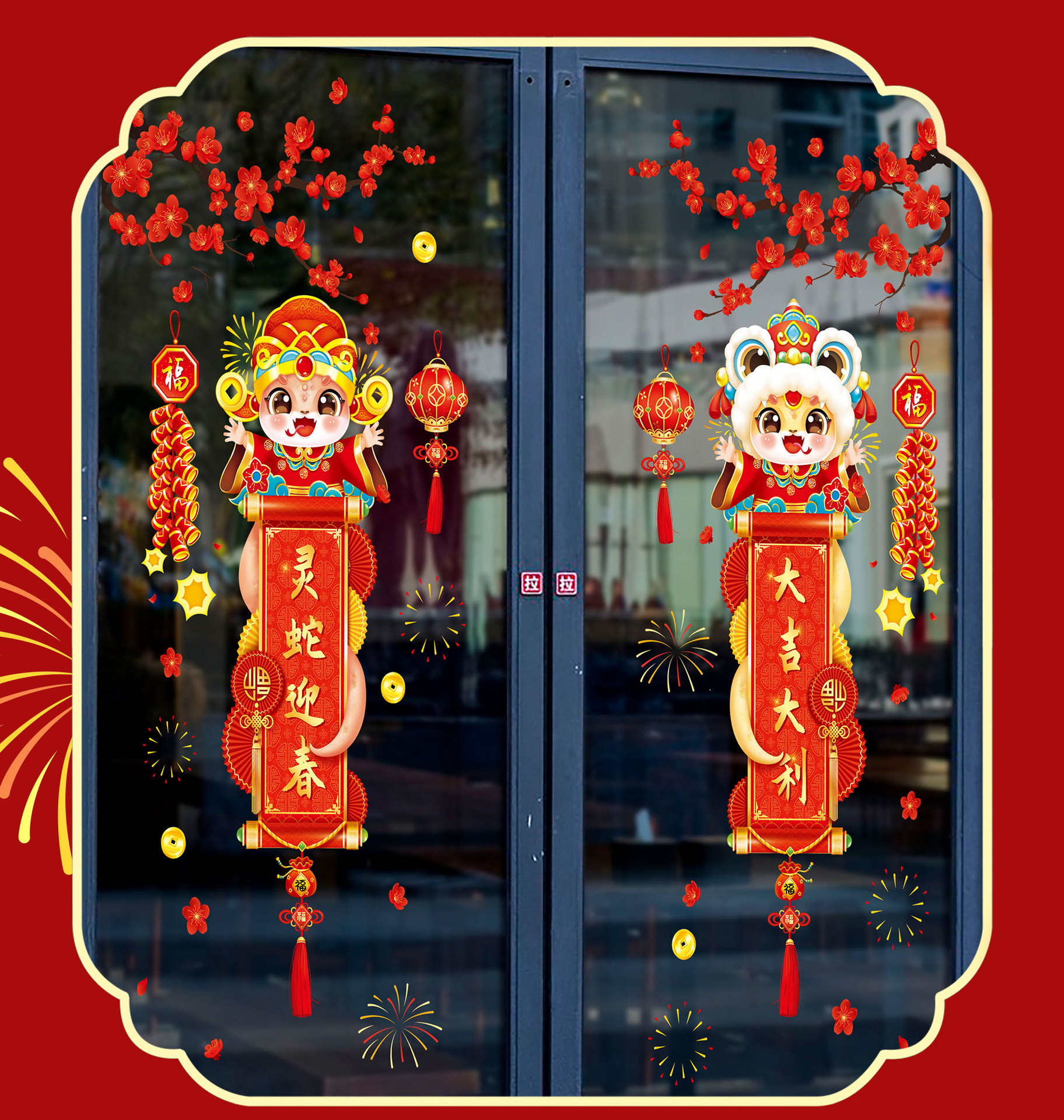 Yiyao SKJD9459DS 뱀 새해 정신 뱀 잉춘 창 유리 스티커 발코니 유리 슬라이딩 도어 정전기 스티커스토어 가기