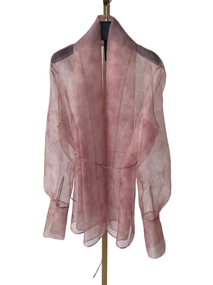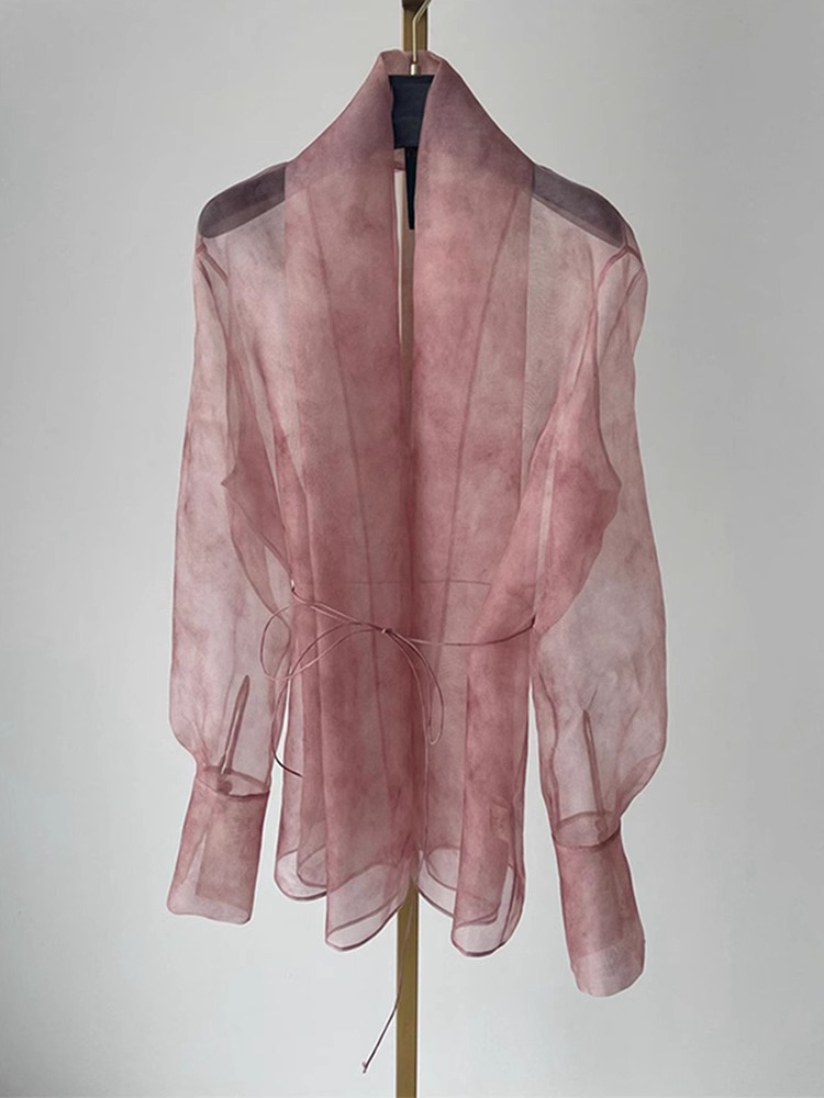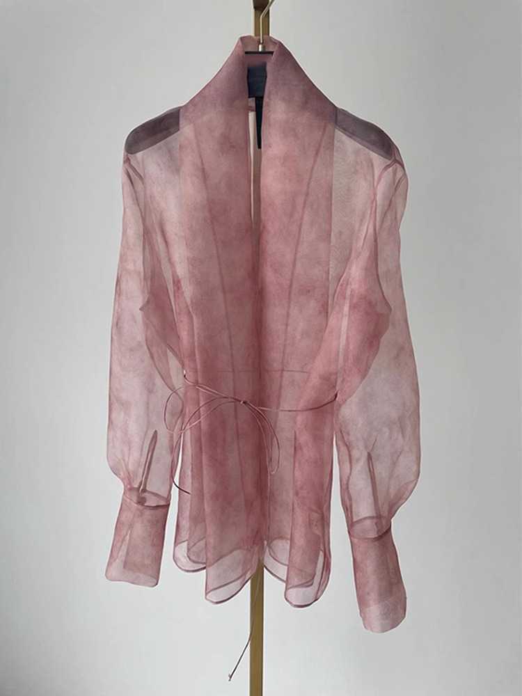 1442 봄 요정 긴 소매 최고 슈퍼 요정 달콤한 핑크 셔츠 착용 디자인 센스 틈새스토어 가기