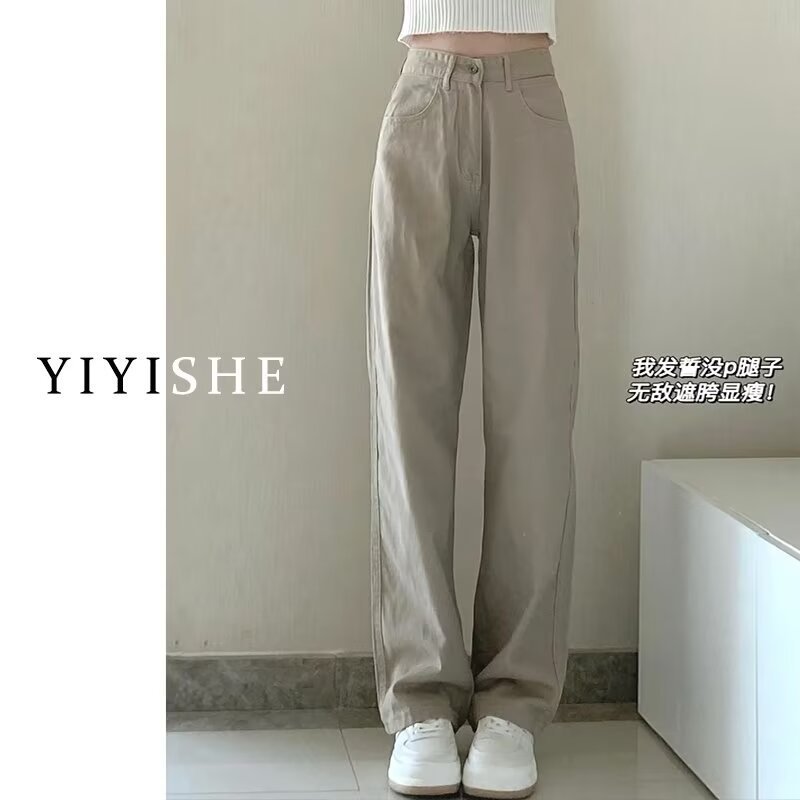 바지 넓은 다리 바지 플러스 사이즈 모든 경기 높은 허리 슬림 긴 스트레이트 청바지 여성 유행 레저 2024 봄과 가을 새로운스토어 가기