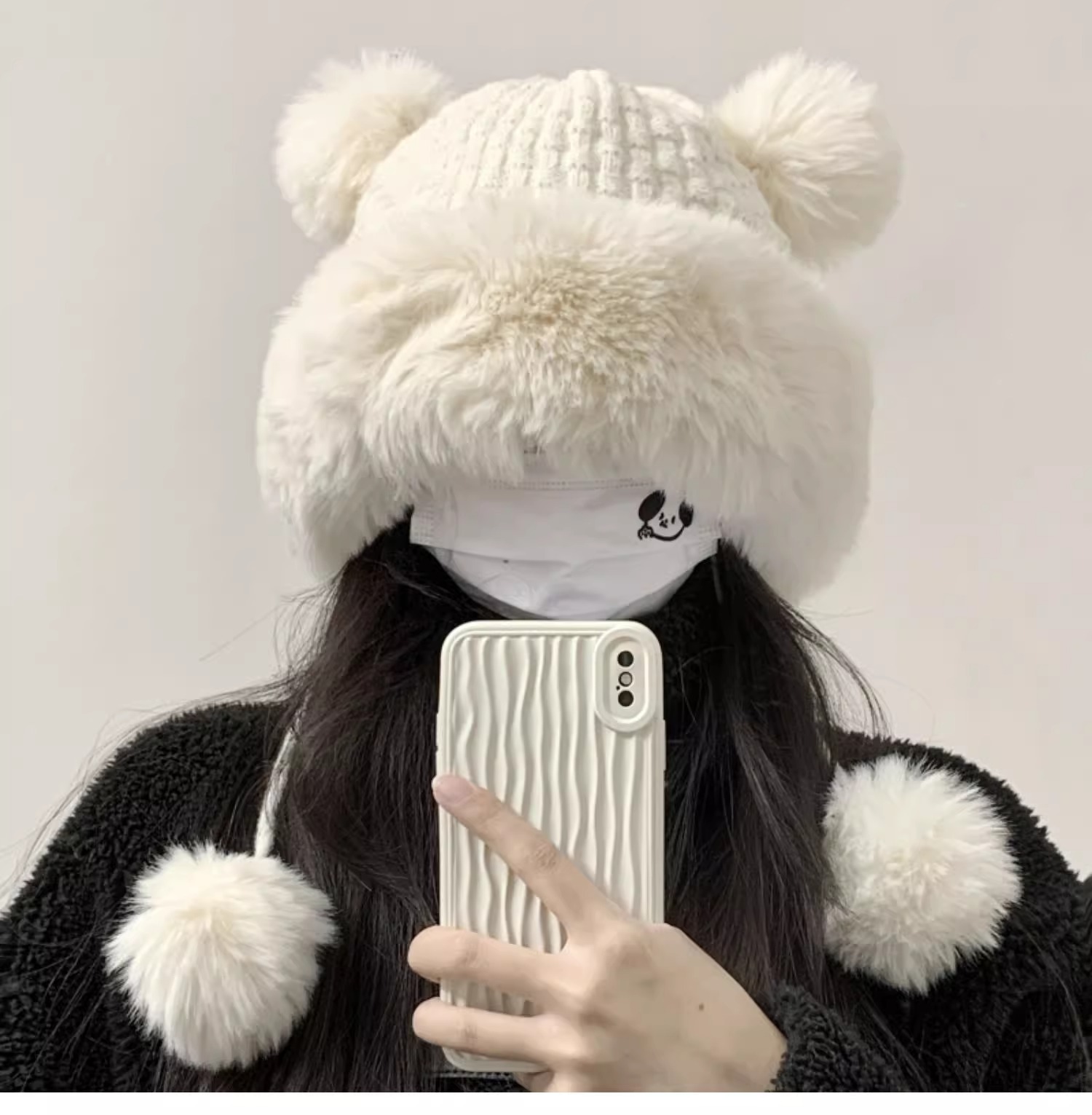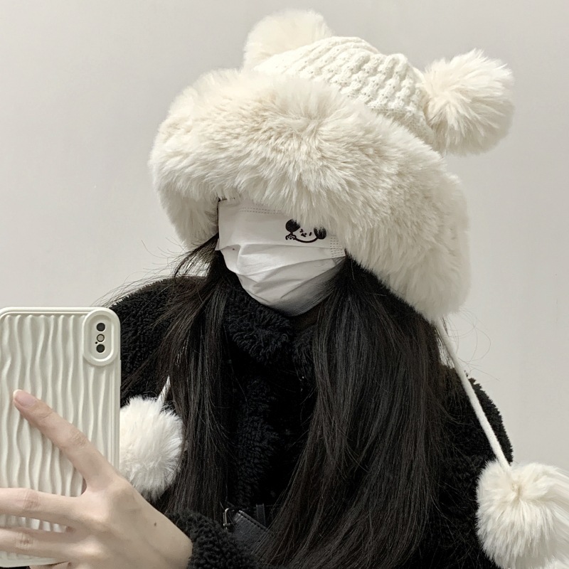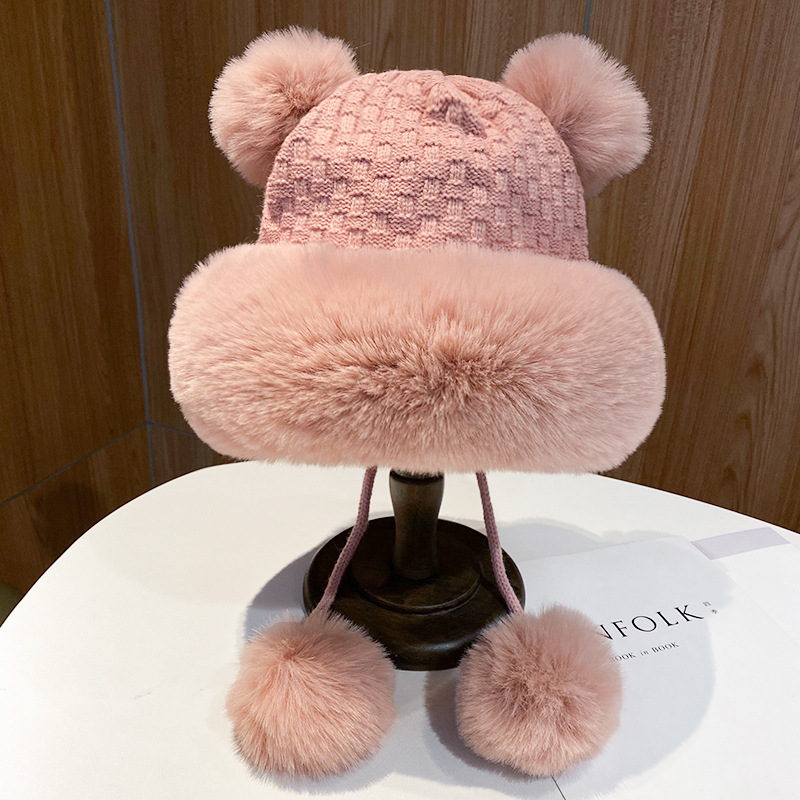 가을과 겨울 두꺼운 벨벳 니트 울 모자 여성의 겨울 따뜻한 풀오버 귀 보호 토끼 모피 공 귀여운 레이 펑 모자 여성