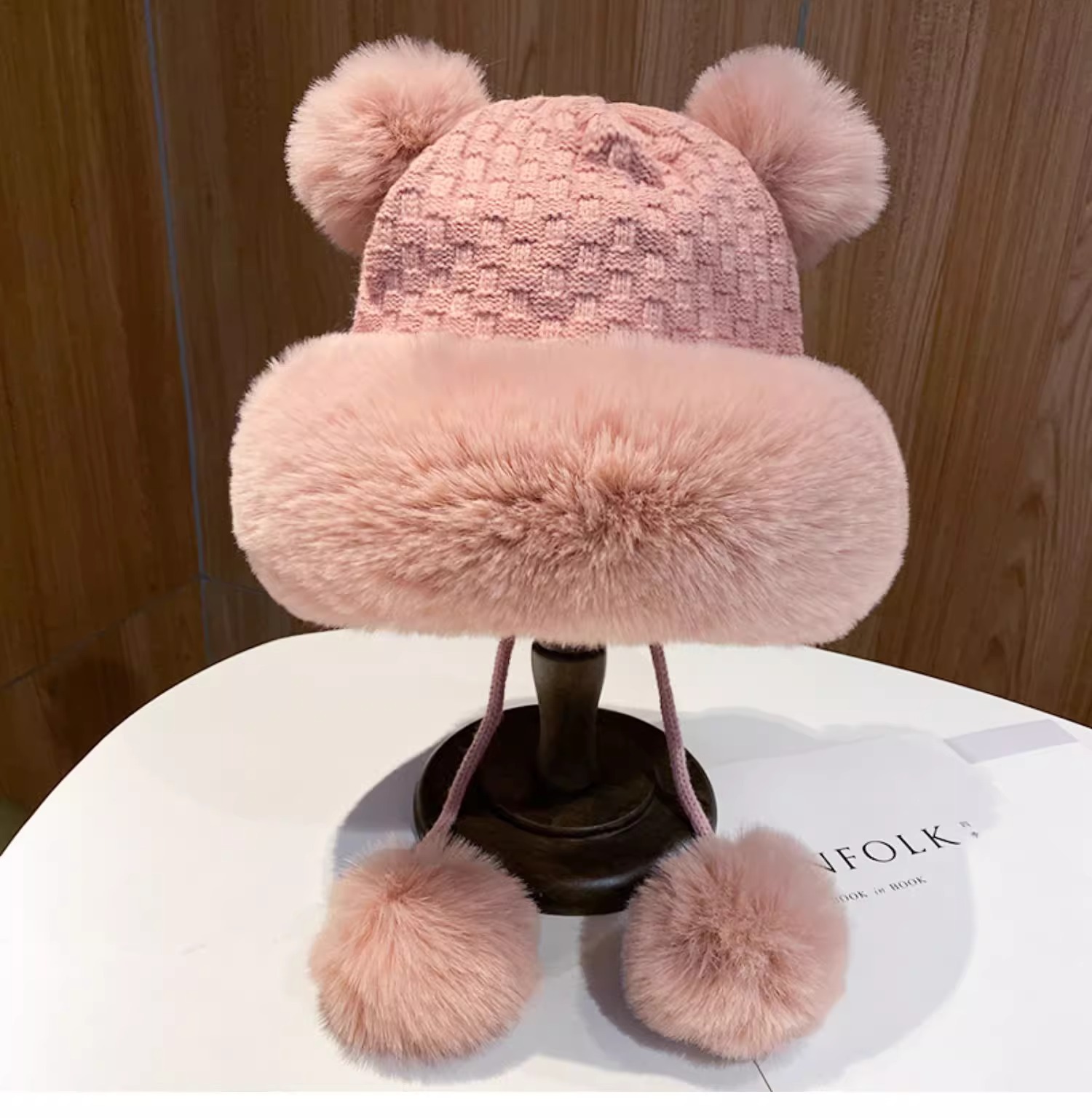 가을과 겨울 두꺼운 벨벳 니트 울 모자 여성의 겨울 따뜻한 풀오버 귀 보호 토끼 모피 공 귀여운 레이 펑 모자 여성스토어 가기