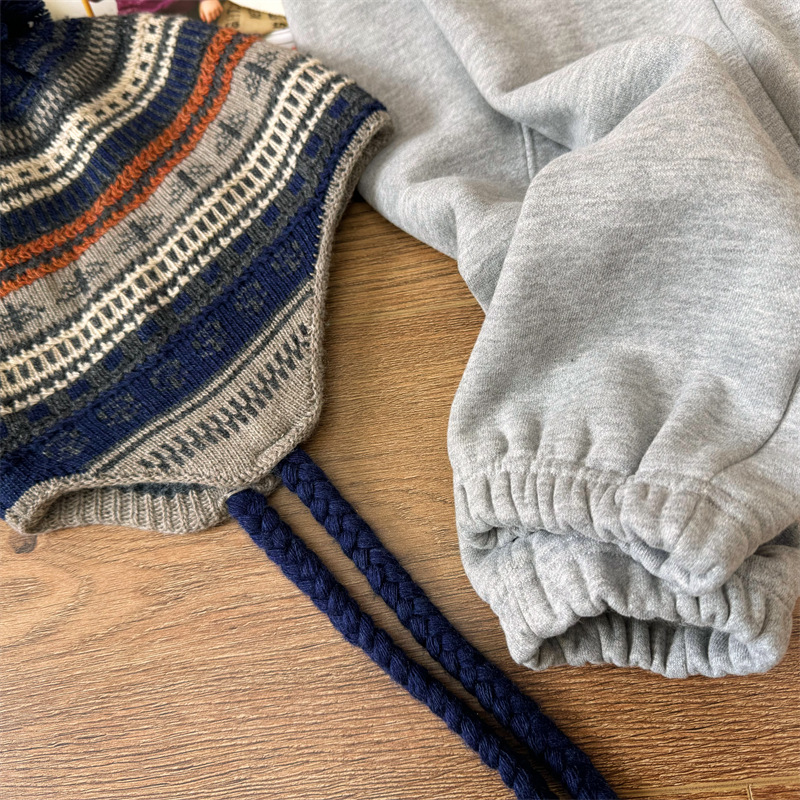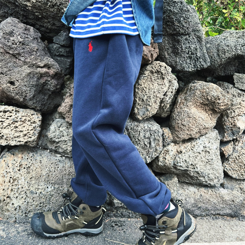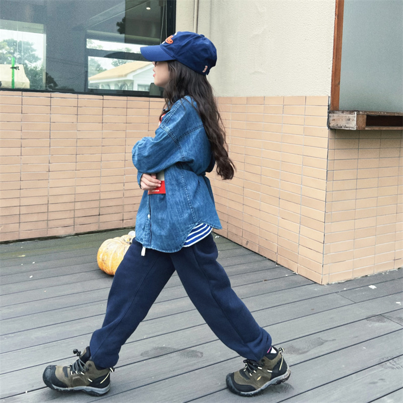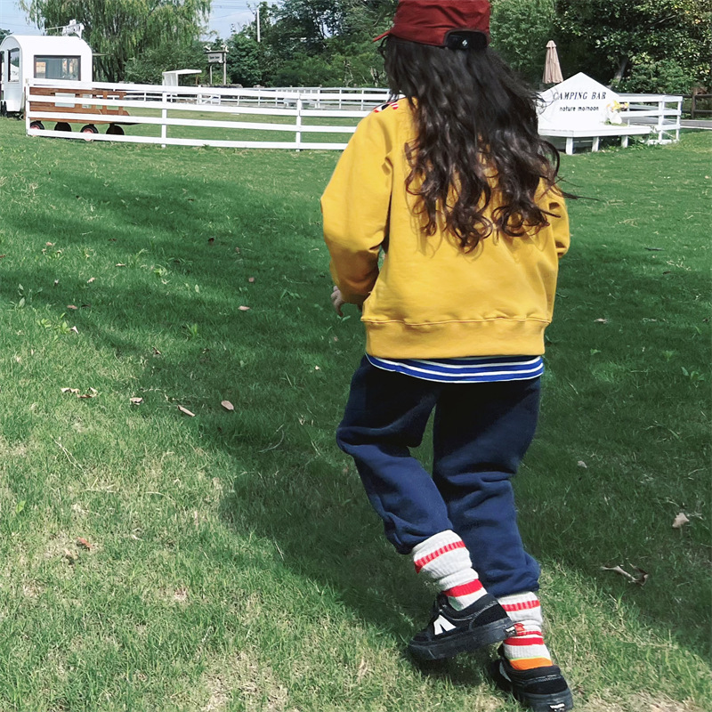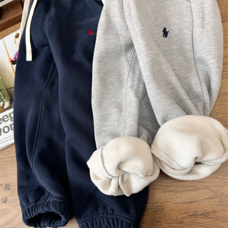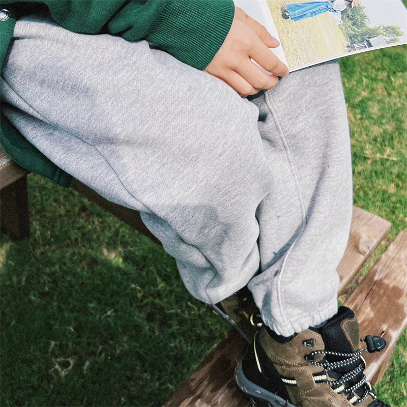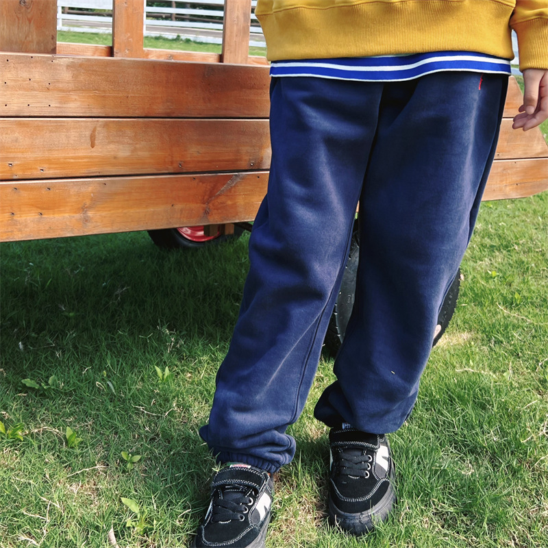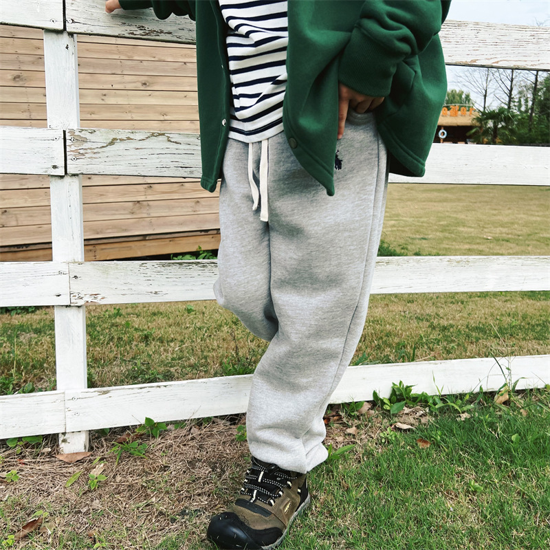 2024 새로운 가을, 겨울 어린이 탄성 허리 솔리드 컬러 다목적 소년과 소녀 자수 간단한 스포츠 양털 레깅스 바지스토어 가기