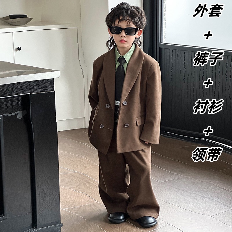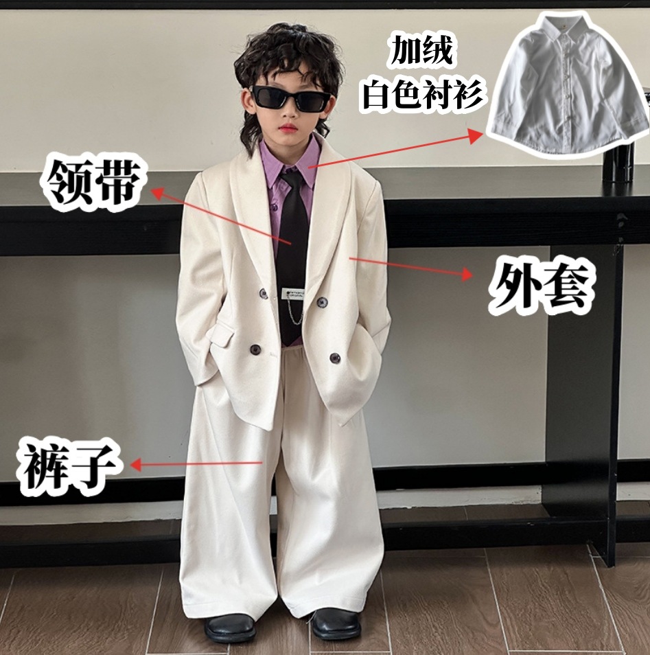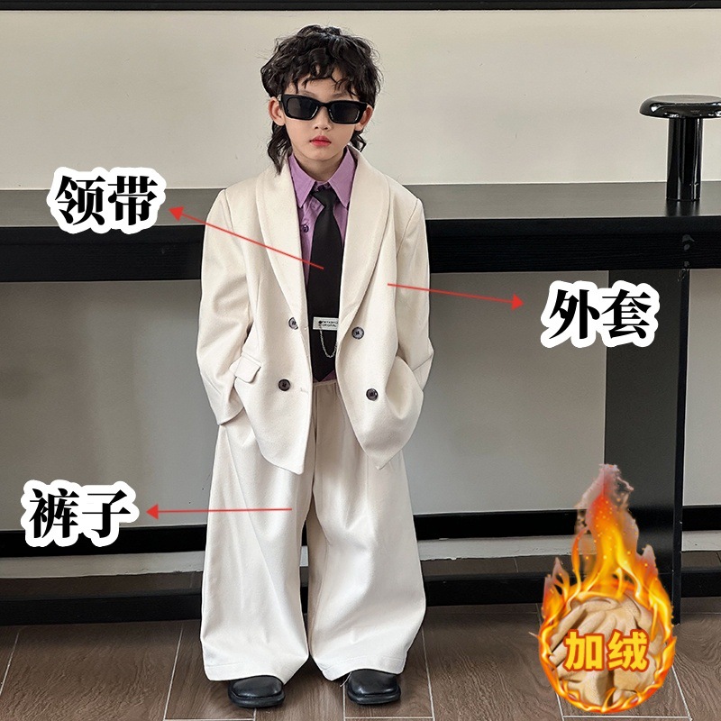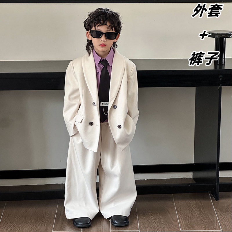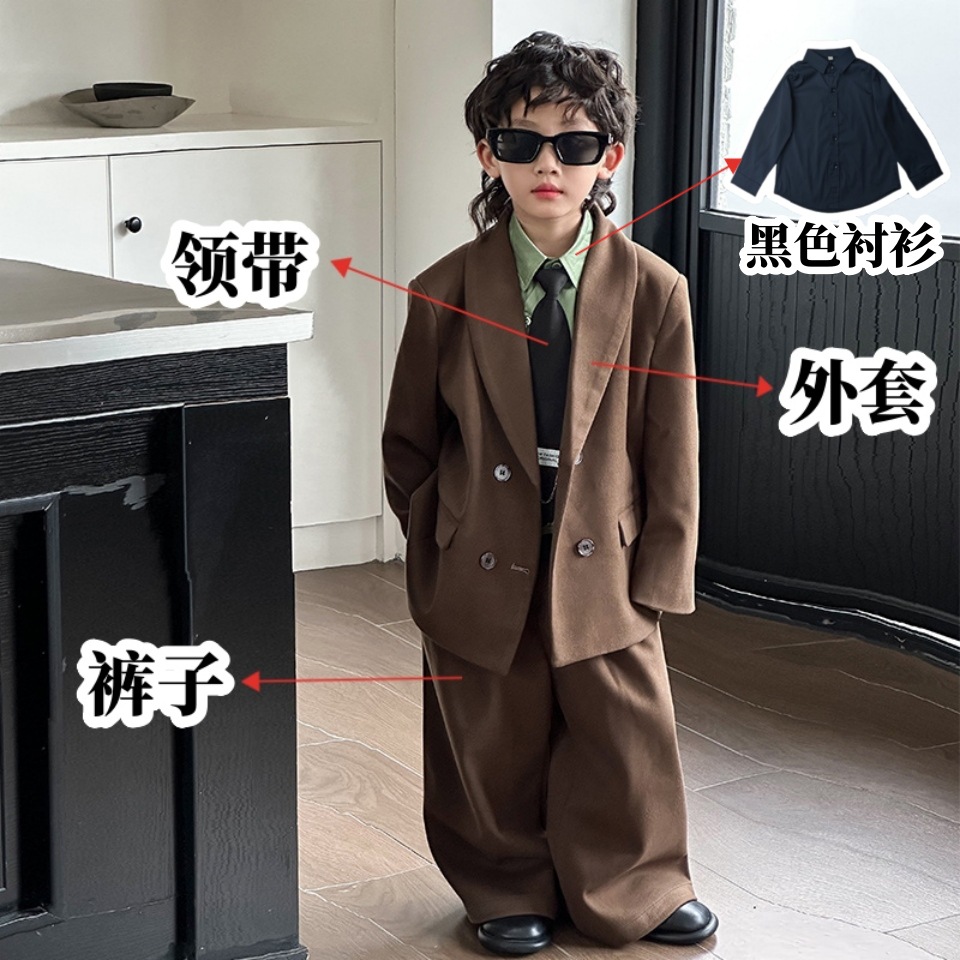 모직 남학생 세트 세트 러피 잘 생긴 모직 코트 어린이 세트 소년 캐주얼 플라워 소녀 호스트 의상스토어 가기