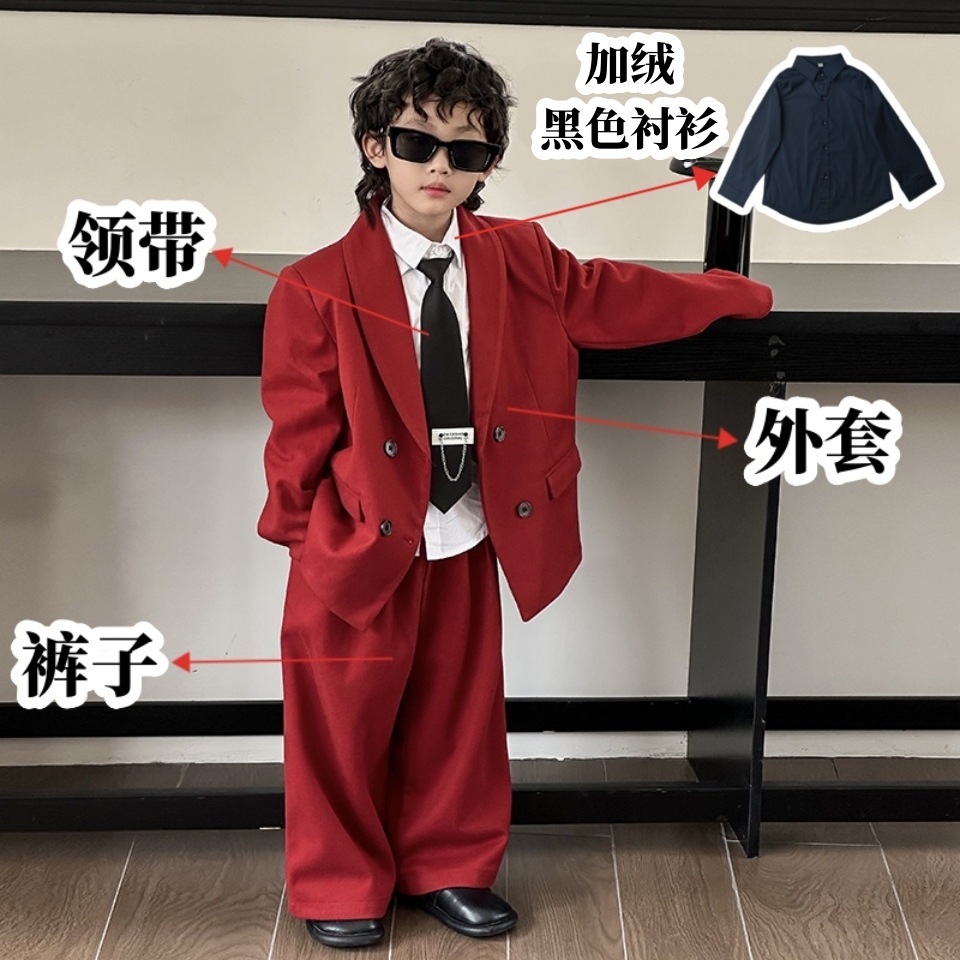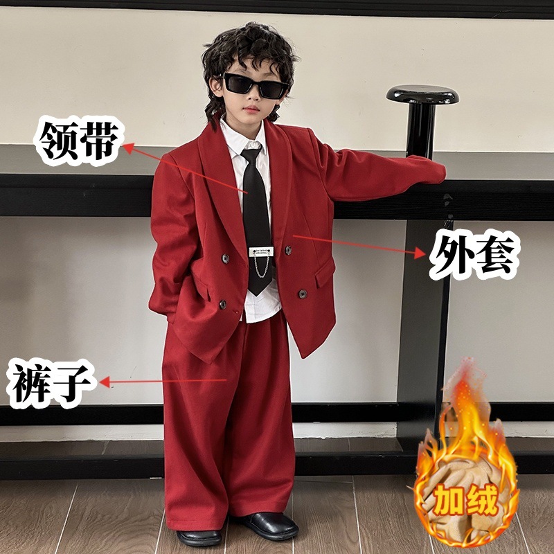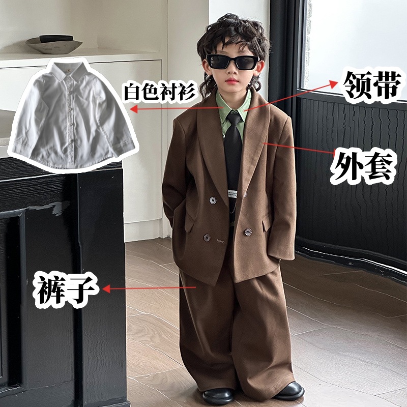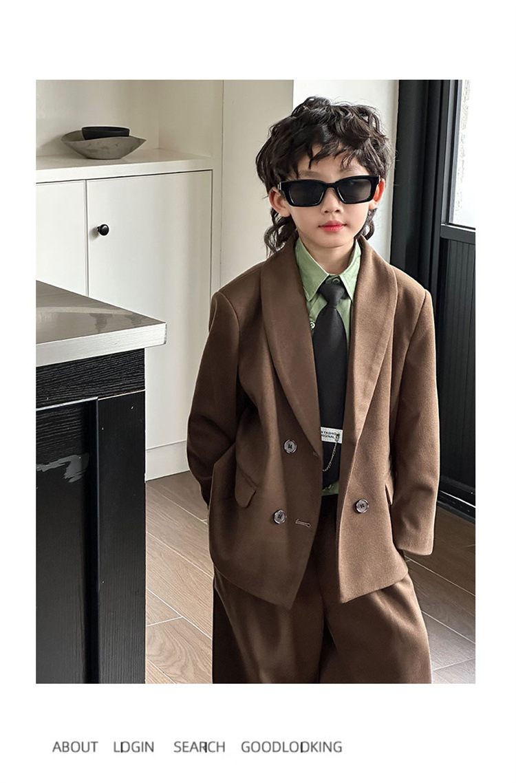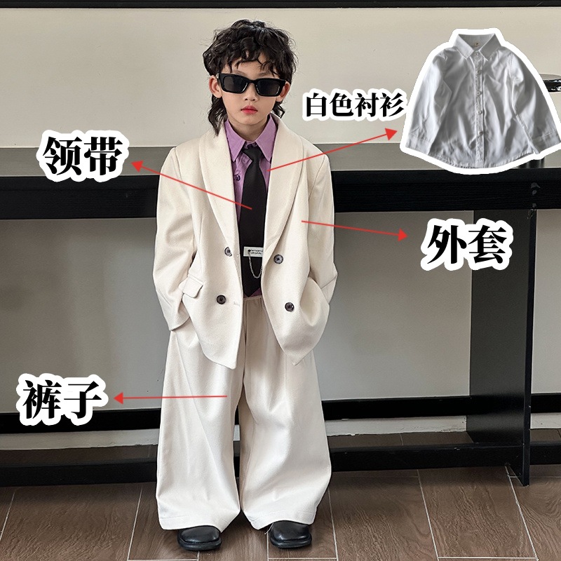 모직 남학생 세트 세트 러피 잘 생긴 모직 코트 어린이 세트 소년 캐주얼 플라워 소녀 호스트 의상스토어 가기