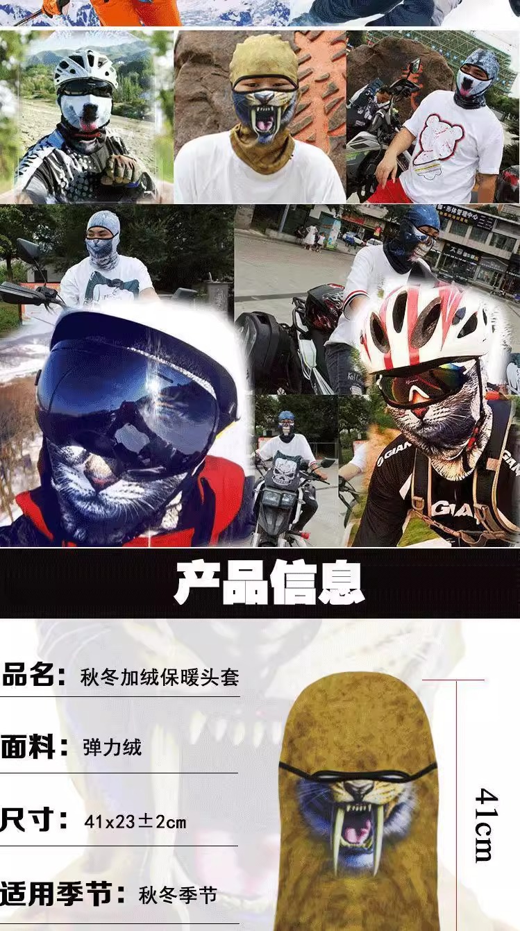 가을과 겨울 새로운 재미있는 동물 3D 풀오버 마스크 남성 틈새 패션 따뜻한 탄성 승마 마스크 여성스토어 가기